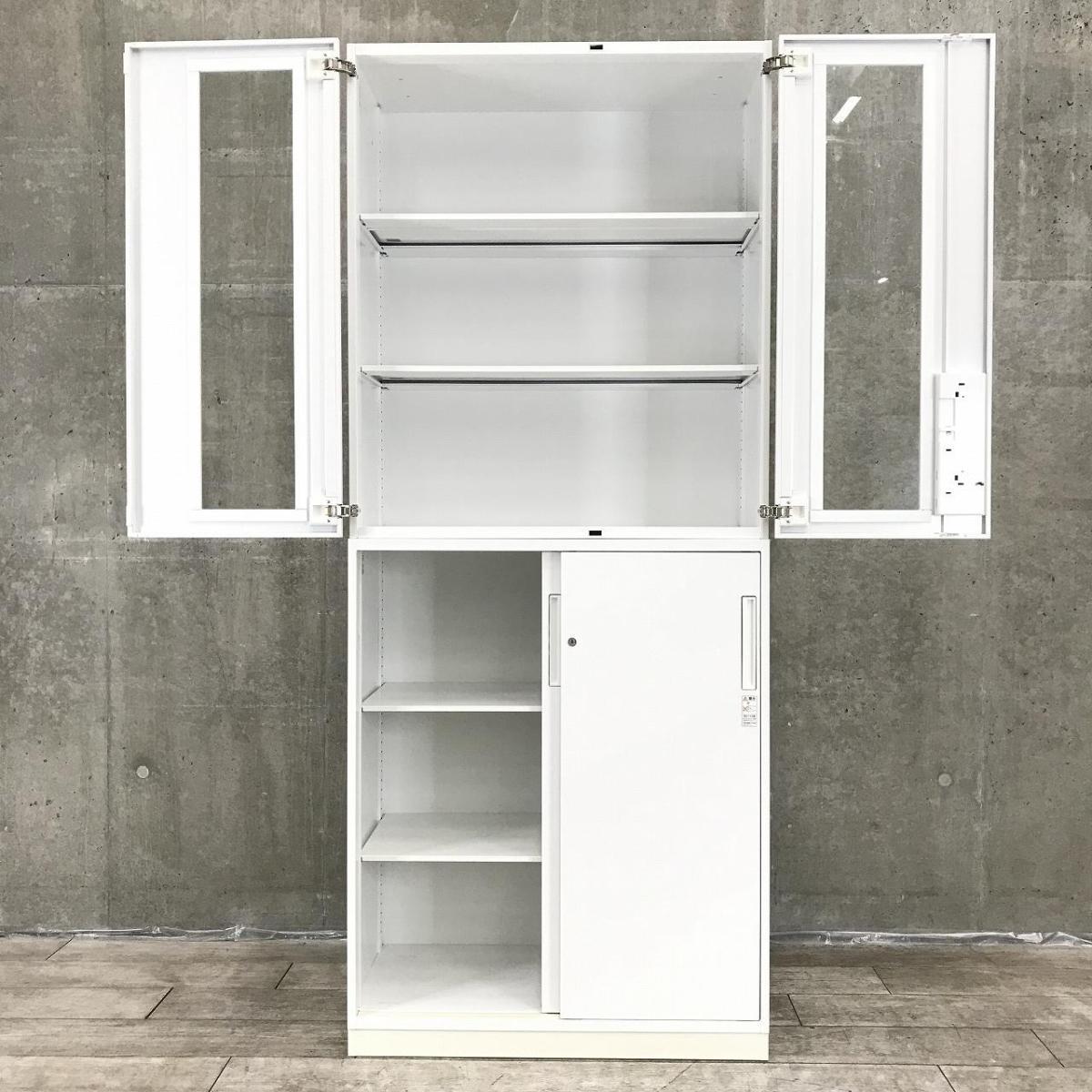 【書類の小分けに便利なクリスタルトレーと両開きタイプのコンビ!】■コクヨ製 エディア 上下書庫セット(上:両開き 下:クリスタルトレー)ホワイト 《オフィスバスターズ福岡博多店は、福岡を拠点として、日本全国へ中古オフィス用品・オフィス家具を提供しております》