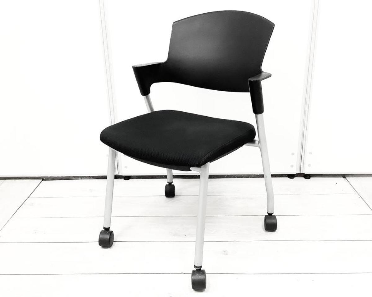 【シンプルスマートなスタッキングチェア!分厚いクッションで長時間でも快適な座り心地!】■スタッキングチェア 肘付ミーティングチェア ■固定肘 ■キャスター付 ■ブラック ■背面樹脂/コクヨ(KOKUYO/プロッティ