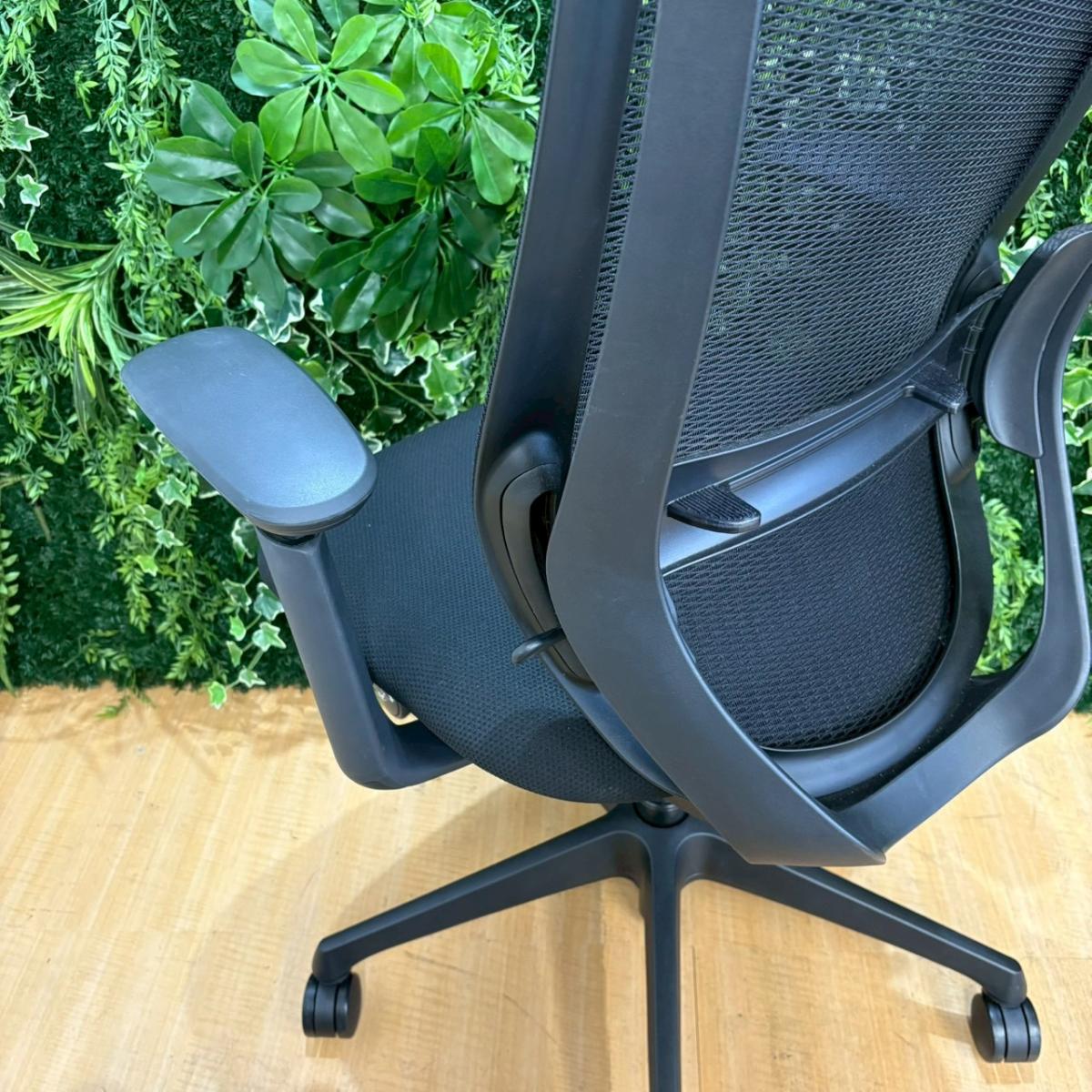 【限定1脚】【三次元曲面が身体にフィット!前傾チルト機能付き大人気メッシュチェア!】■オカムラ(okamura)製 シルフィーチェア(Sylphy) 肘付きハイバック ■背面メッシュ ■可動肘 ■ブラック×ブラックシェル ■ランバーサポート付き