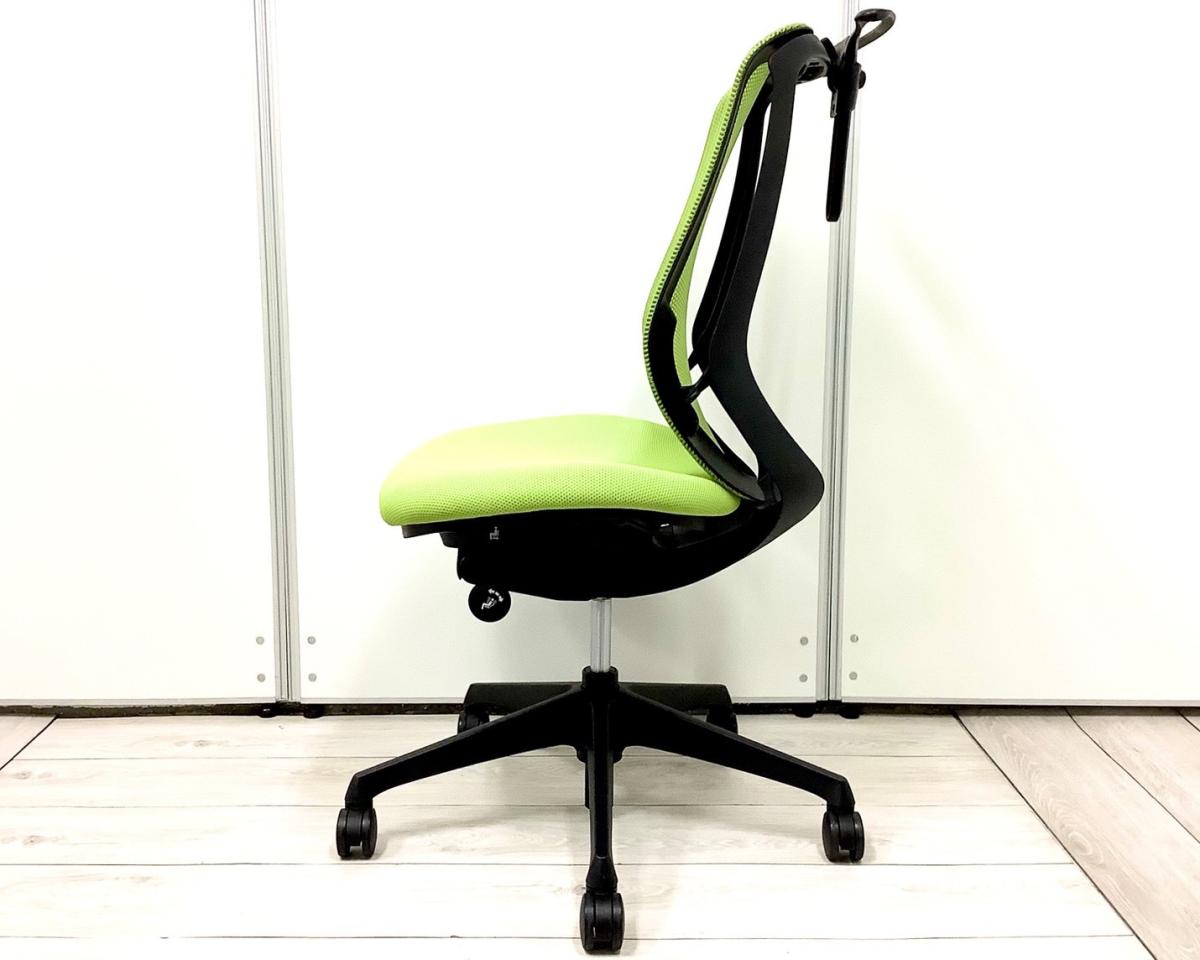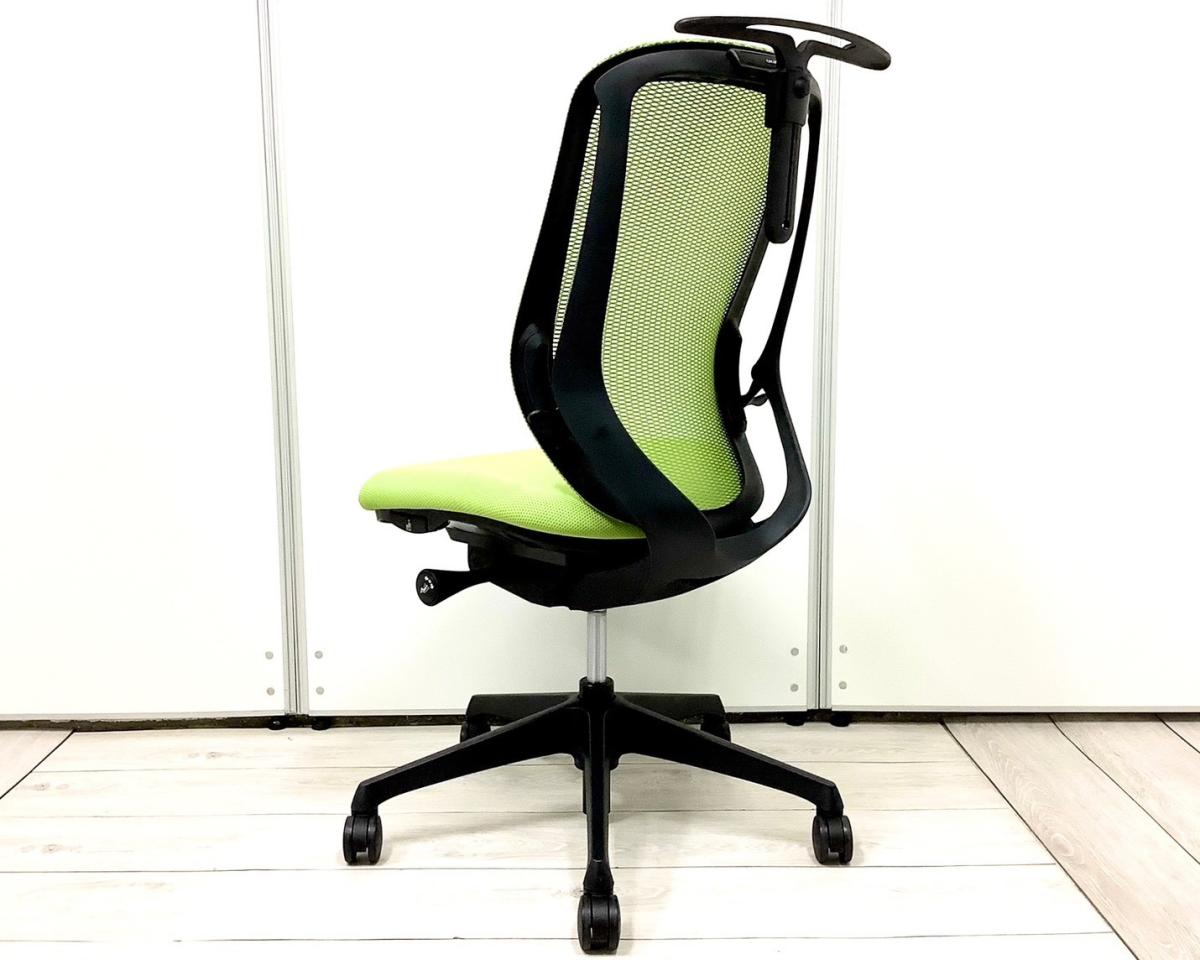 オカムラ製 シルフィ ライムグリーン ブラックフレーム 背面メッシュ ハイバック ハンガー付 樹脂脚 前傾チルト機能付き! オカムラ製品で最も人気を集める高機能メッシュチェア! 肘無しハイバックチェア!!