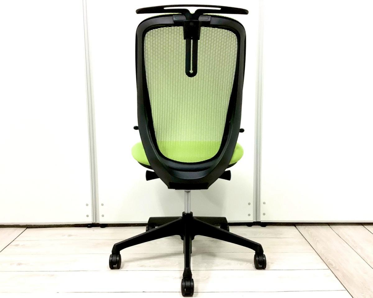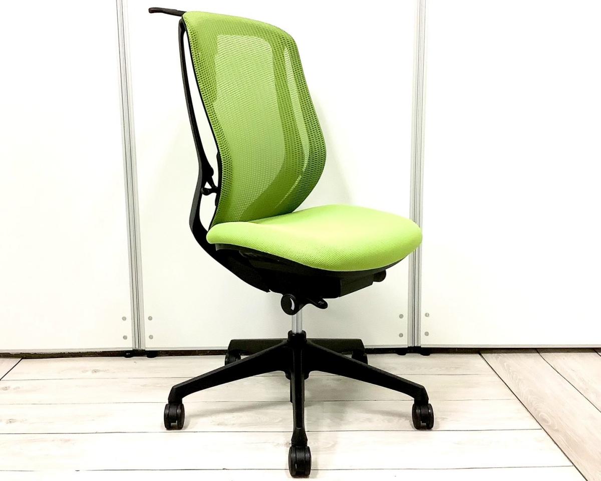 オカムラ製 シルフィ ライムグリーン ブラックフレーム 背面メッシュ ハイバック 樹脂脚 前傾チルト機能付き! オカムラ製品で最も人気を集める高機能メッシュチェア! 肘無しハイバックチェア!!