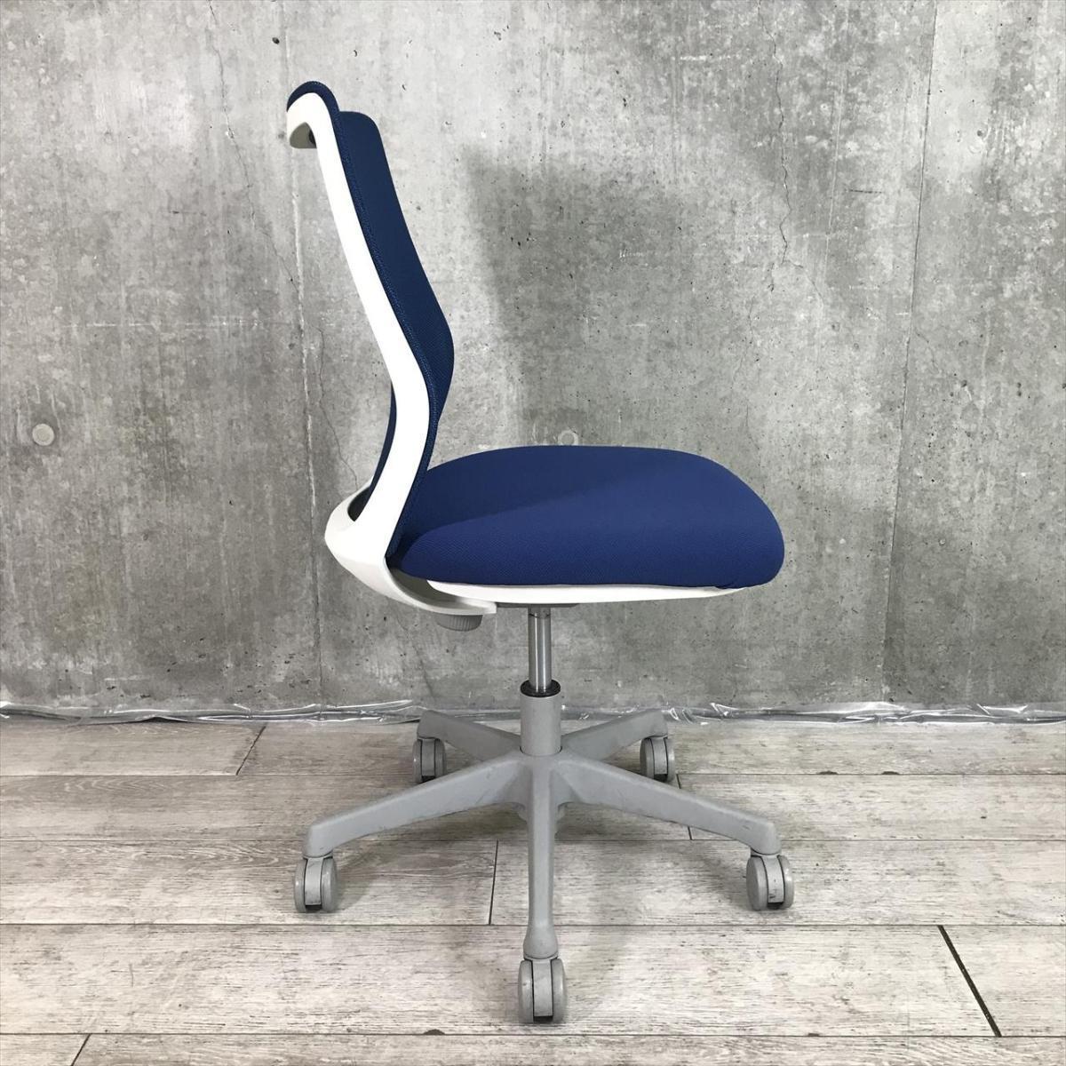 入替セール品につきお値下げ!【コンパクトなサイズ感!腰への負担を減らすS字形状!】■オカムラ(okamura)製 CG-Mチェア 肘無し ローバックチェア ■背面メッシュ ■ミディアムブルー