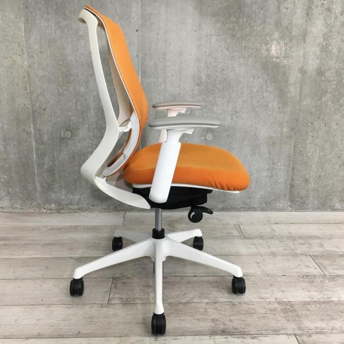【在庫入替セール品!】【背のカーブを変えられる新感覚のオフィスシーティング!】■オカムラ シルフィーチェア 可動肘付 オレンジ ハンガー付 ホワイトフレーム ■新感覚のオフィスシーティング!【Okamrua Sylphy】