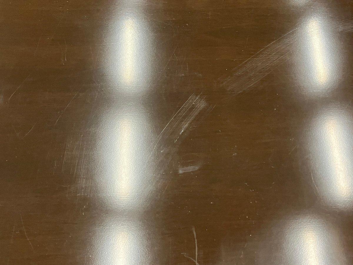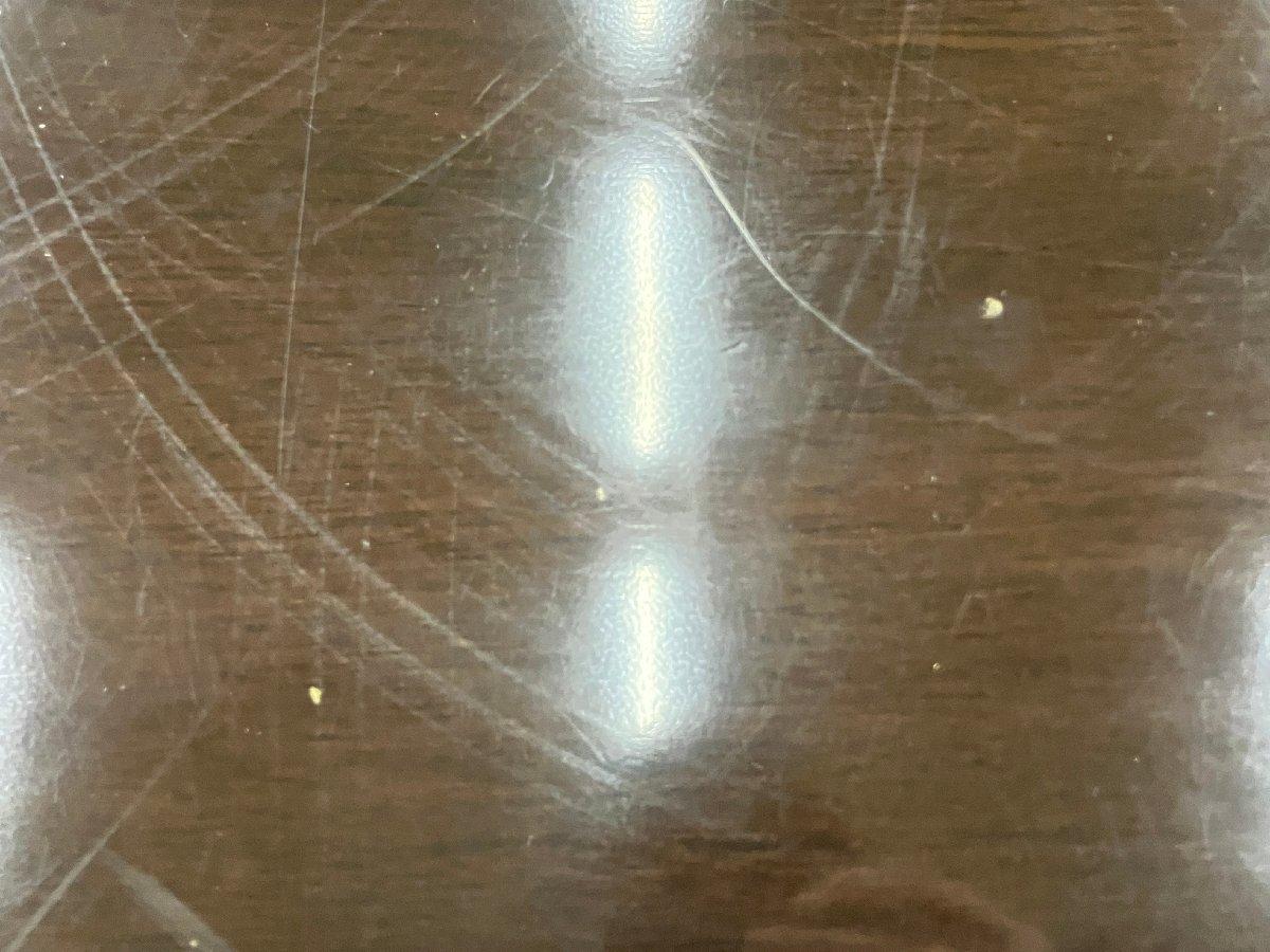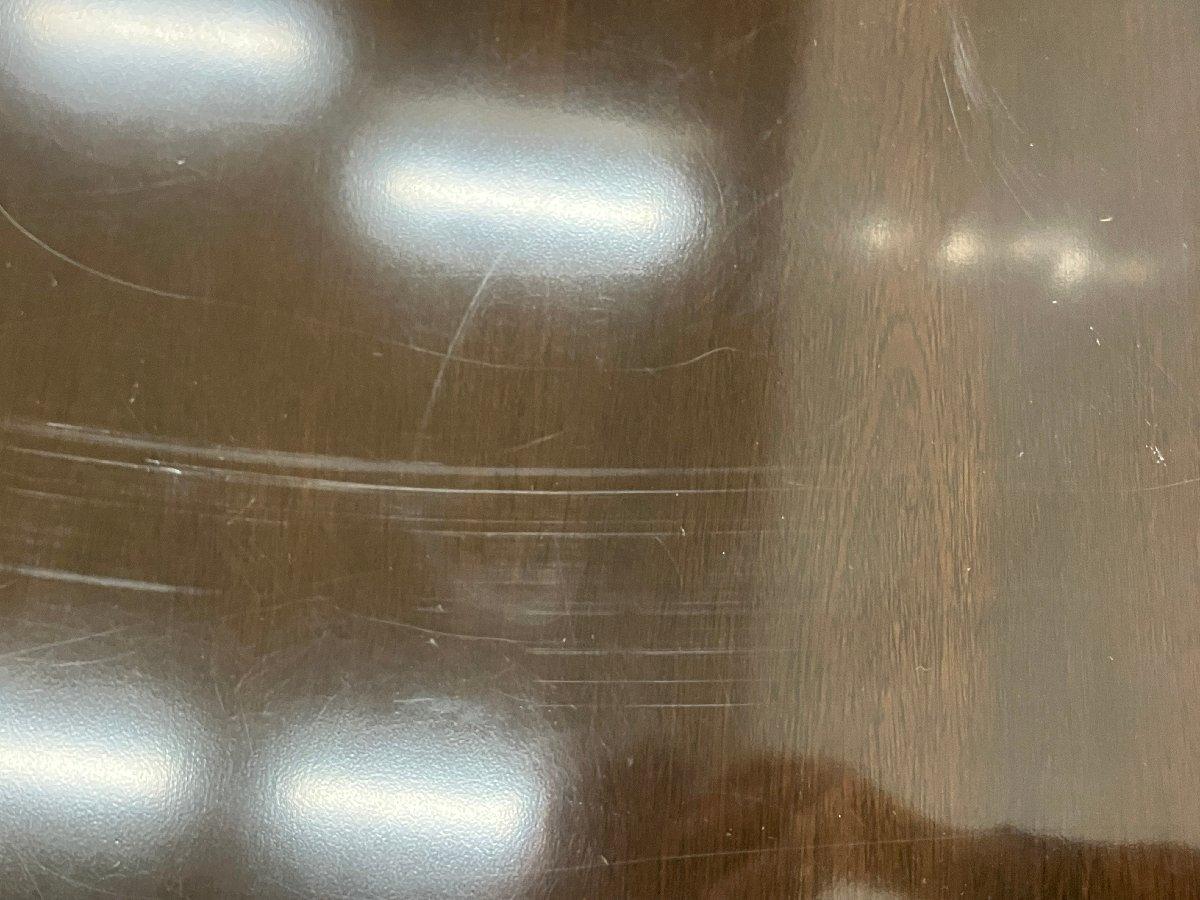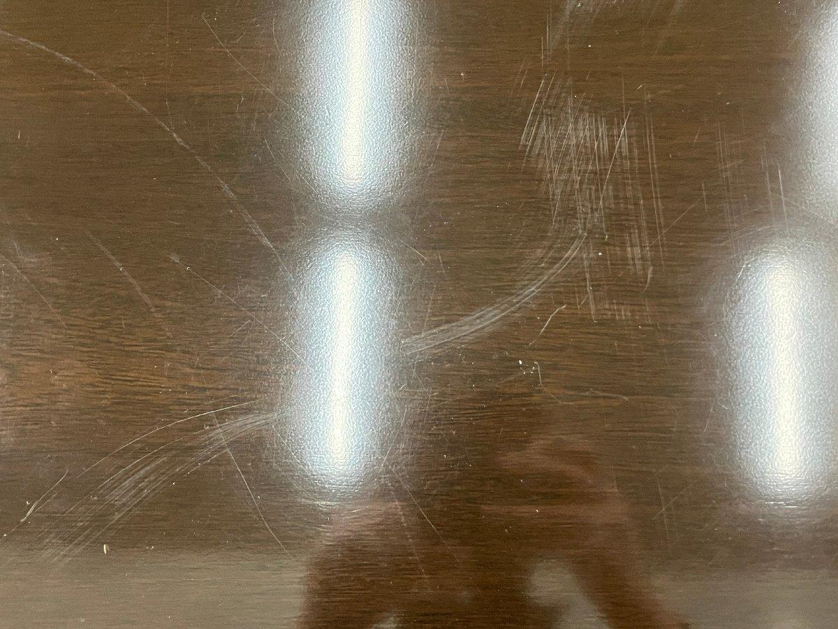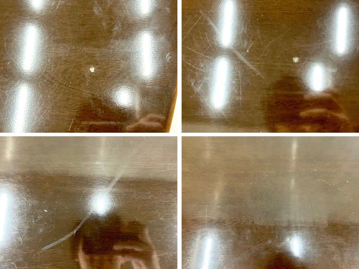 - 目立つ箇所あり傷・凹みが多数、深い傷・凹みが一部ある。(例、天板、幕板、棚板、サイド部分、脚部等にある。)