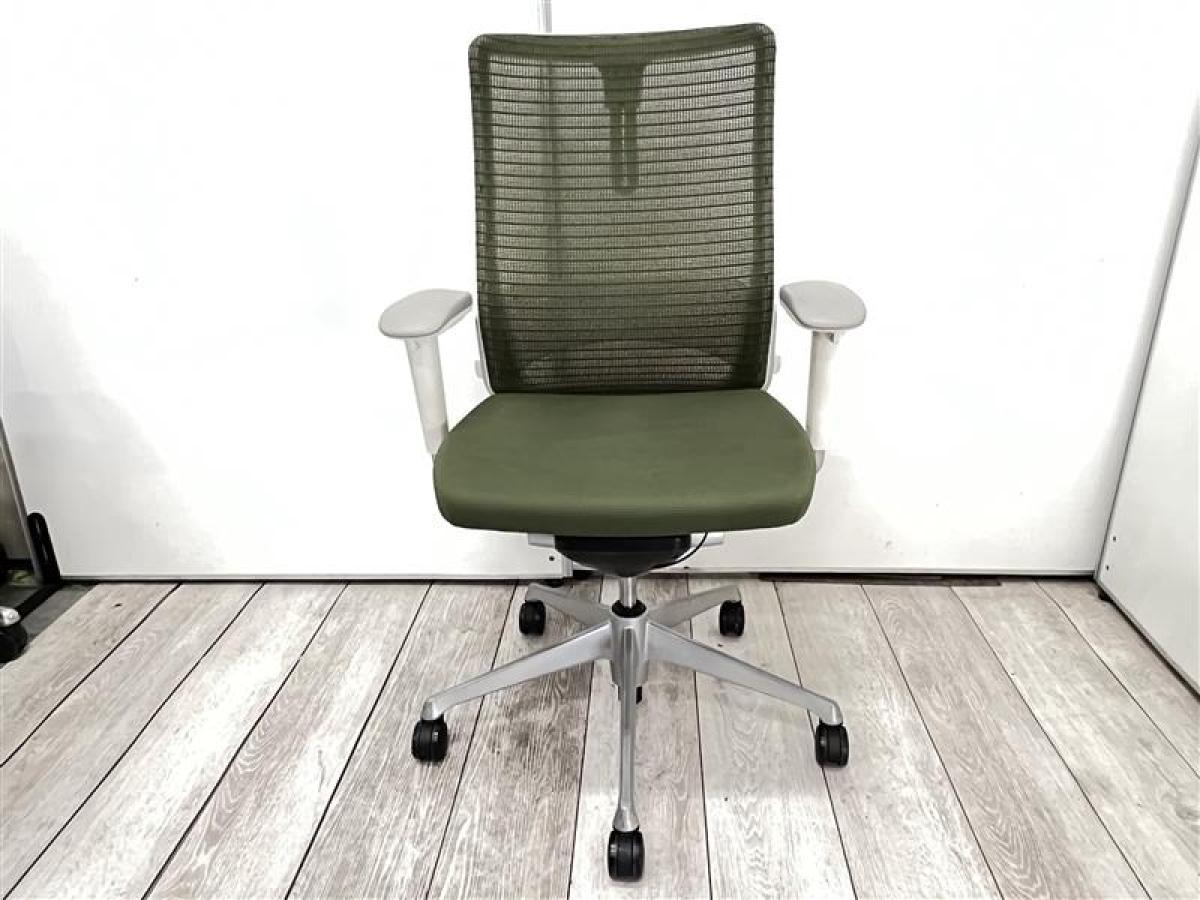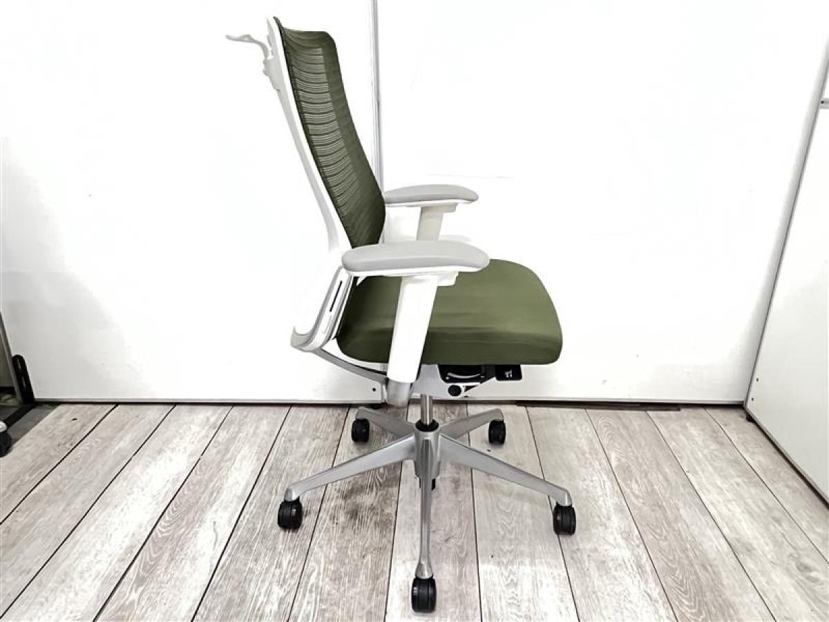 ■Okamura/オカムラ ■コーラルチェア(Choral) ■ダークグリーン×ホワイトシェル ■肘付き/可動肘 ■ハイバック ■背面/メッシュ ■ランバーサポート付 【弊社使用欄:A01043897】