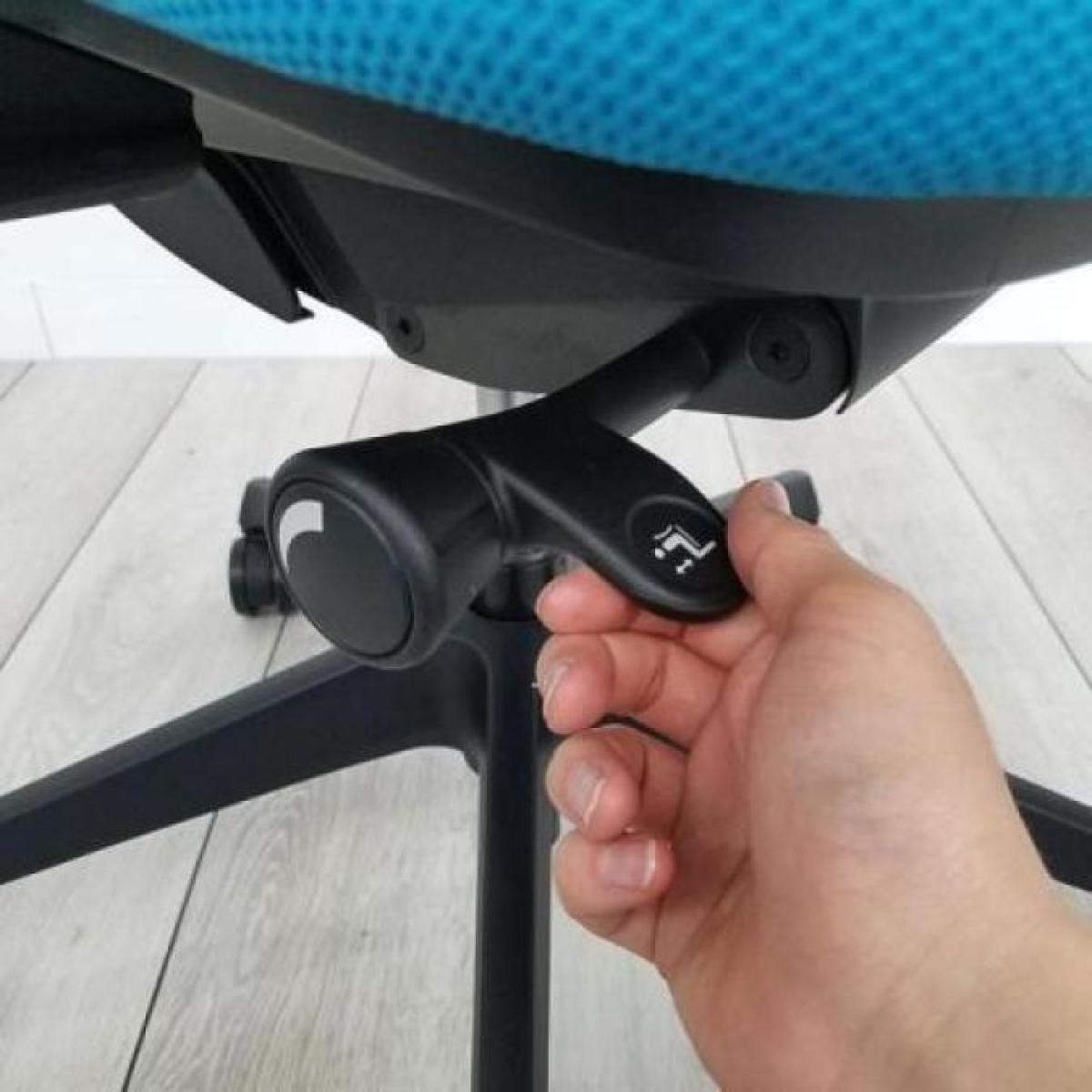 - 座面右下のダイヤル操作で、リクライニングの強弱調整が行えます。これまでのダイヤル式よりも、少ない回転数で、最弱?最強の調整が可能です。