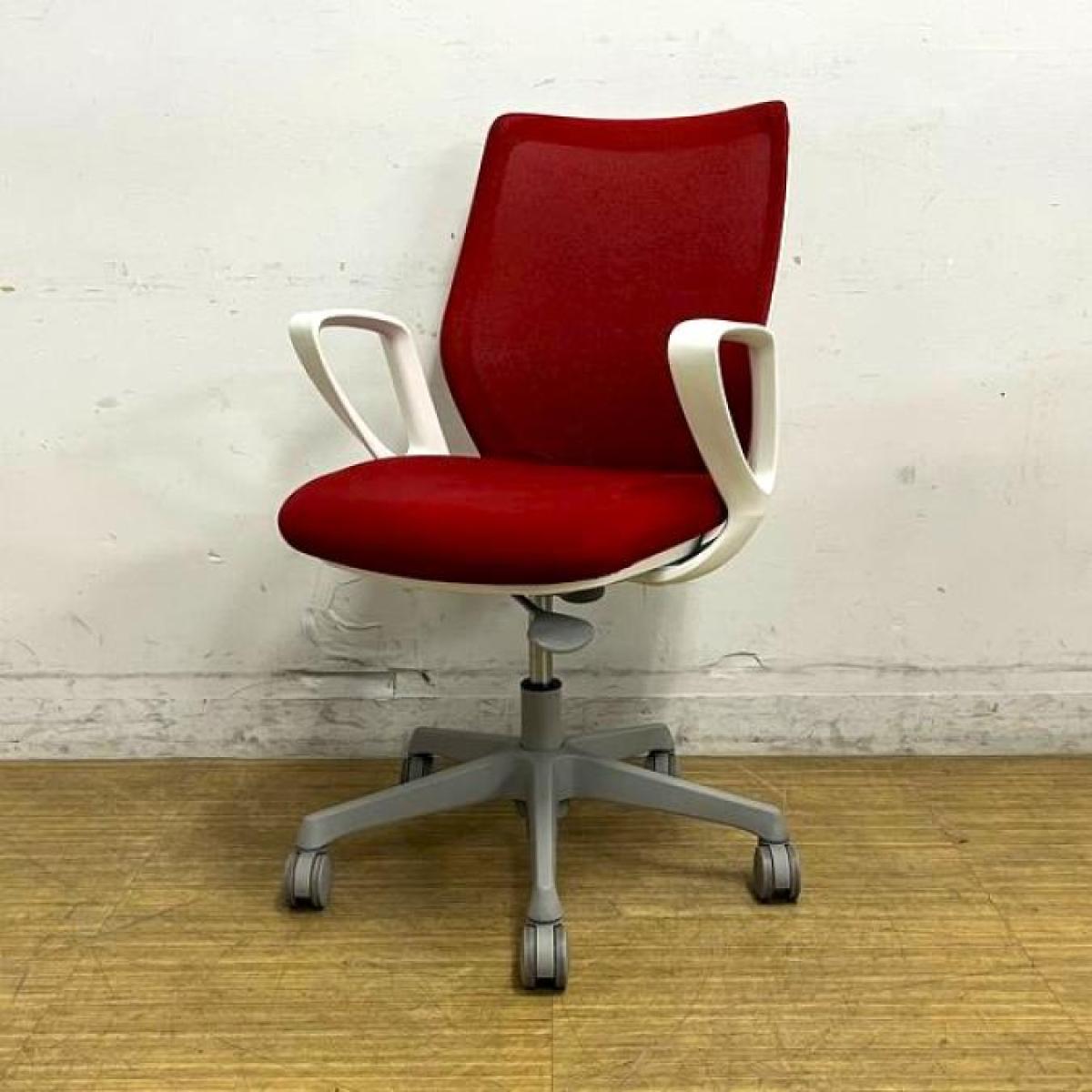 【在庫入替セール】オカムラ CG-Mチェア 背メッシュ デザインアーム付き ビンテージレッド×ホワイトフレーム コンパクトなサイズ感で小柄な方にもオススメ