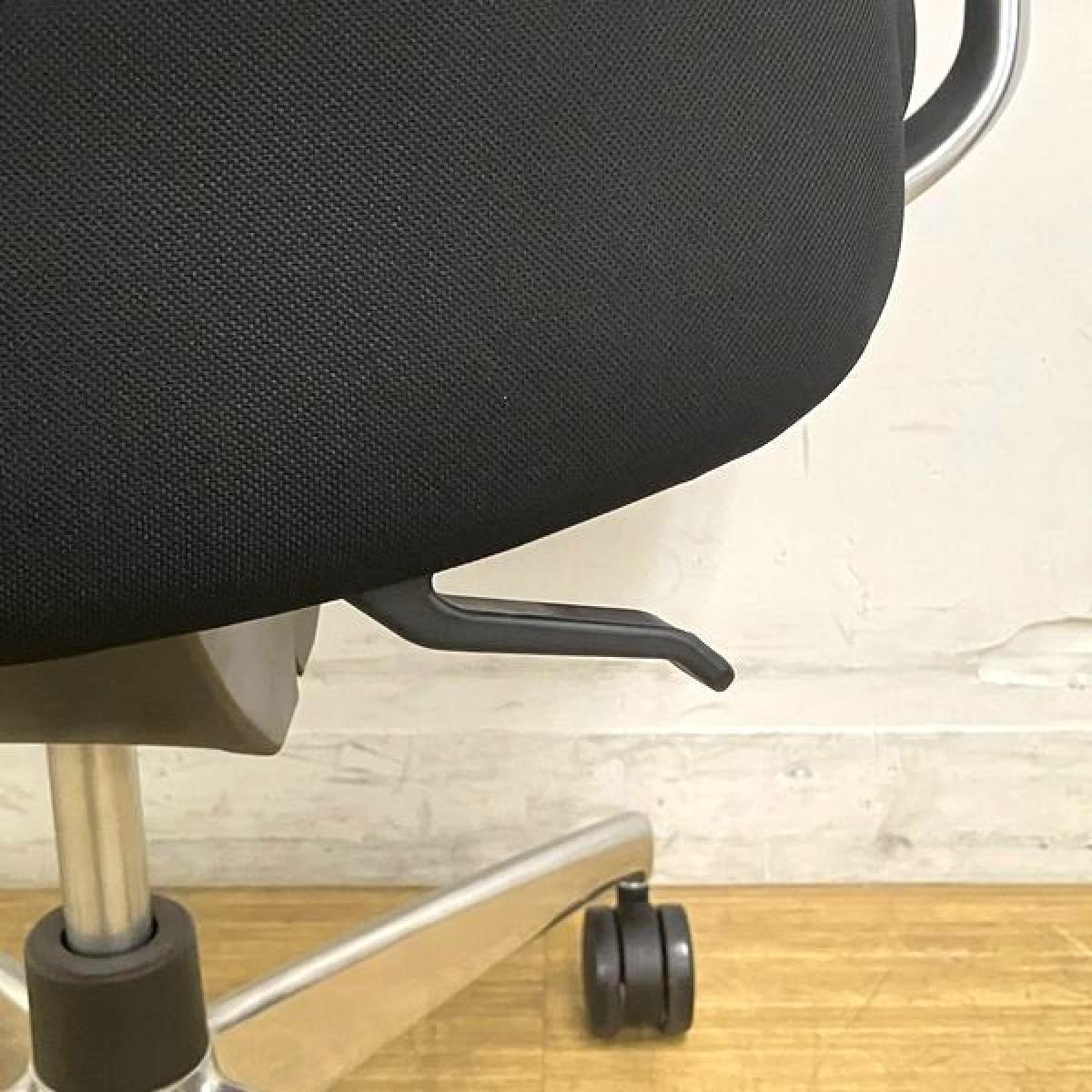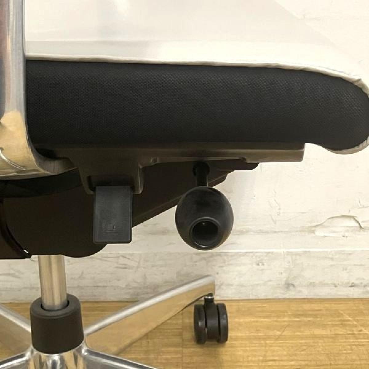 ロッキングは、任意の位置でロックすることが可能で、強さの調節は座面右下のグリップで座った状態で行えます。