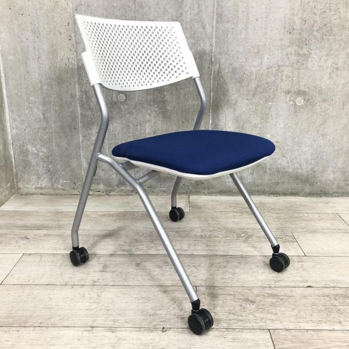 【6脚限定】【在庫入替品】【スタイリッシュなネスティングチェア!シンプルデザインで様々なミーティングシーンにぴったりフィット!】■ウチダ(UCHIDA)製 FM265 ネスティングチェア ■座面ブルー×ホワイト背面 ■キャスター付 ■背面樹脂メッシュ オフィスバスターズ 梅田本店【T9】