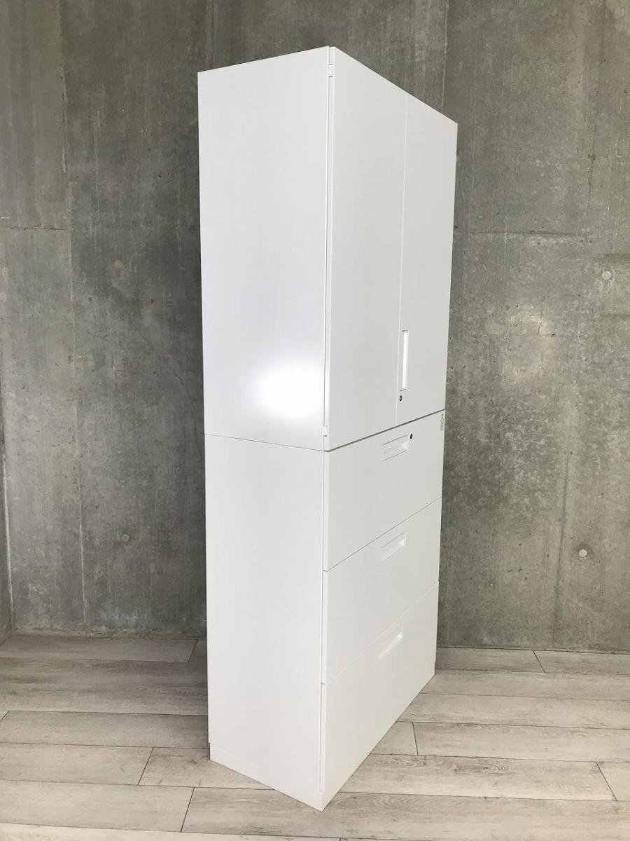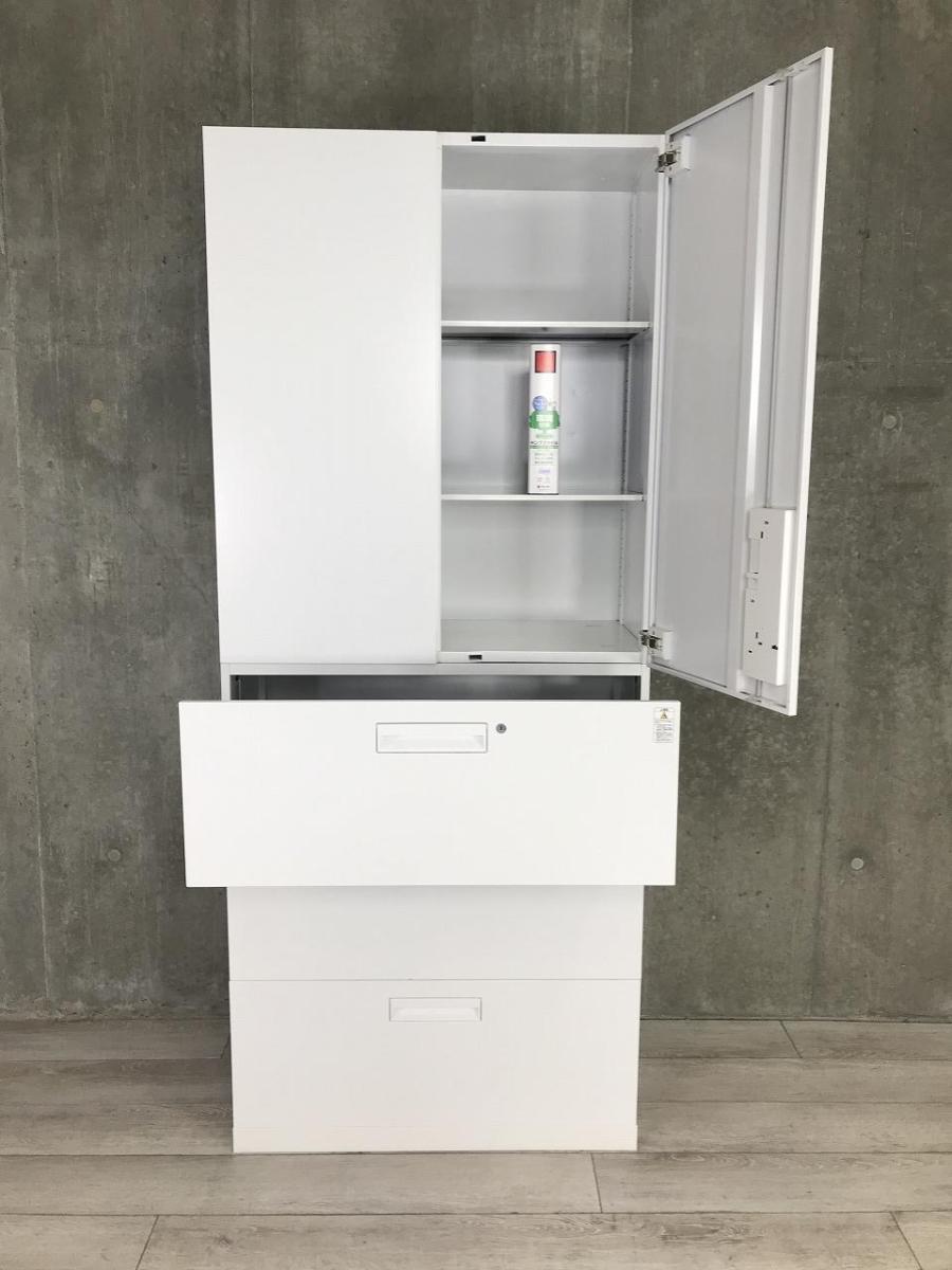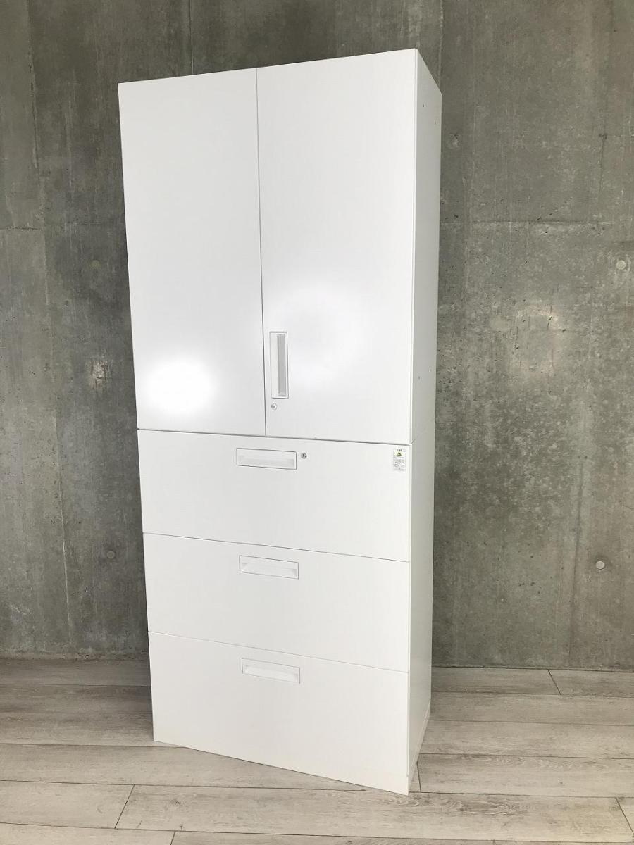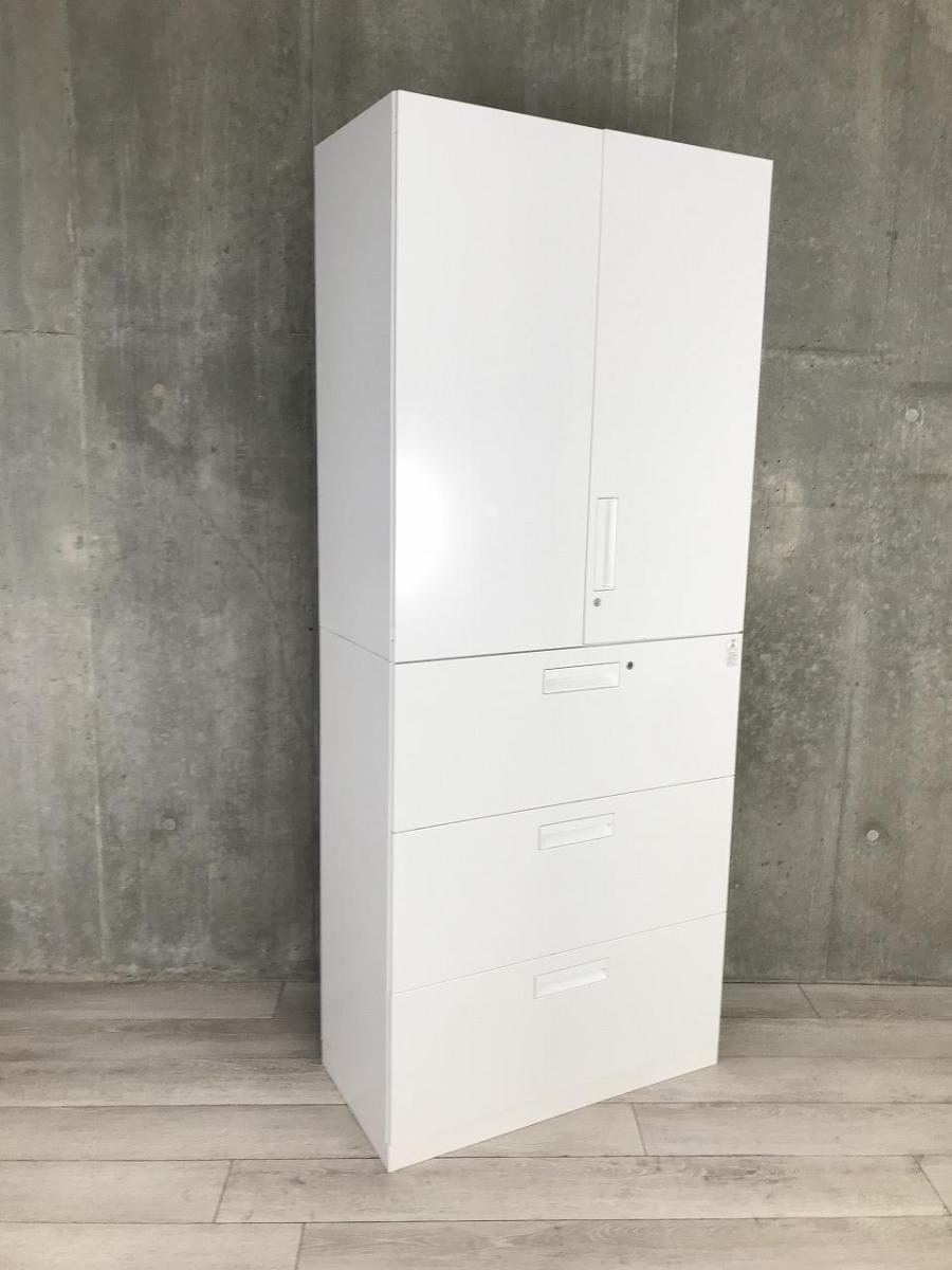 【収納量抜群の書庫セット!観音開き+引き出しタイプの人気の組み合わせ!】■コクヨ(KOKUYO)製 エディアシリーズ(EDIA) 両開き+3段ラテラル 書庫セット ハイキャビネット ■ホワイト ■シリンダー錠