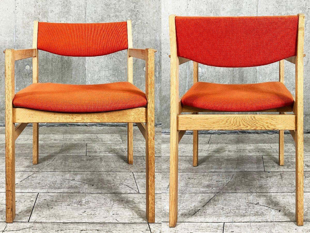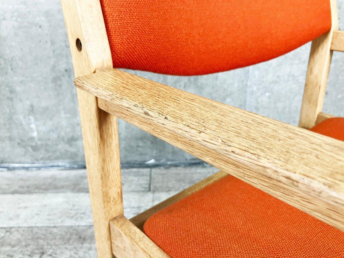 北欧ヴィンテージ アームチェア オーク材 × オレンジファブリック TALO取扱- デザイナーズ家具センター
