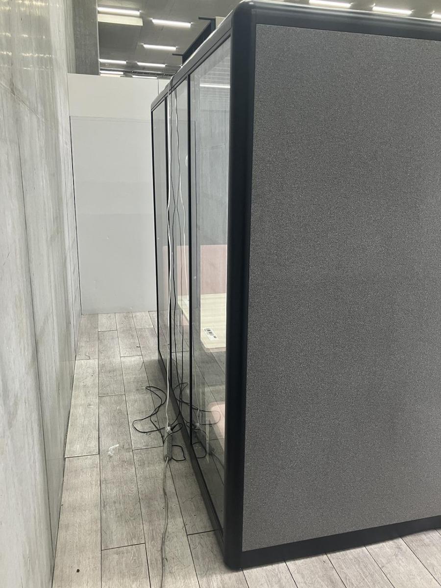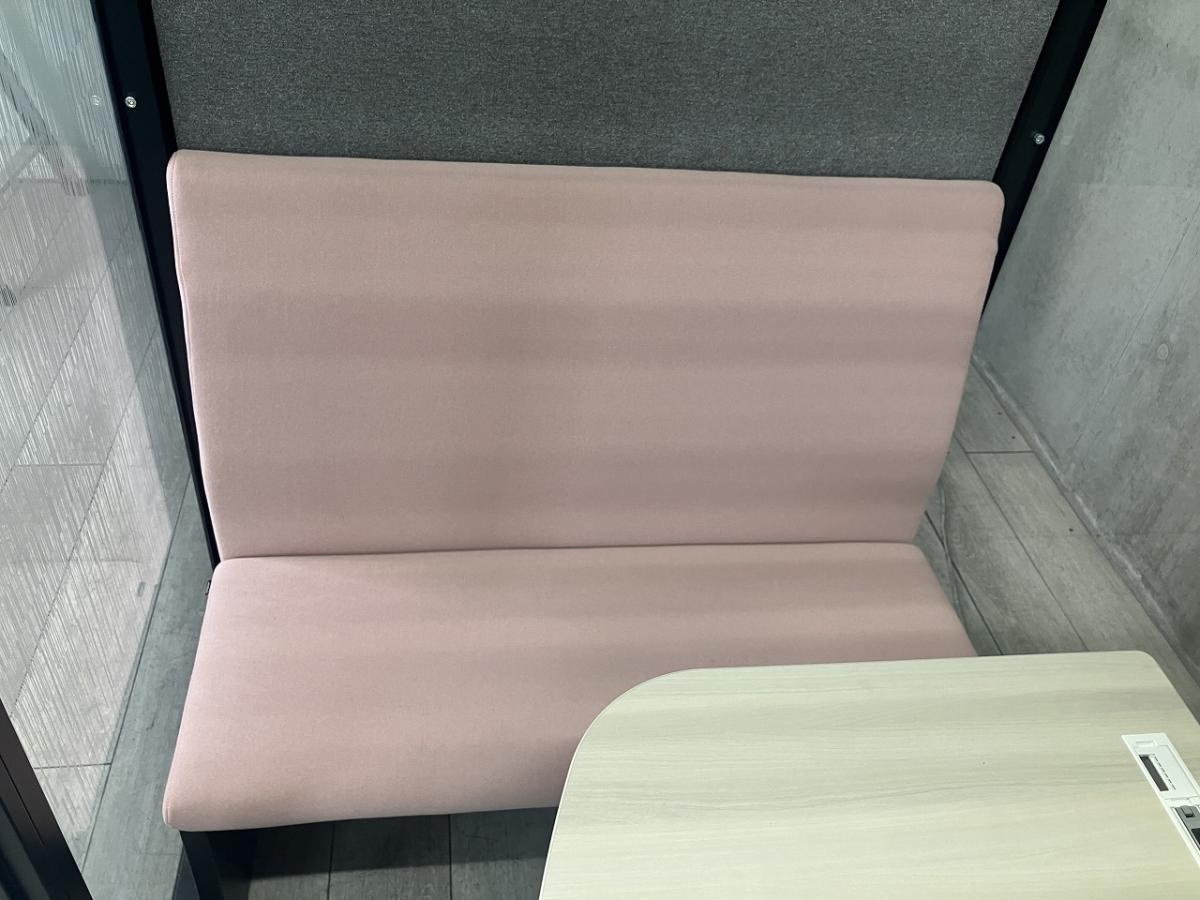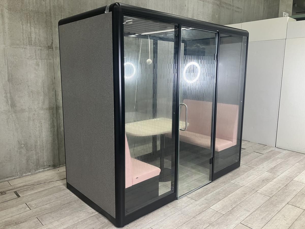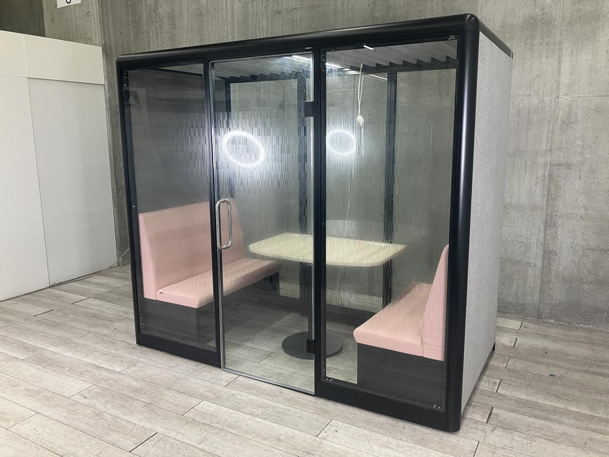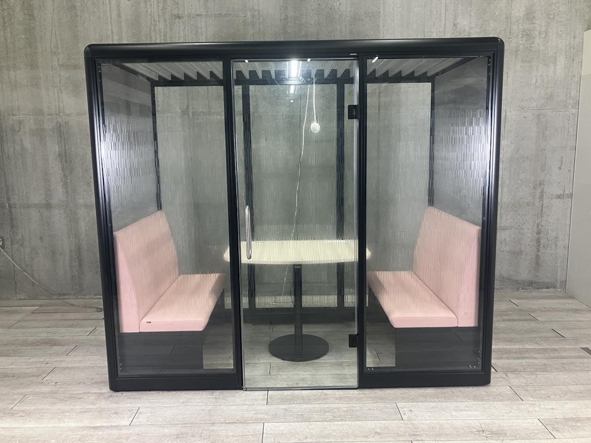 【ガラス張りでスタイリッシュな空間を演出!2人用ワークブース!】■オカムラ(okamura) スノーハット (Snow Hut) ペアワーク (Pair Work)タイプ 2人用ブース Cタイプ ■ソファ・テーブル・ライト付き ■フレーム:ブラック 側面:グレー ソファ:ピンク【ABW商材】【関東倉庫在庫品】【弊社使用欄:A01042137】- 全店共通商品