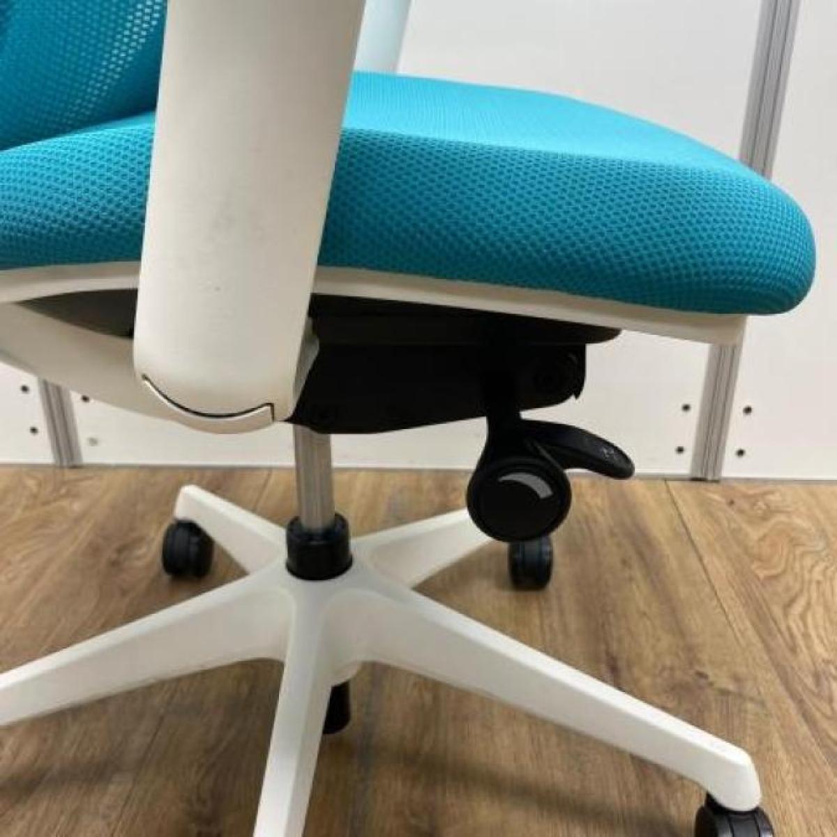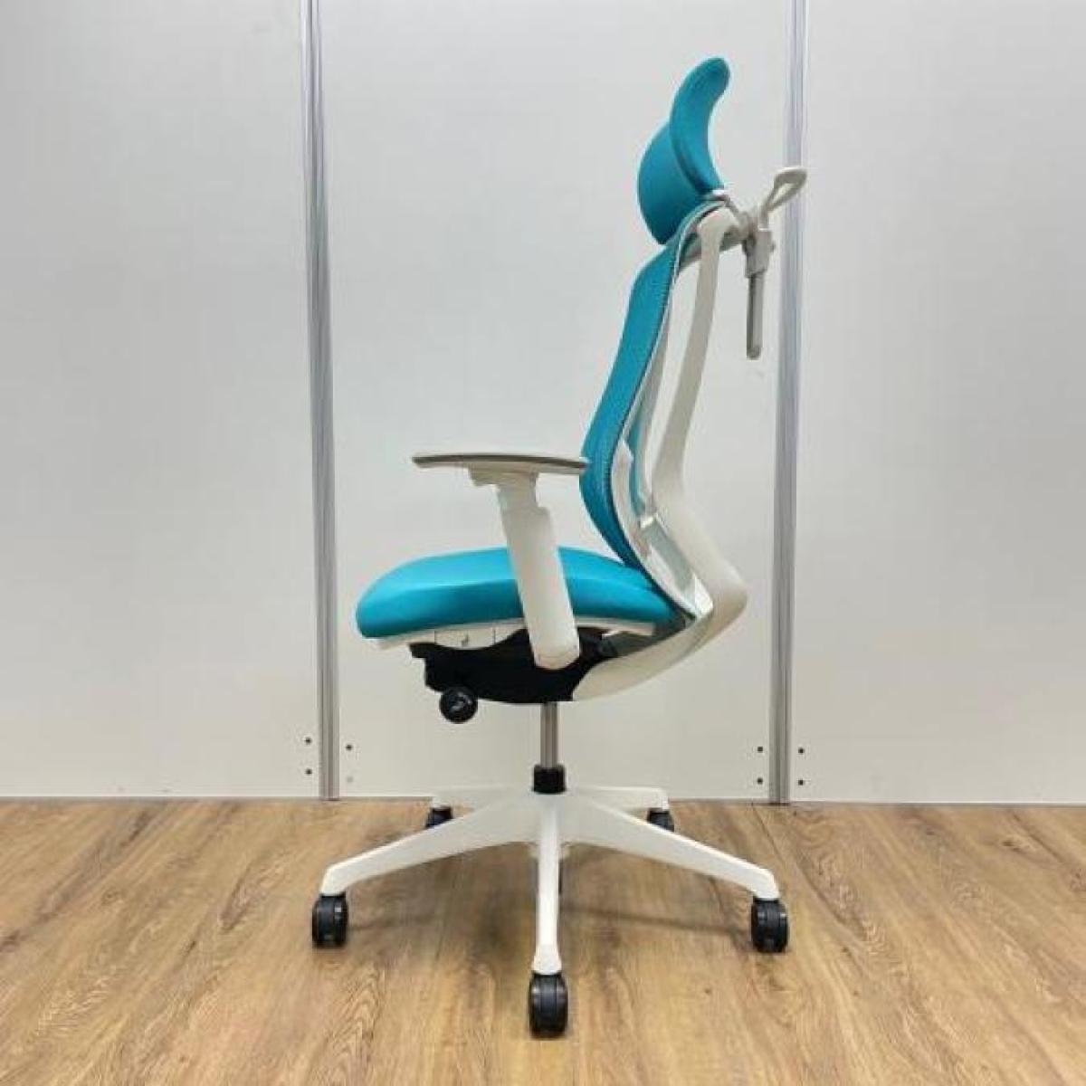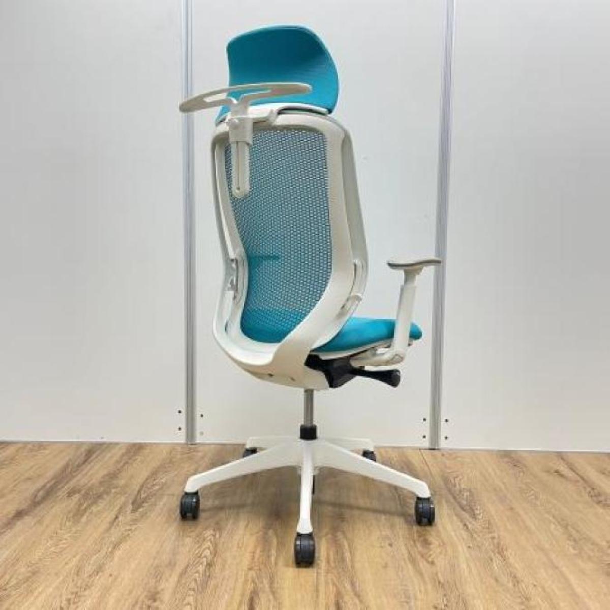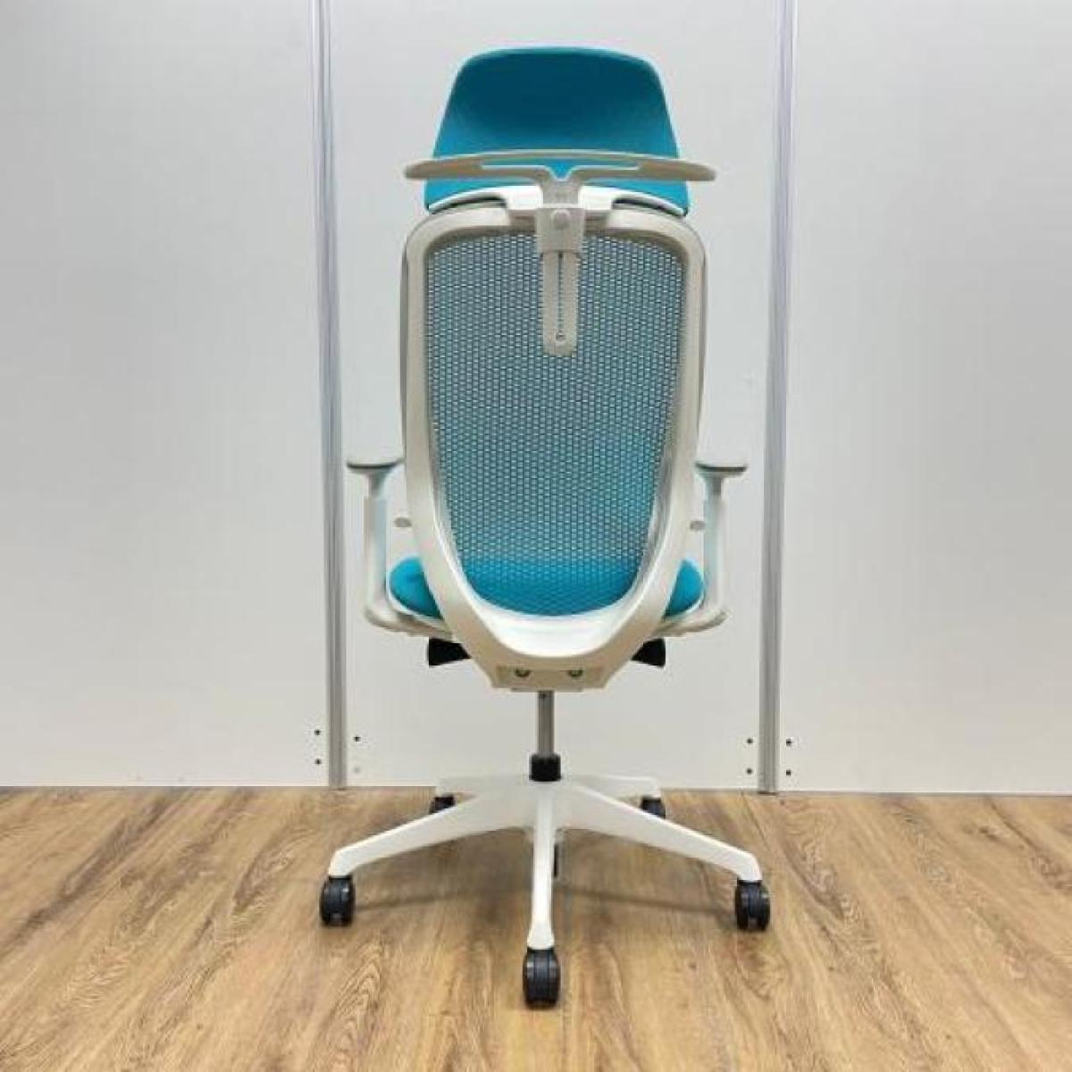 《現物写真だから安心!》オカムラ製の人気オフィスチェア【シルフィーメッシュ/可動肘/ヘッドレスト付き/ブルーグリーン】が先着1名様ご案内可能です!