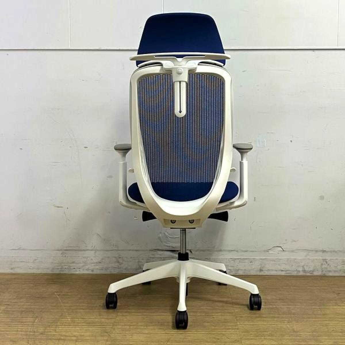【ヘッドレスト新品※11月入荷】【2018年製】オカムラ シルフィー エクストラハイバック(固定ヘッドレスト付き) 背メッシュ アジャストアーム(可動肘) ミディアムブルー×ホワイトフレーム 在宅ワーク・テレワーク用におすすめ 前傾機能搭載【AD】サーキュラーバリューCO2削減量の算出について