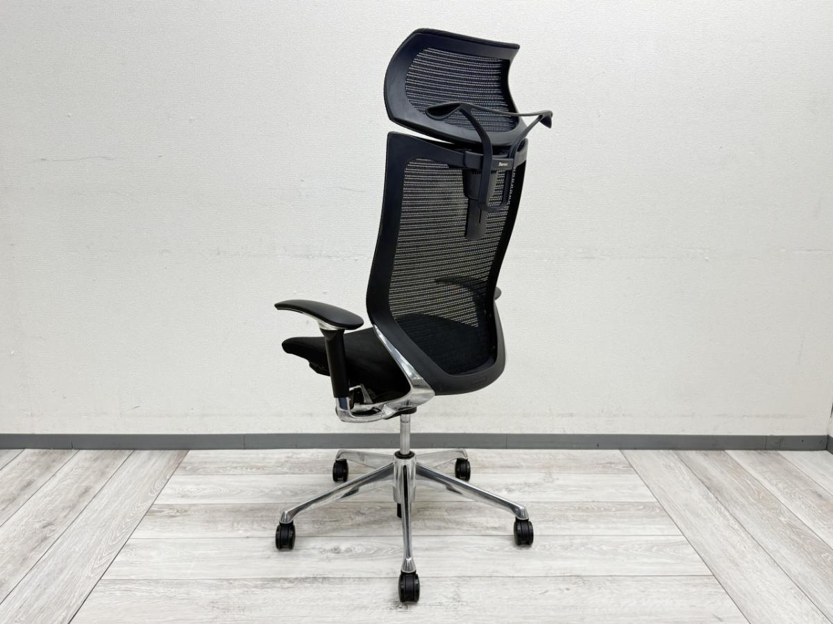 【限定1脚】人気のヘッドレスト付!数量限定入荷!【良い椅子は腰を守る投資です!】■オカムラ バロンチェア 可動肘付 ブラック ヘッドレスト付 座面メッシュ シルバーフレーム ハンガー付 ■上質な座り心地を体感できます!