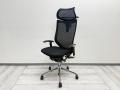 【2018年製】オカムラ バロンチェア エクストラハイバックモデル 座:メッシュ 背:メッシュ シルバーフレーム アジャストアーム 可動ヘッドレスト搭載 ※座面ヨレあり