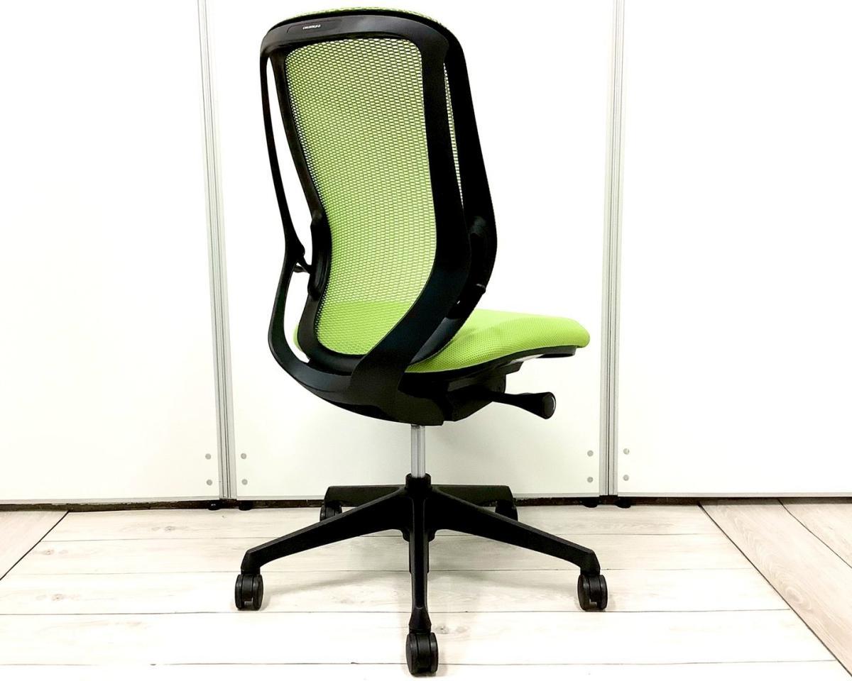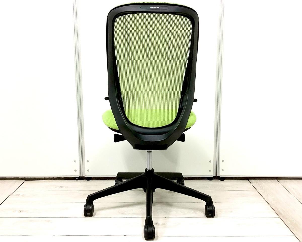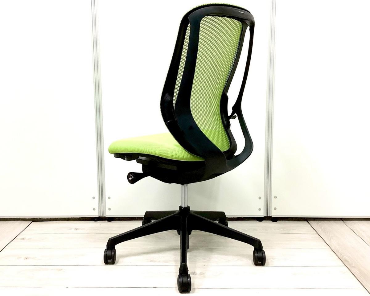 オカムラ製 シルフィ ライムグリーン ブラックフレーム 背面メッシュ ハイバック 樹脂脚 前傾チルト機能付き! オカムラ製品で最も人気を集める高機能メッシュチェア! 肘無しハイバックチェア!!