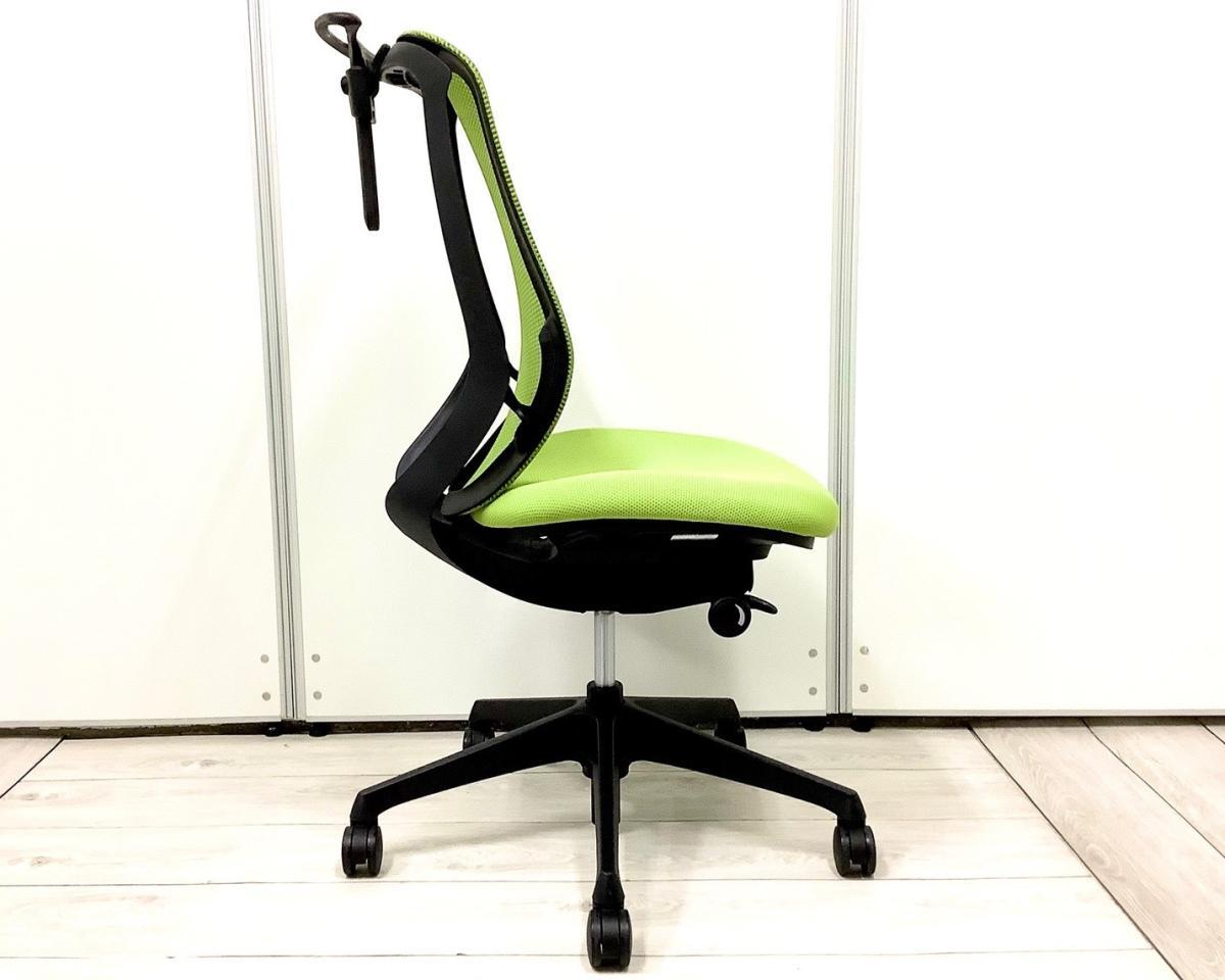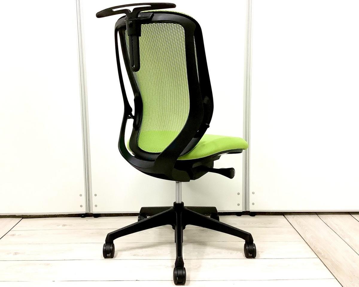 オカムラ製 シルフィ ライムグリーン ブラックフレーム 背面メッシュ ハイバック ハンガー付 樹脂脚 前傾チルト機能付き! オカムラ製品で最も人気を集める高機能メッシュチェア! 肘無しハイバックチェア!!