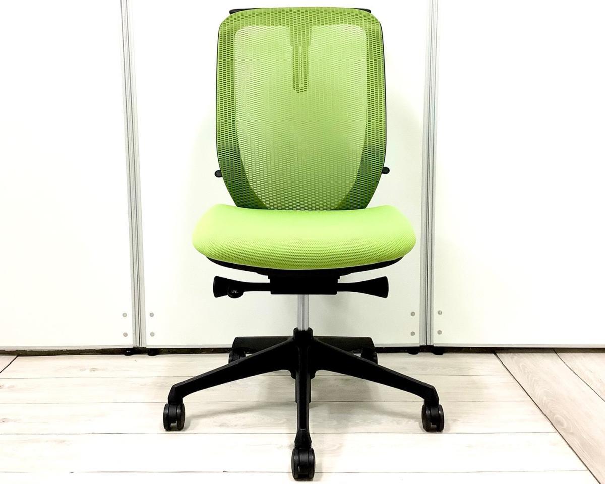 オカムラ製 シルフィ ライムグリーン ブラックフレーム 背面メッシュ ハイバック 樹脂脚 前傾チルト機能付き! オカムラ製品で最も人気を集める高機能メッシュチェア! 肘無しハイバックチェア!!