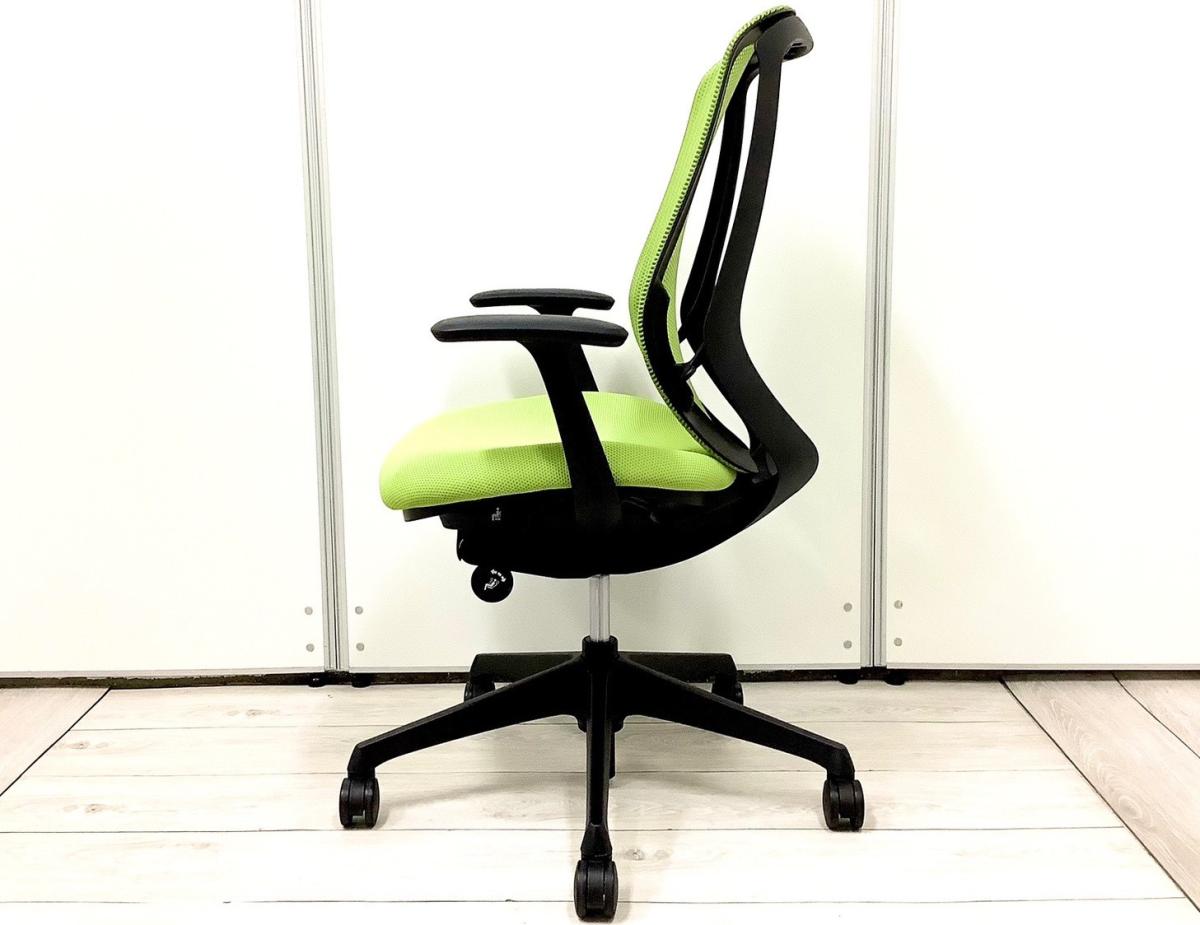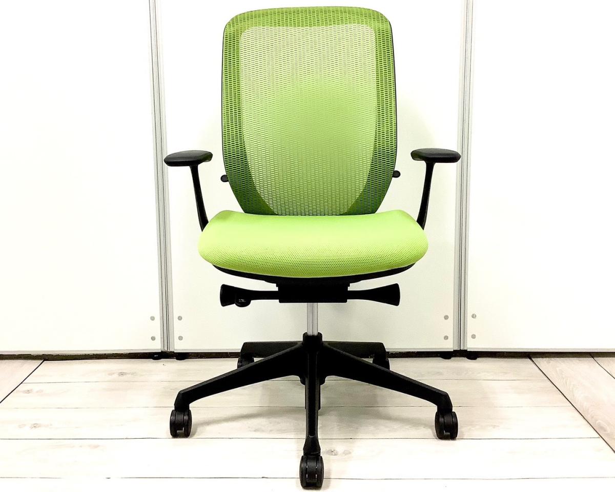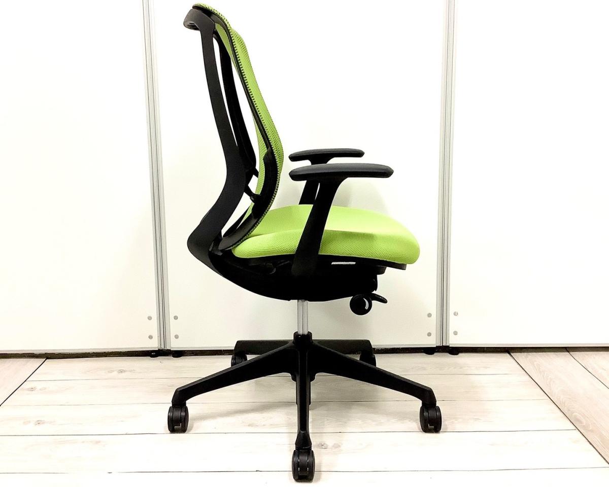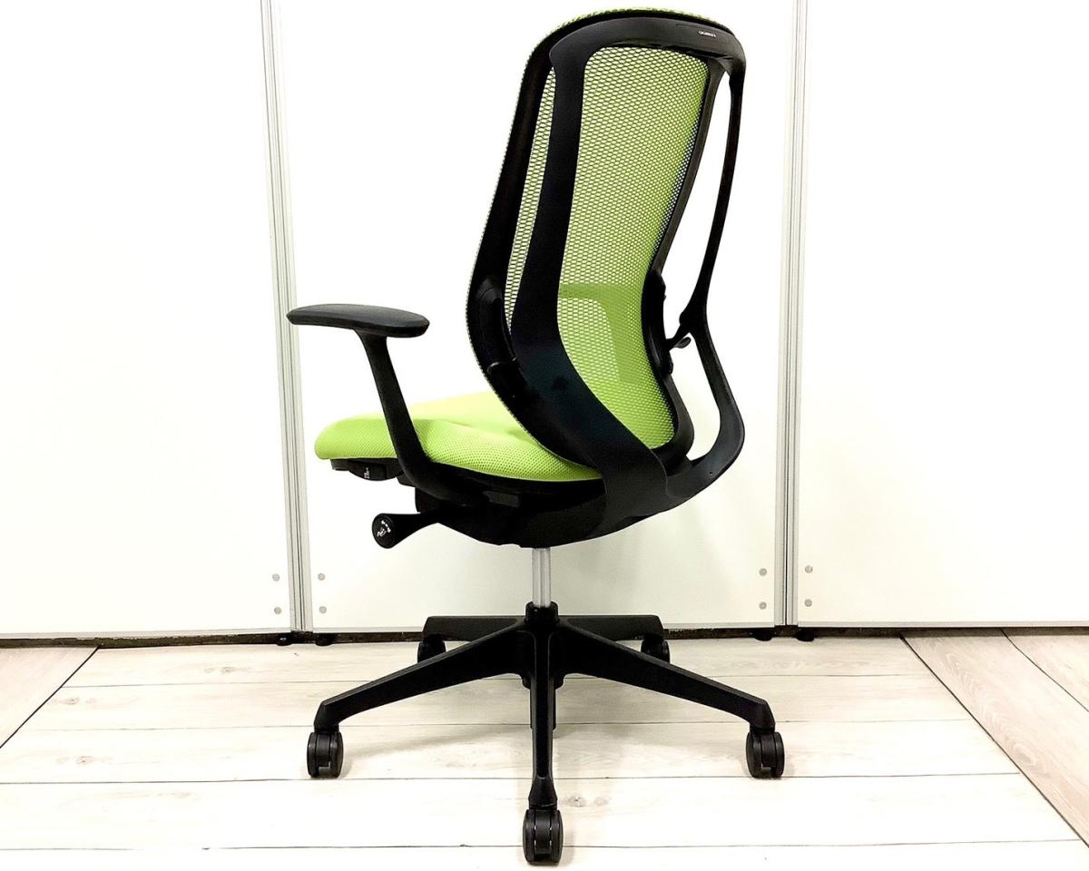 【前傾チルト機能付き!オカムラ製品で最も人気を集める高機能メッシュチェア!】■オカムラ(okamura)製 シルフィ(Sylphy)チェア ハイバック 肘付き ■可動肘 ■ライムグリーン × ホワイトシェル【状態良好品!】