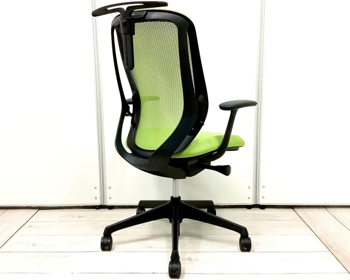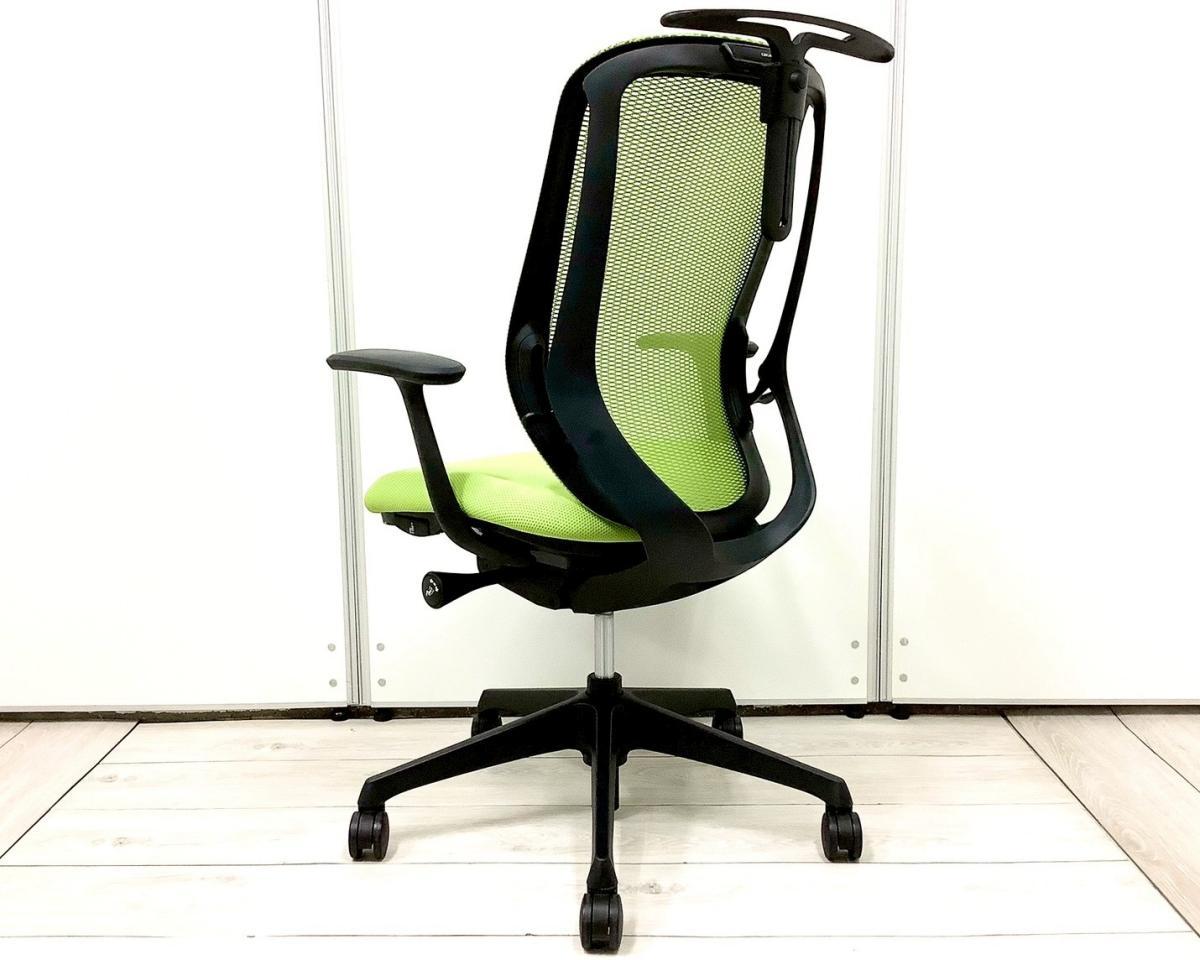 【前傾チルト機能付き!オカムラ製品で最も人気を集める高機能メッシュチェア!】■オカムラ(okamura)製 シルフィ(Sylphy)チェア ハイバック 肘付き ■可動肘 ■ライムグリーン × ホワイトシェル【状態良好品!】