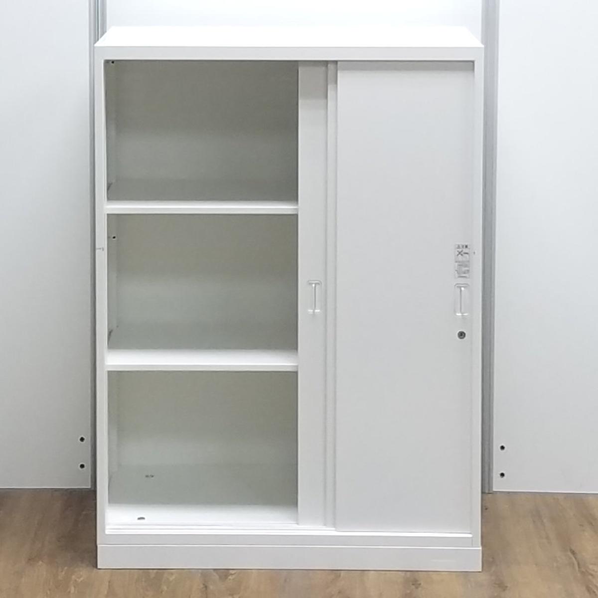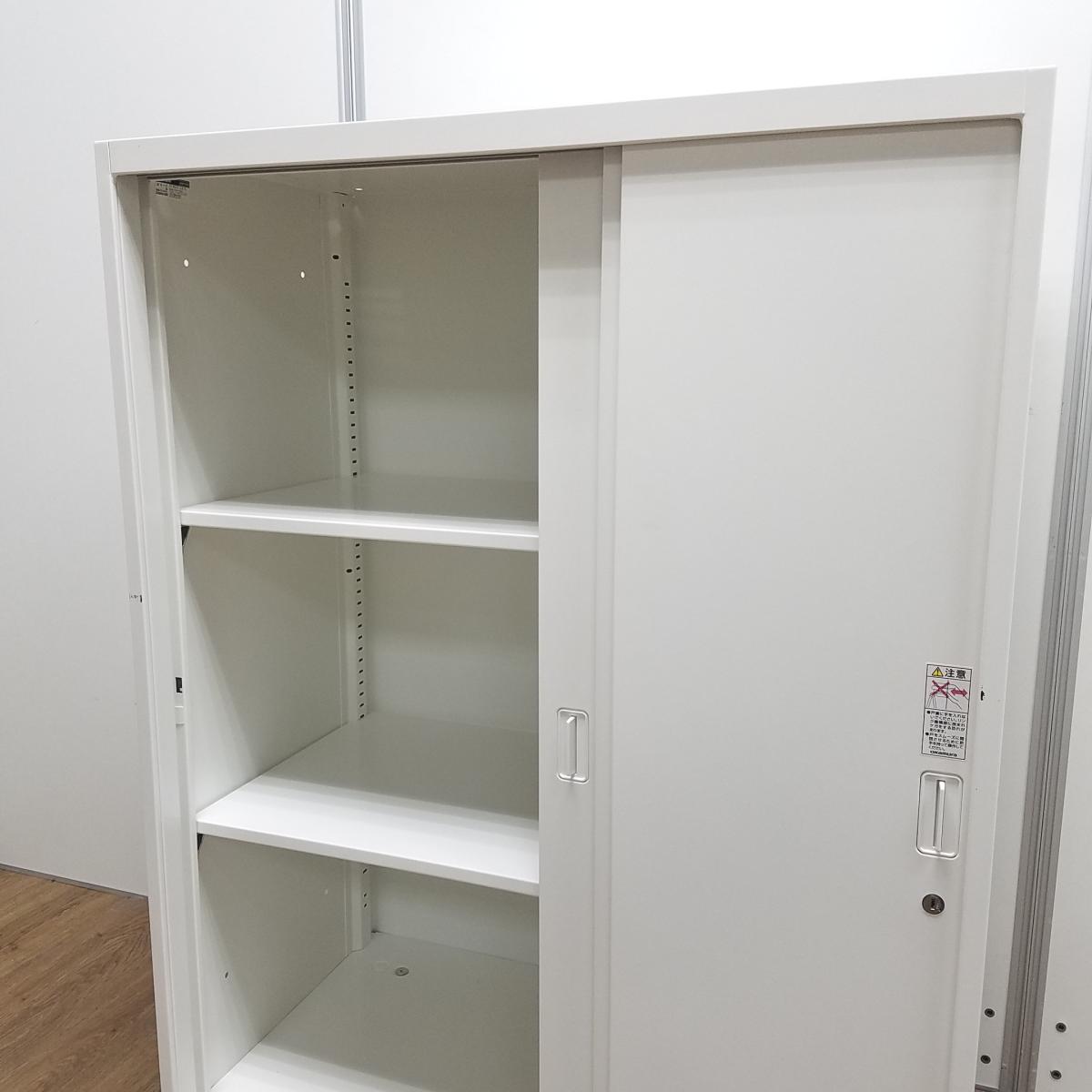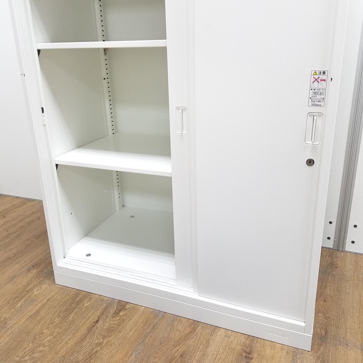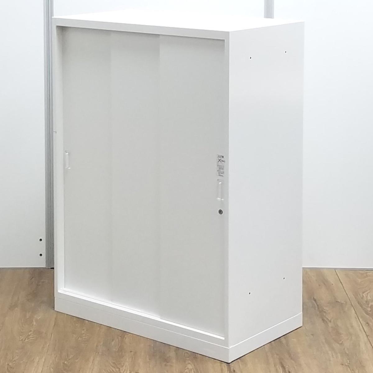 スライド式の扉のため導線を邪魔しません!使い勝手抜群の2枚引き違い書庫が入荷! ■オカムラ/レクトライン/ホワイト 2枚引き戸