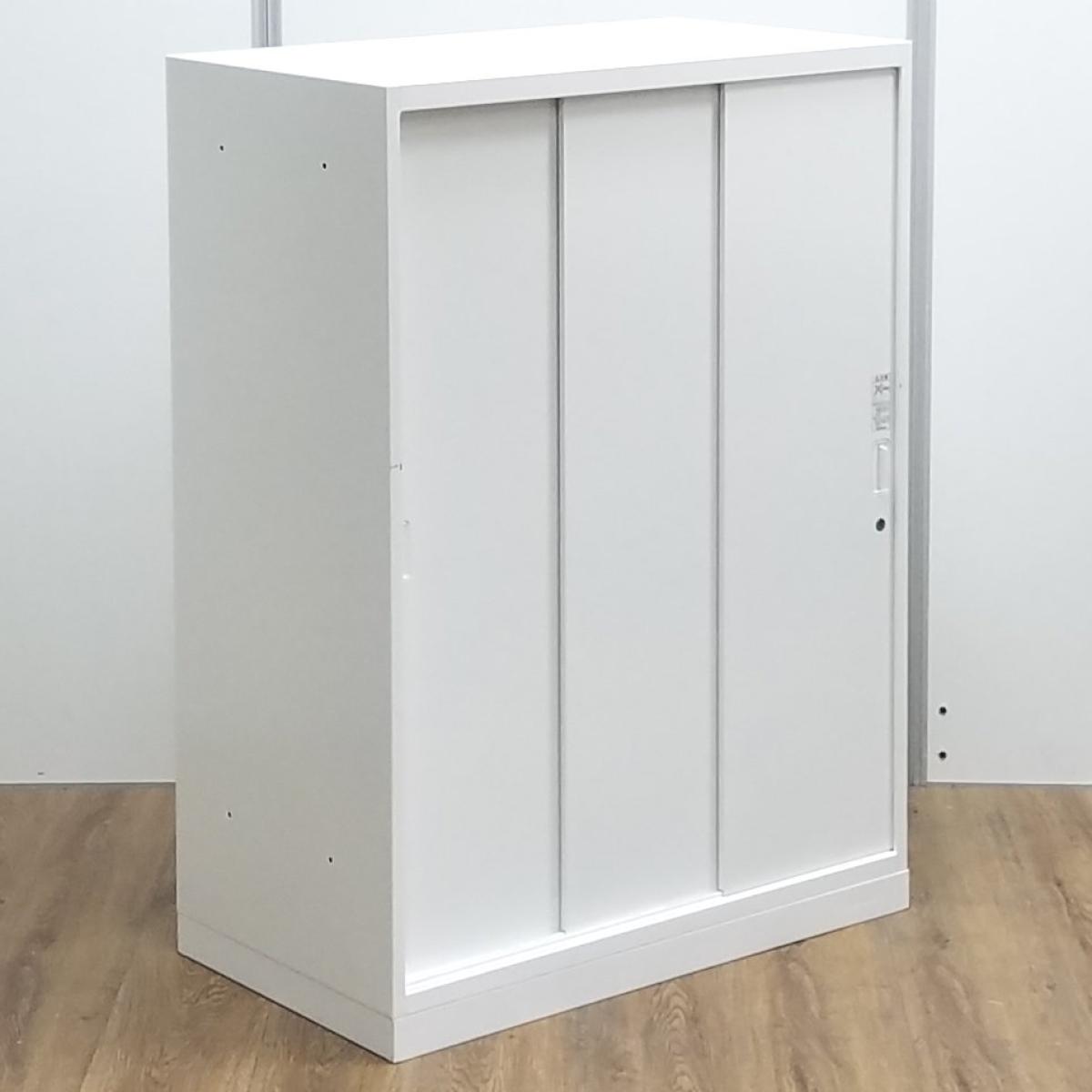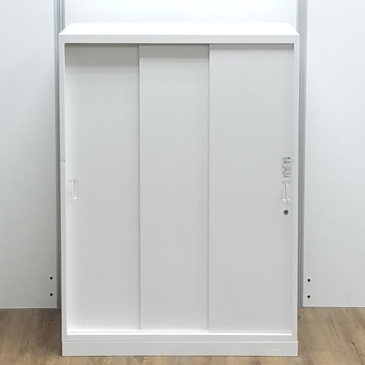 【スライド引き戸だから開閉スペースに困りません!】【人気のホワイト書庫!】■オカムラ(okamura)製 レクトラインシリーズ 3枚戸タイプ 引き違い書庫 ■色:ホワイト ■シリンダー鍵