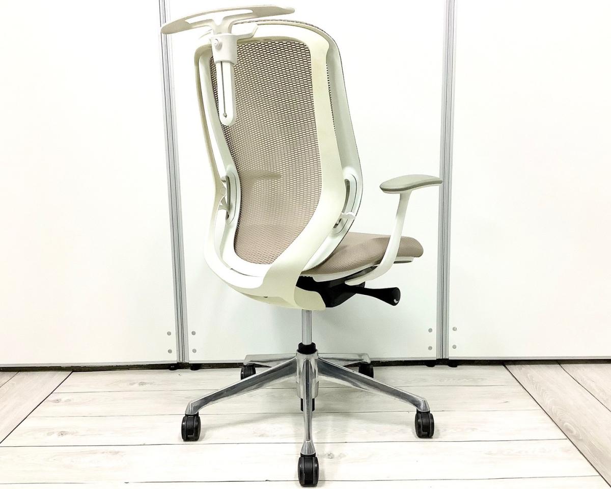 前傾/オススメ/大人気 オカムラ製 シルフィ(Sylphy) 肘付き ハイバック 背面メッシュ ■可動肘 ■ハンガー付き ■ポリッシュ脚 ■ベージュ× ホワイトシェル【BR】【外部倉庫品】