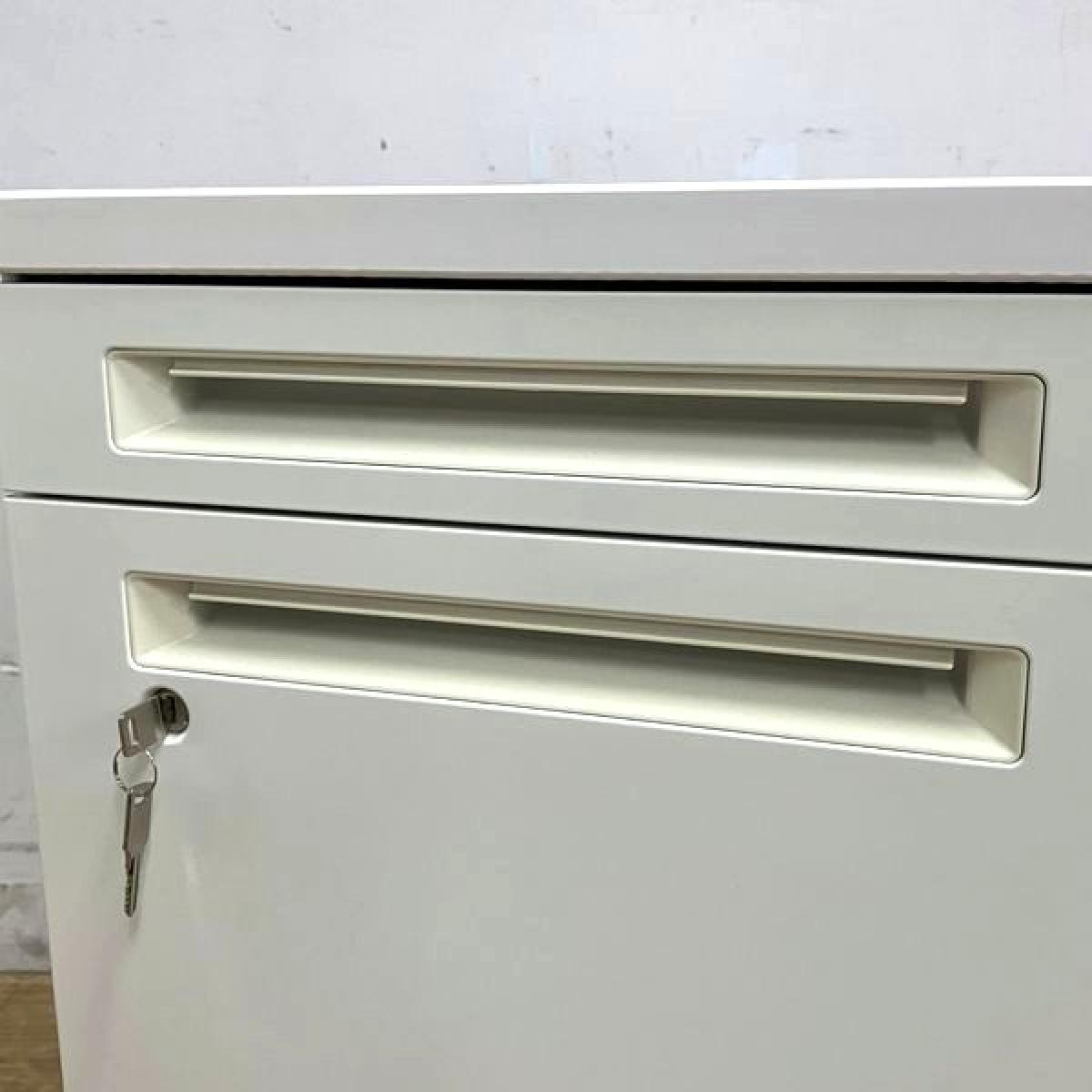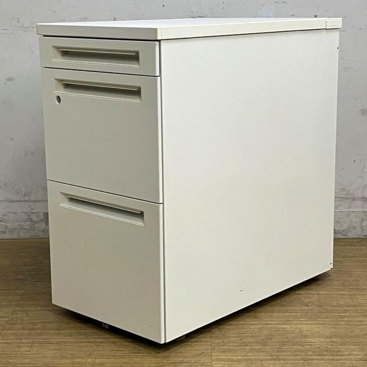 オカムラ アドバンス 3段脇机 ホワイト シリンダー錠 H720のデスクのお供に A4ファイル×2段+ペントレーの3段収納【愛知・名古屋・豊田・静岡・浜松】在庫がある店舗一覧