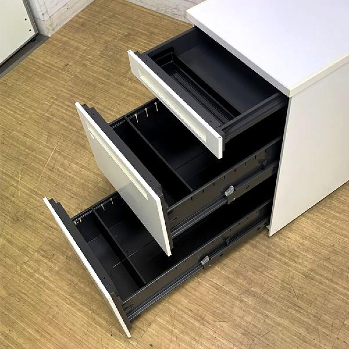 【4台限定!!】オカムラのロングセラー商品の「アドバンス」シリーズの脇机!中古 脇机 袖 サブデスク オフィス ホワイト 引出し 3段 外部倉庫在庫