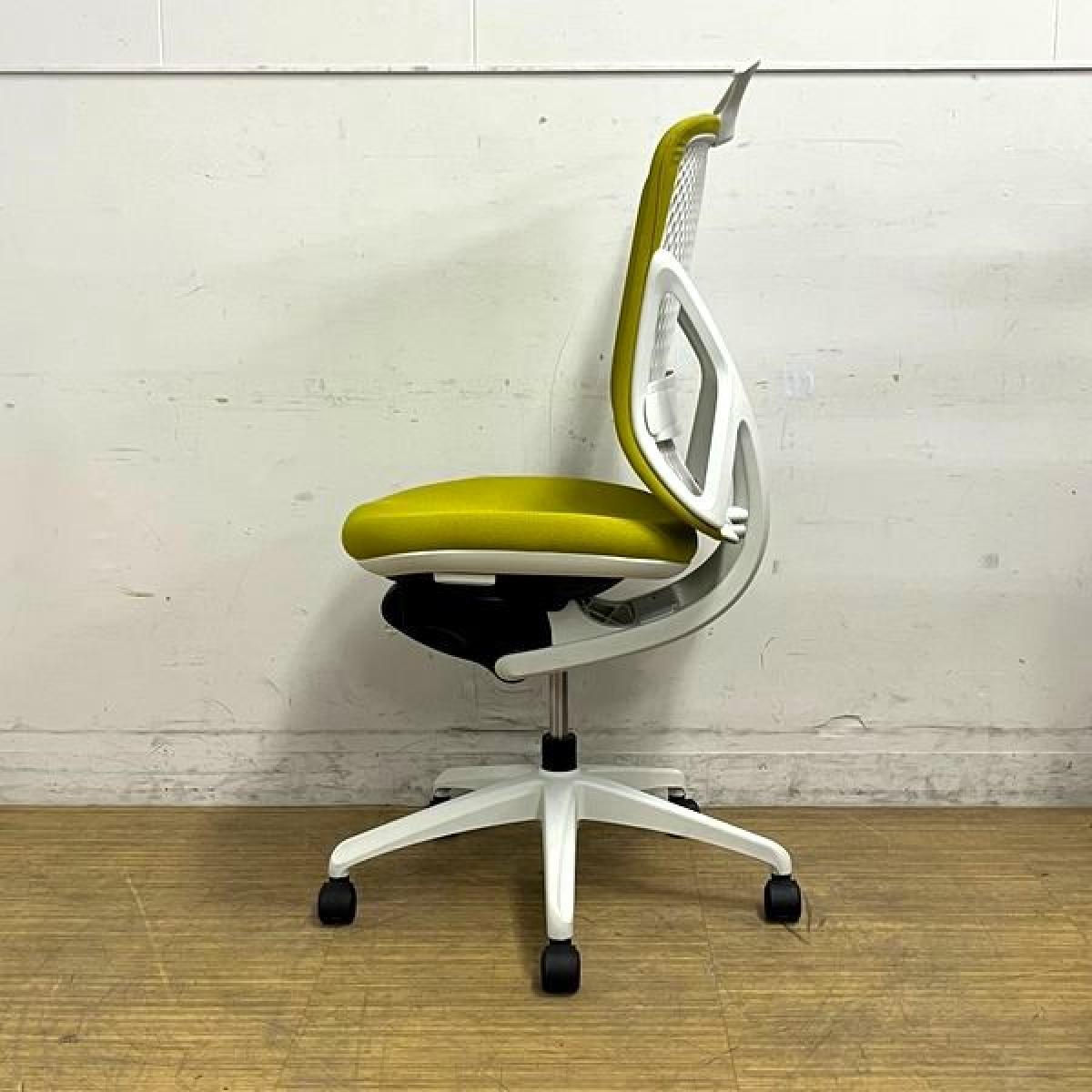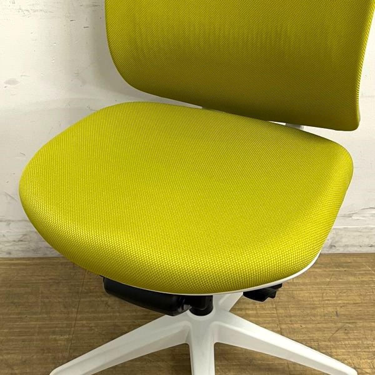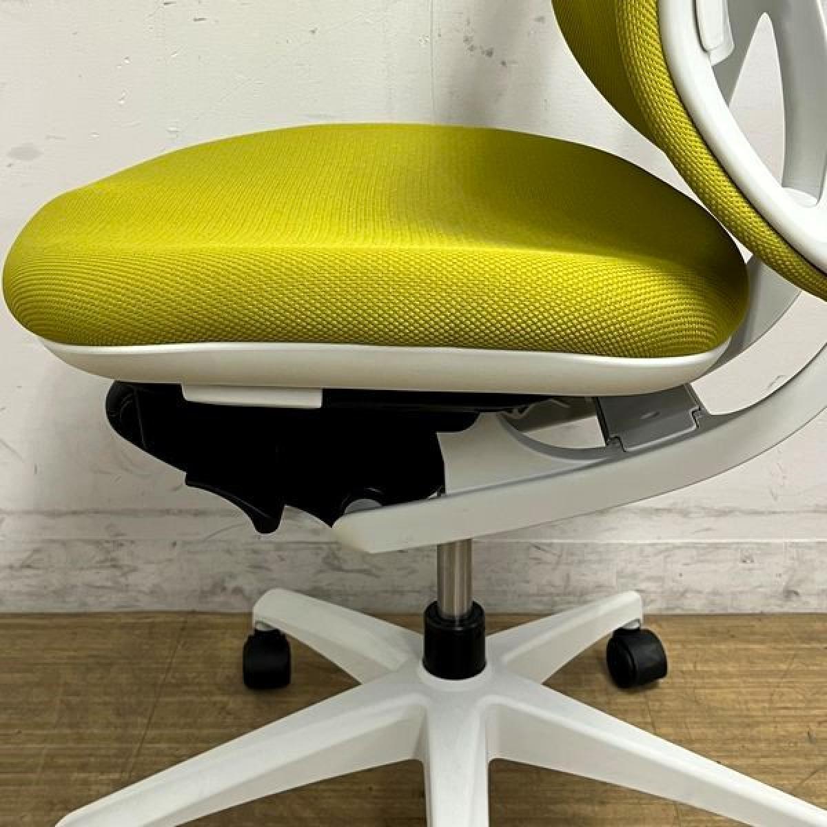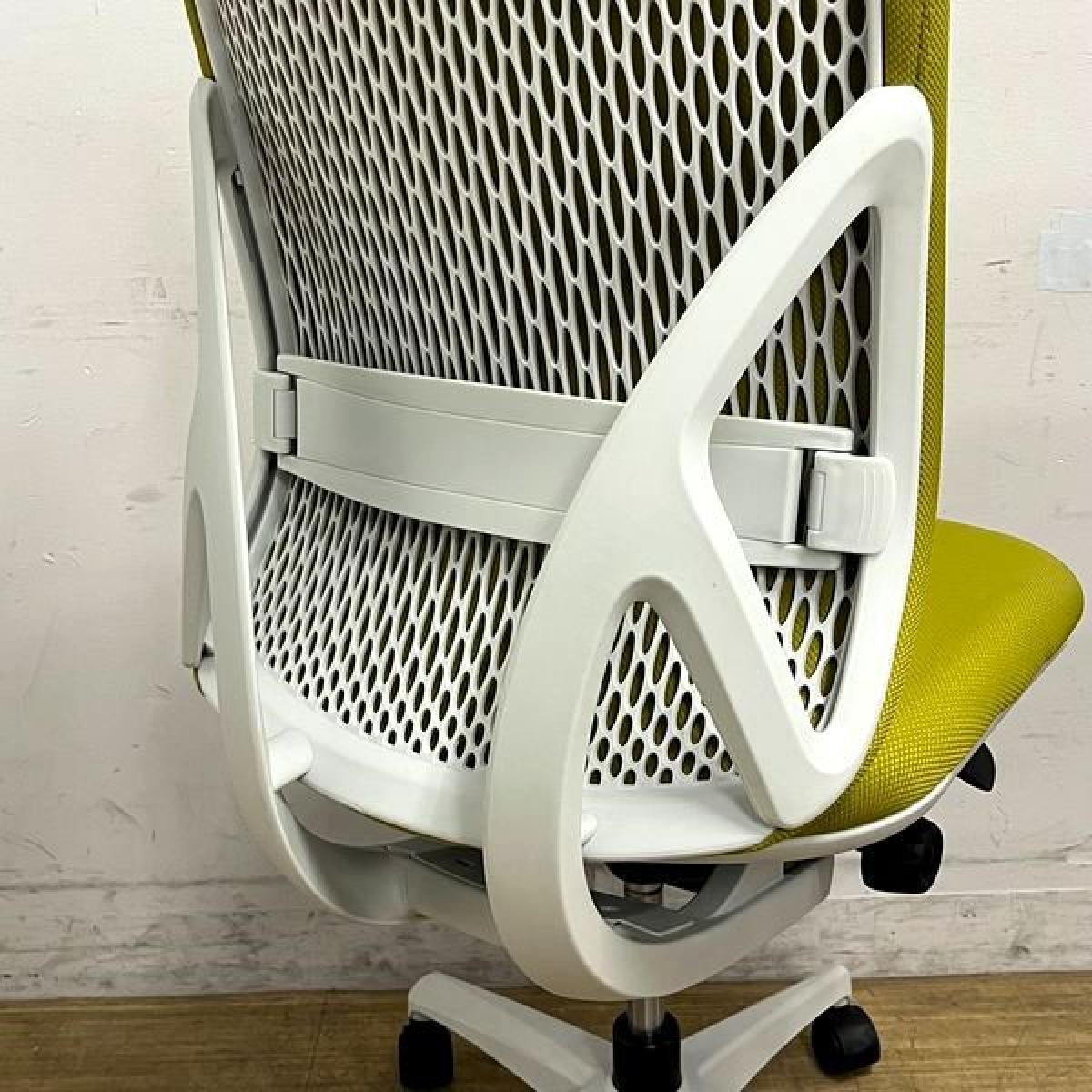 【在庫入替セール】イナバ イエラ(yera) 肘無しチェア ハイバックモデル 樹脂メッシュクロスカバー ランバーサポート・コートハンガー搭載 イエローグリーン×ホワイトフレーム- 名古屋千種店