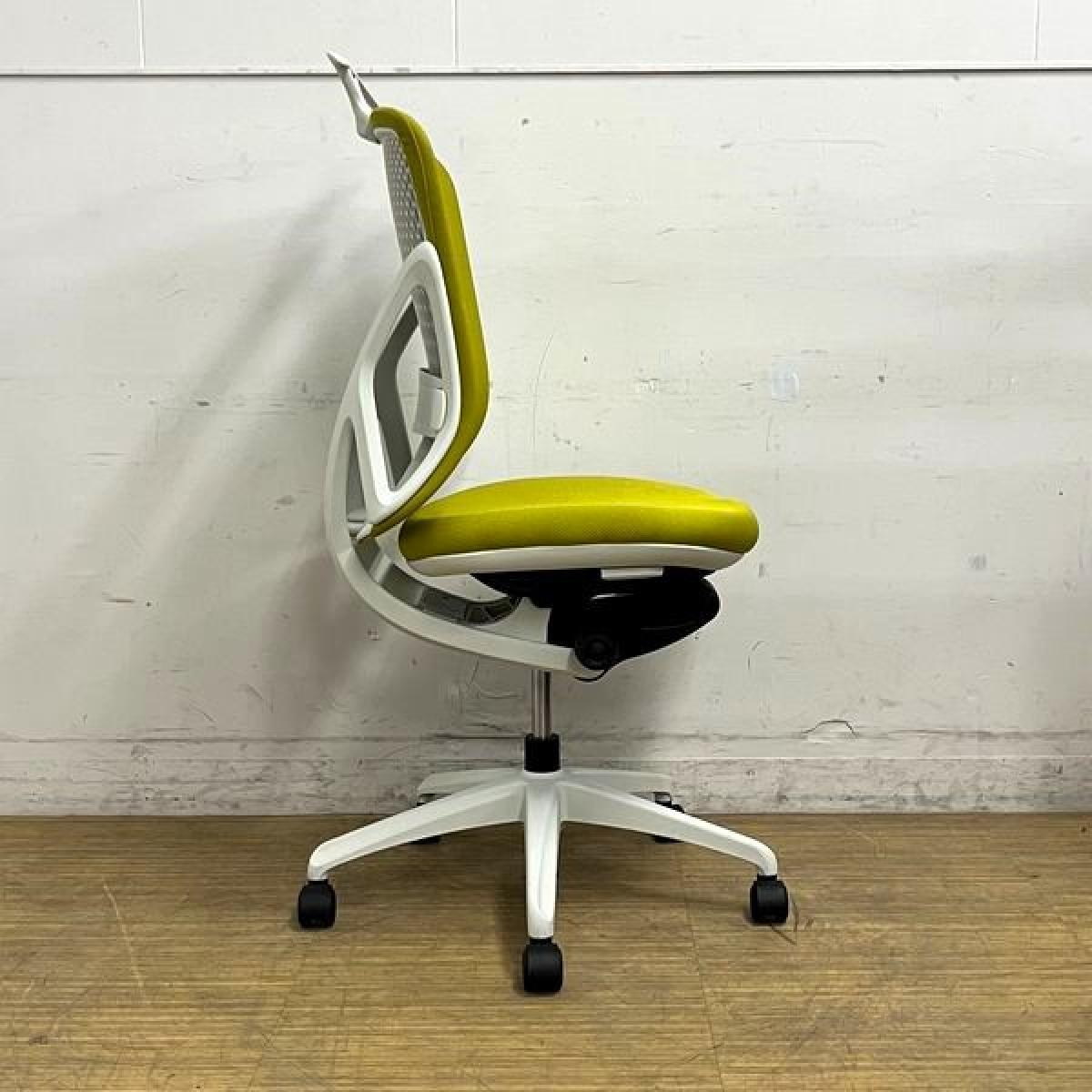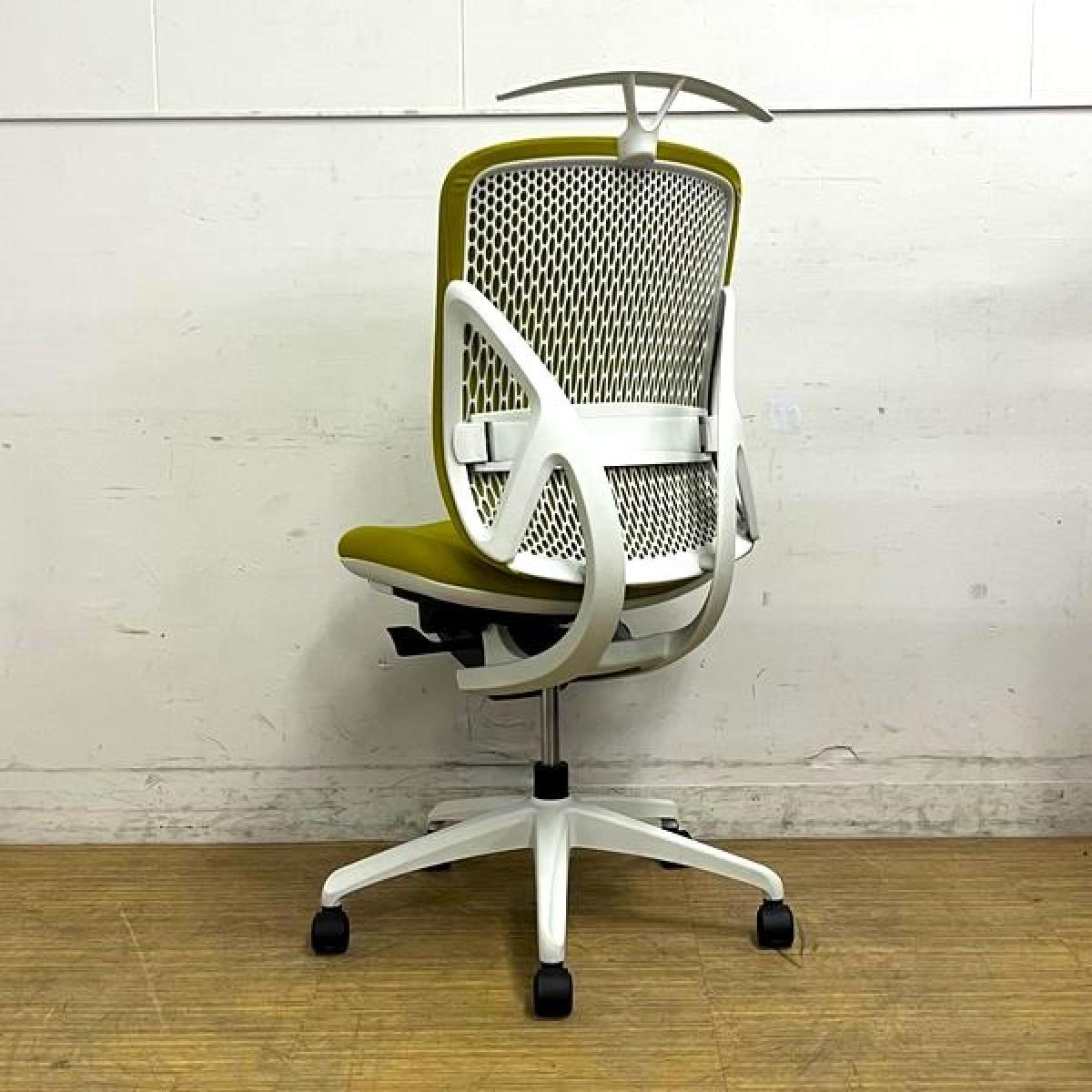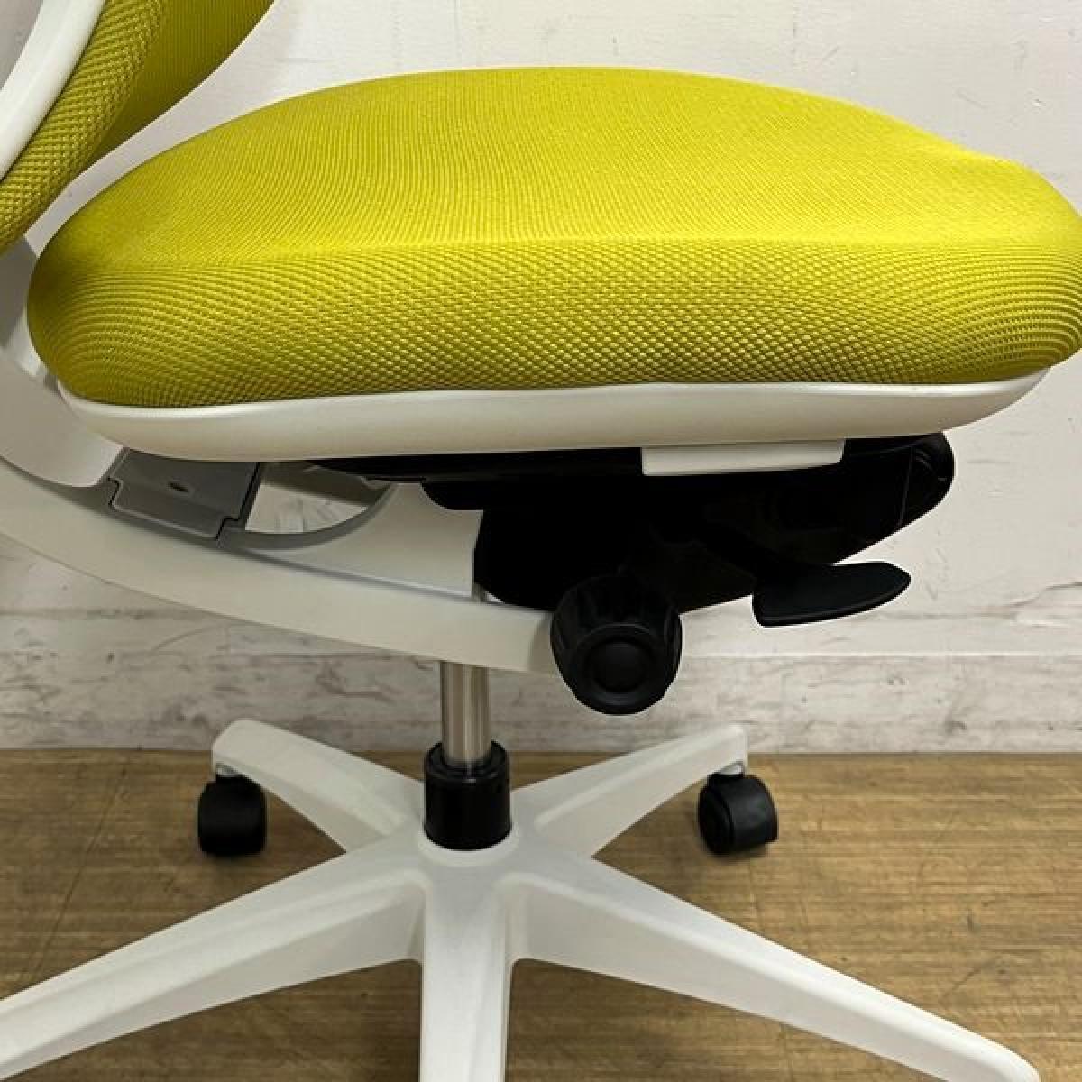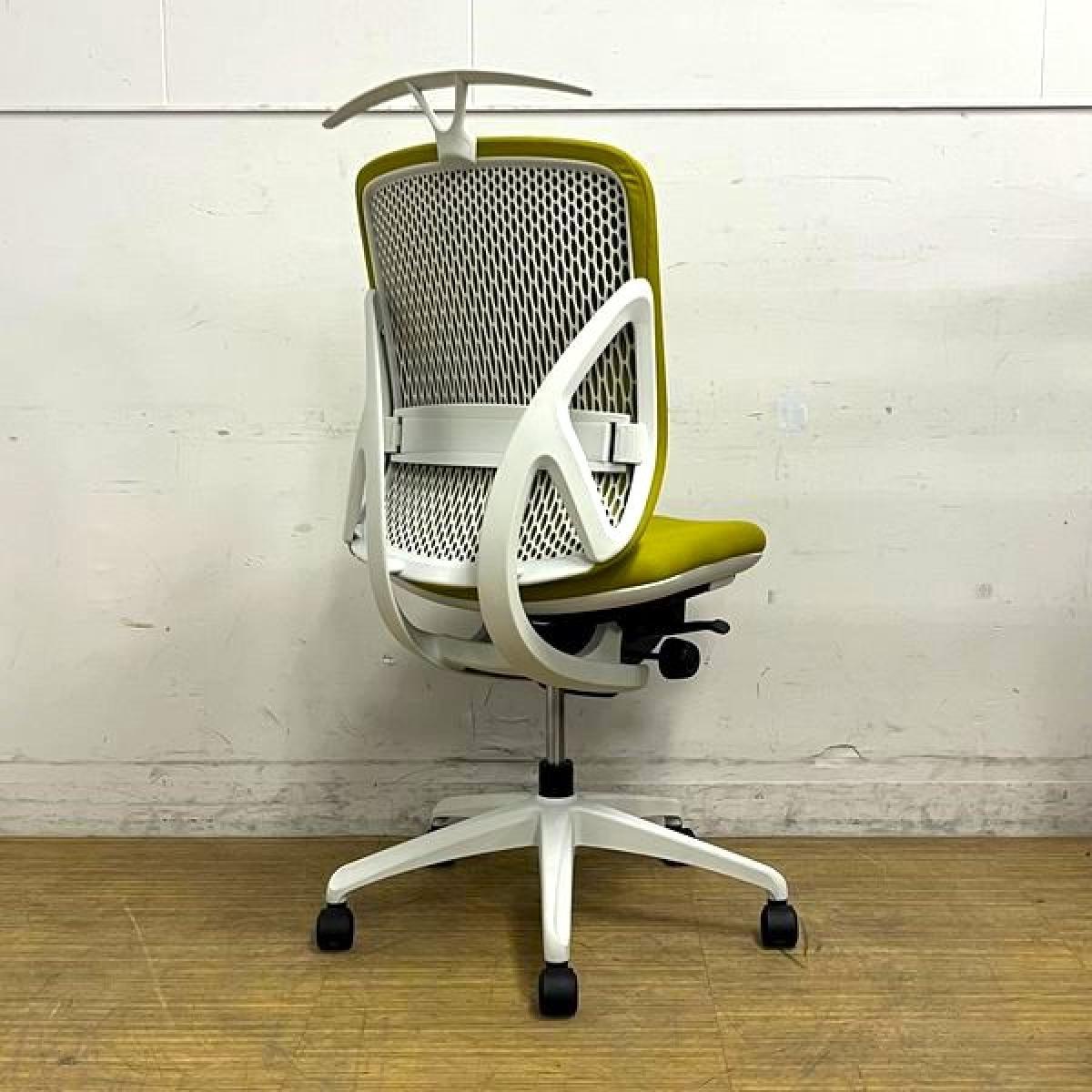 【在庫入替セール】イナバ イエラ(yera) 肘無しチェア ハイバックモデル 樹脂メッシュクロスカバー ランバーサポート・コートハンガー搭載 イエローグリーン×ホワイトフレーム- 名古屋千種店