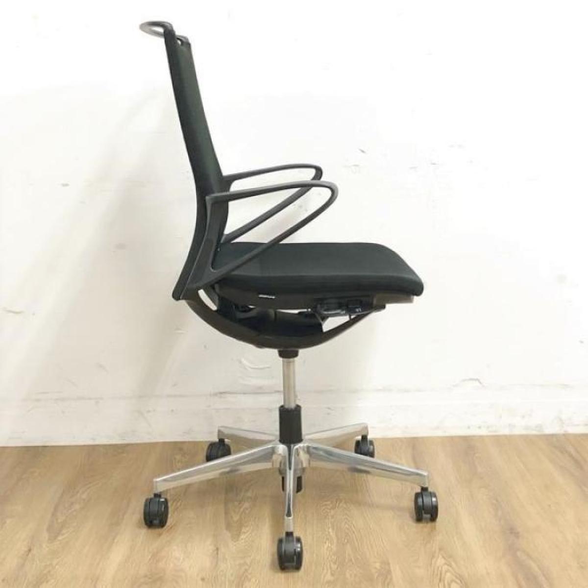 【在庫入替セール】オカムラ モード デザインアーム搭載 ミドルバック ブラック×アルミ脚 張地:クロス(プレーン) 高いデザイン性×シンプルかつ操作性のある機能- 名古屋千種店