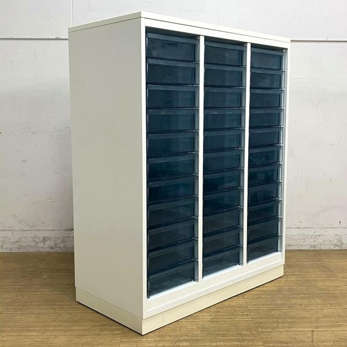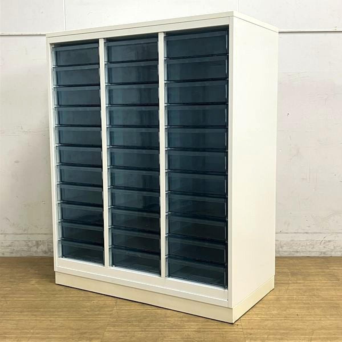 【書類・備品整理の必需品!】【珍しいクリトレが入荷!3列×深型9段タイプ!】■コクヨ(KOKUYO)製 エディア(EDIA)シリーズ クリスタルトレイ ローキャビネット H980㎜ ■3列×深型9段 ■ベース付 ■色:ホワイト