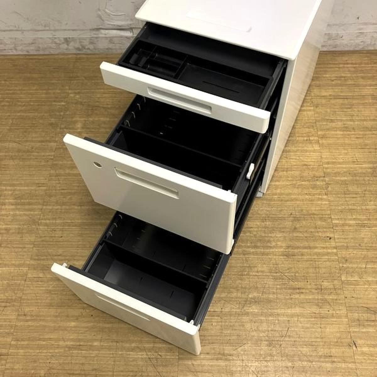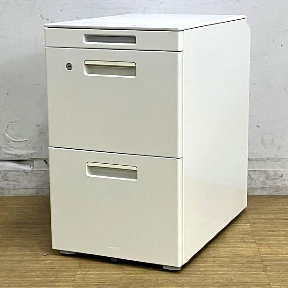 フリーアドレスデスク向け 3段ワゴン コクヨ GTシリーズ シリンダー錠 鍵付き ホワイト A4ファイル×2段+ペントレー- 名古屋千種店