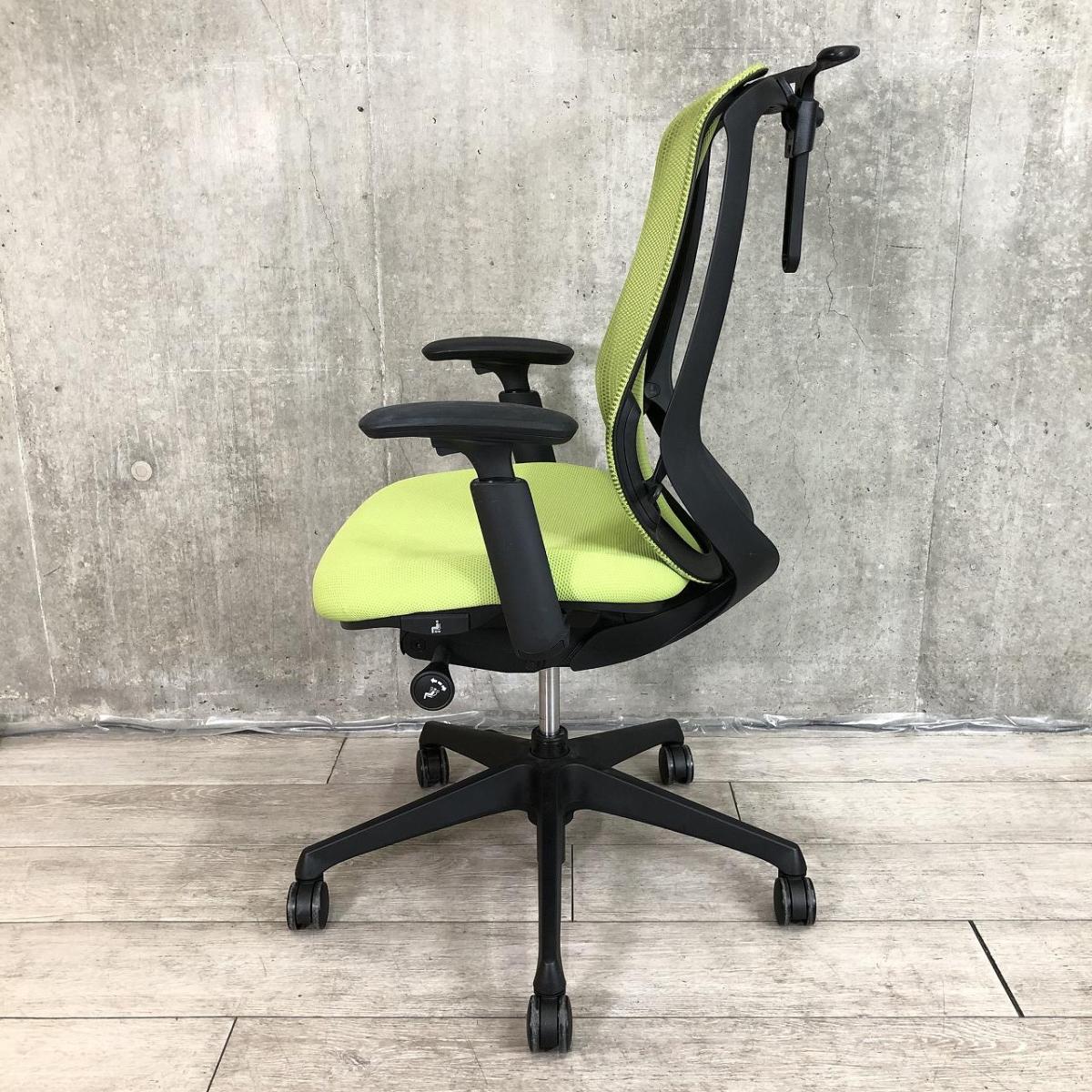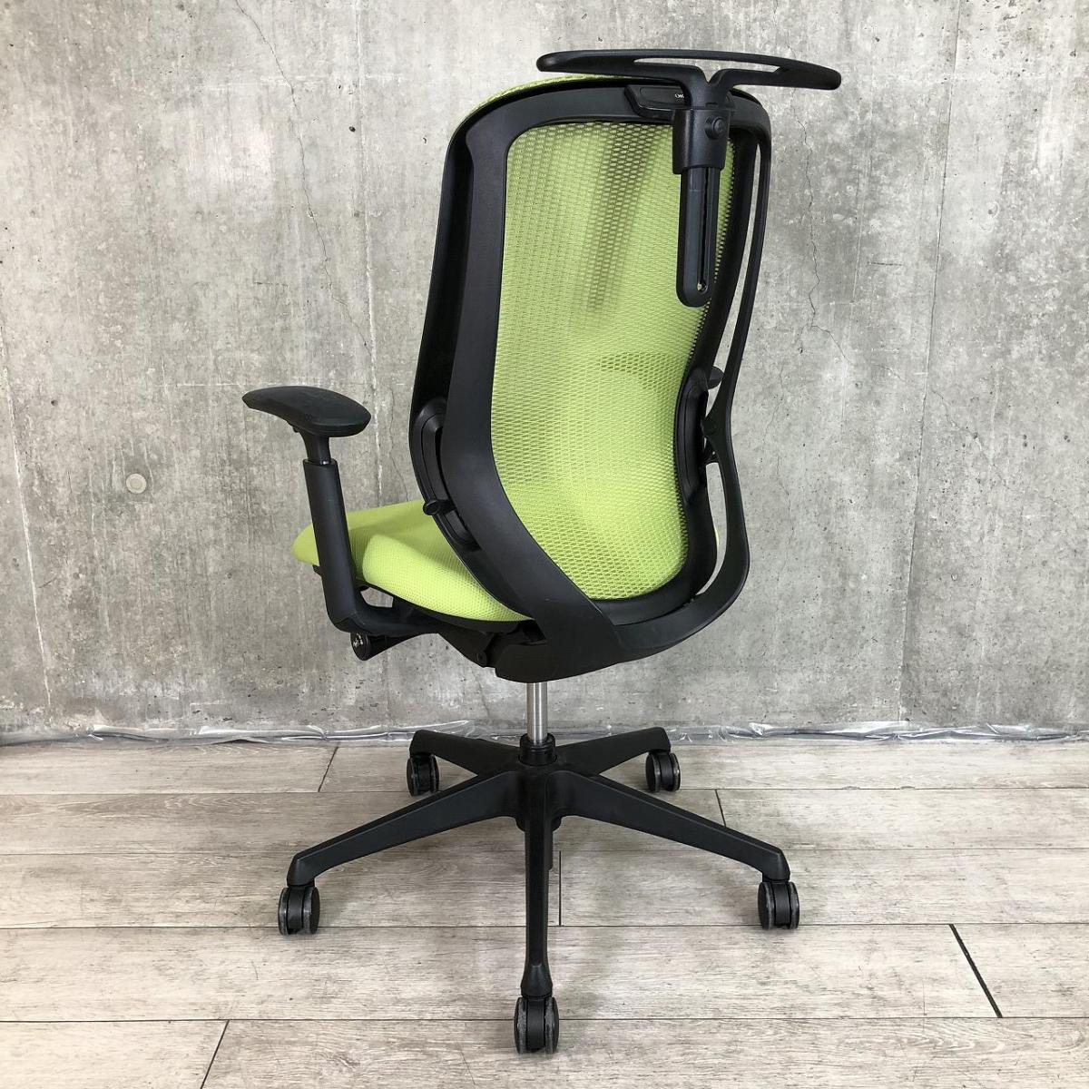 【前傾チルト機能付き!オカムラ製品で最も人気を集める高機能メッシュチェア!】■オカムラ(okamura)製 シルフィ(Sylphy)チェア ハイバック 肘付き ■可動肘 ■ライムグリーン × ホワイトシェル【状態良好品!】