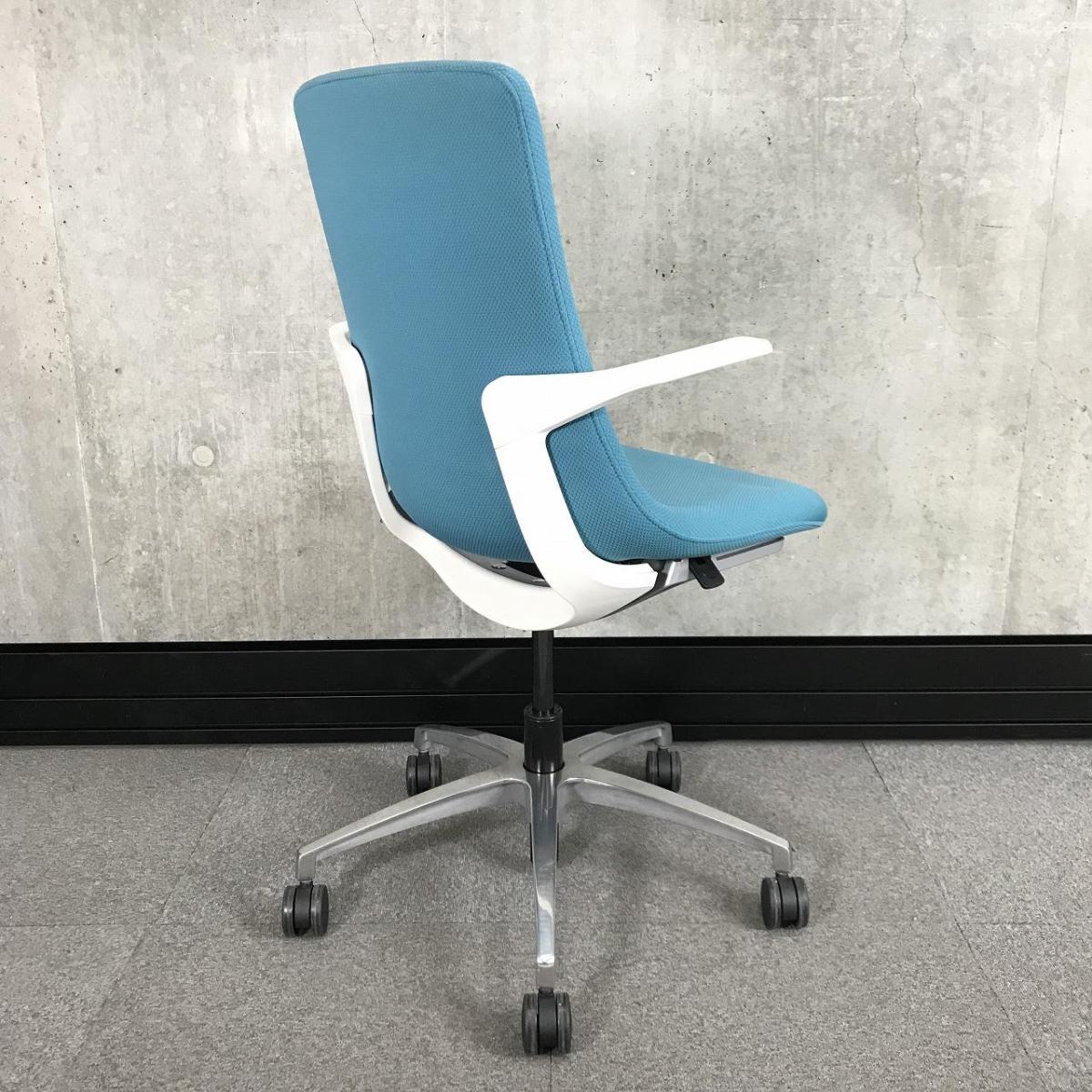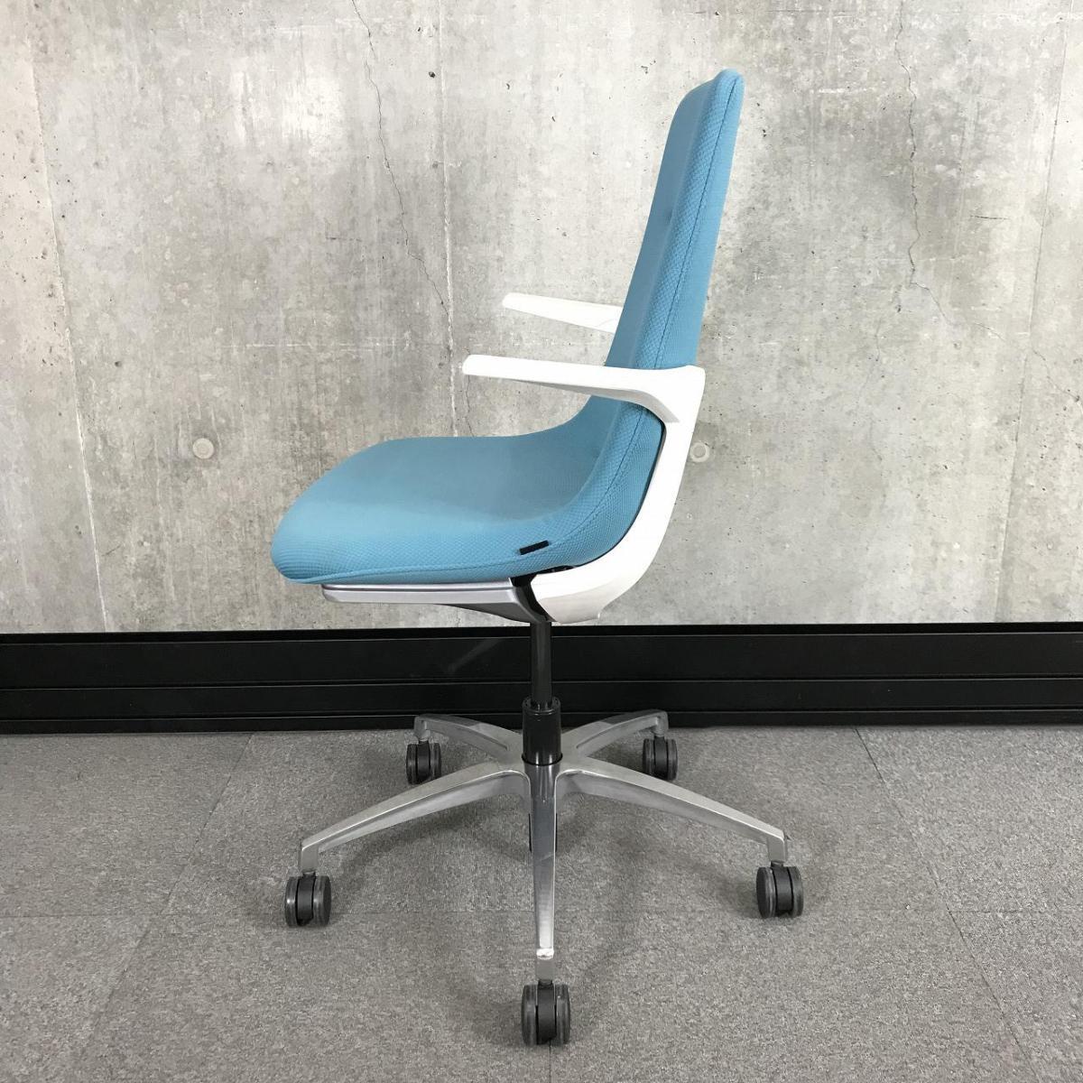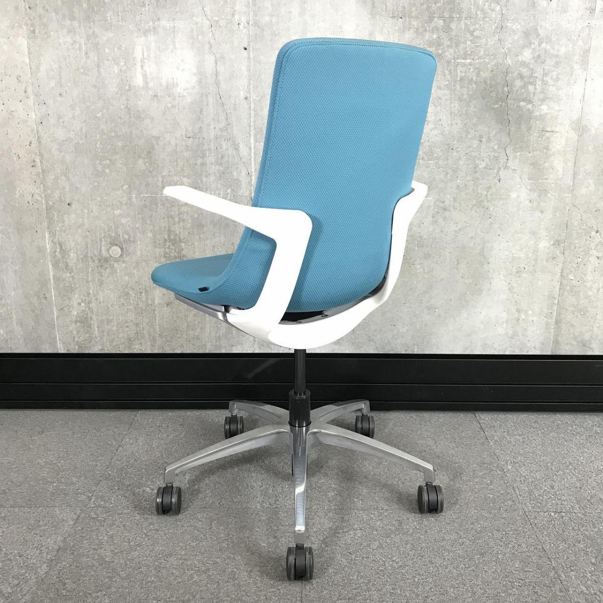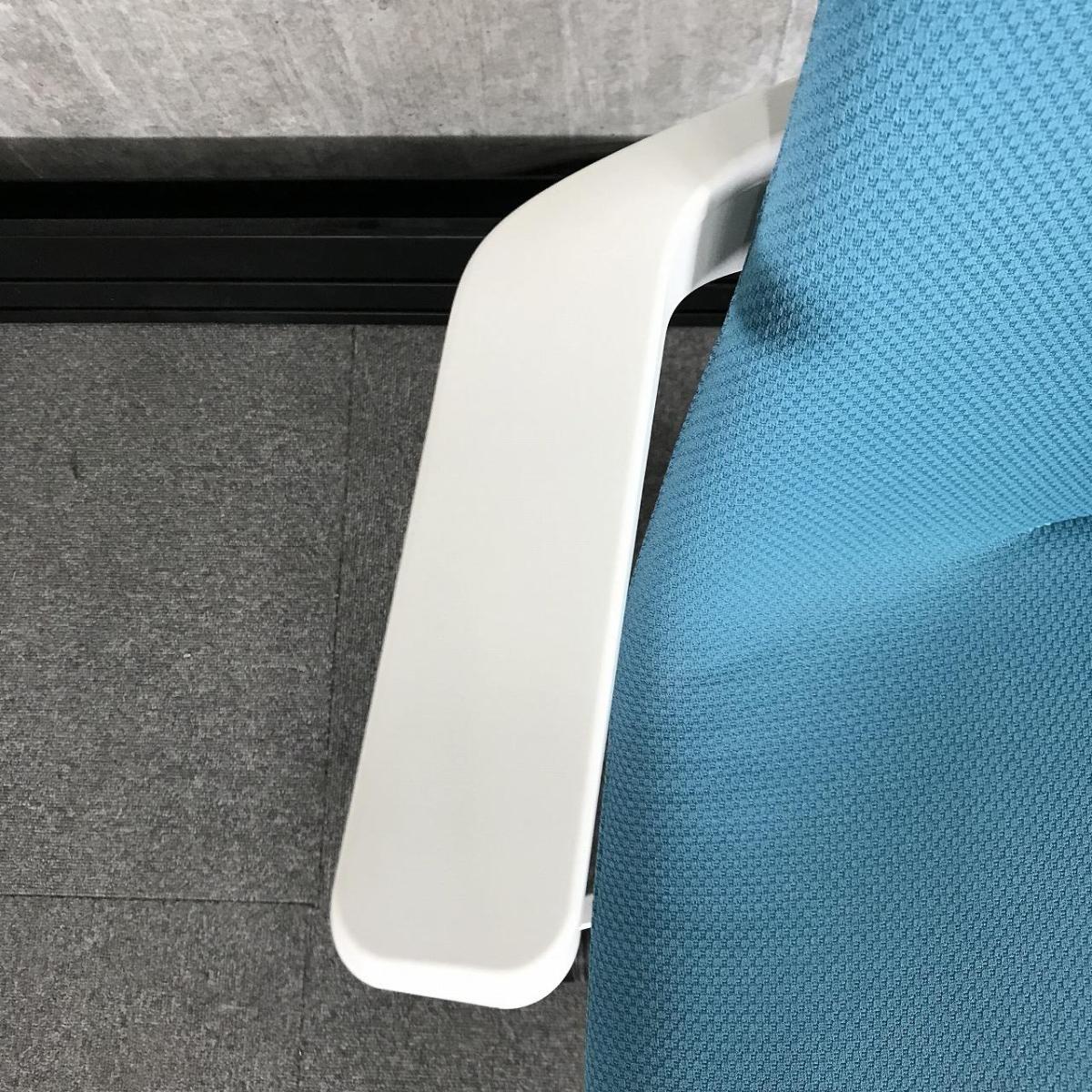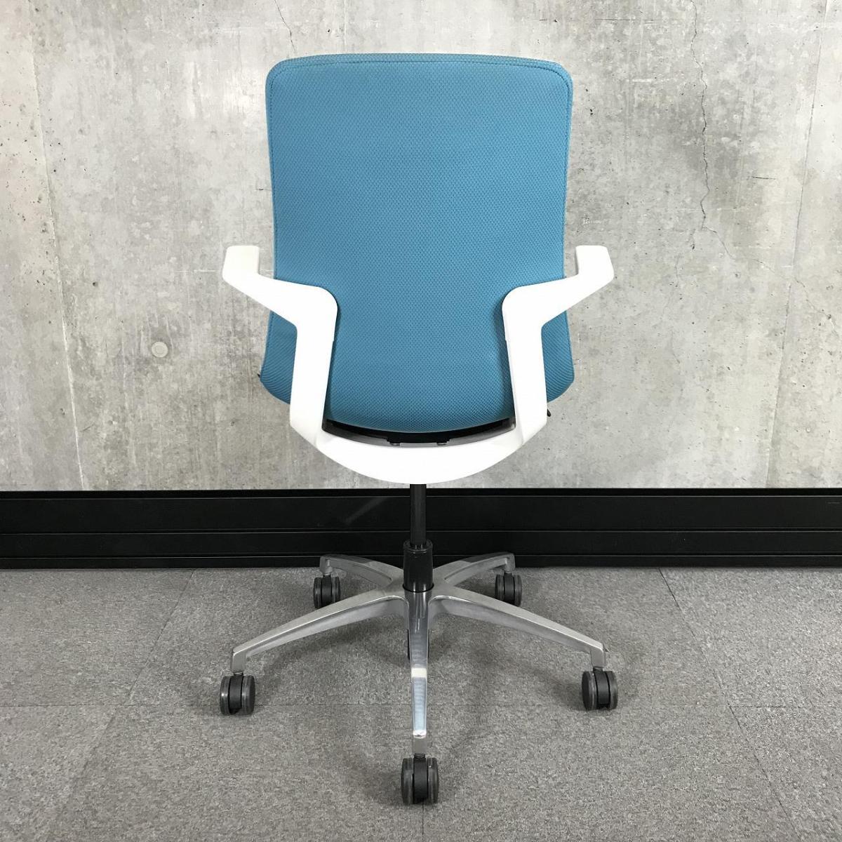 【背と座をなめらかに一体化させた独特のフォルム!】■イトーキ(ITOKI)製 モーブチェア(MOVU) 肘付きミーティングチェア ■固定肘 ■ターコイズブルー シェル色:ホワイト 【2503】弊社使用欄【A01002402】- 埼玉本店
