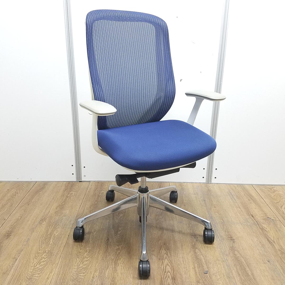 【新品ヘッドレスト交換済み】オカムラ/シルフィー/ブルー/可動肘