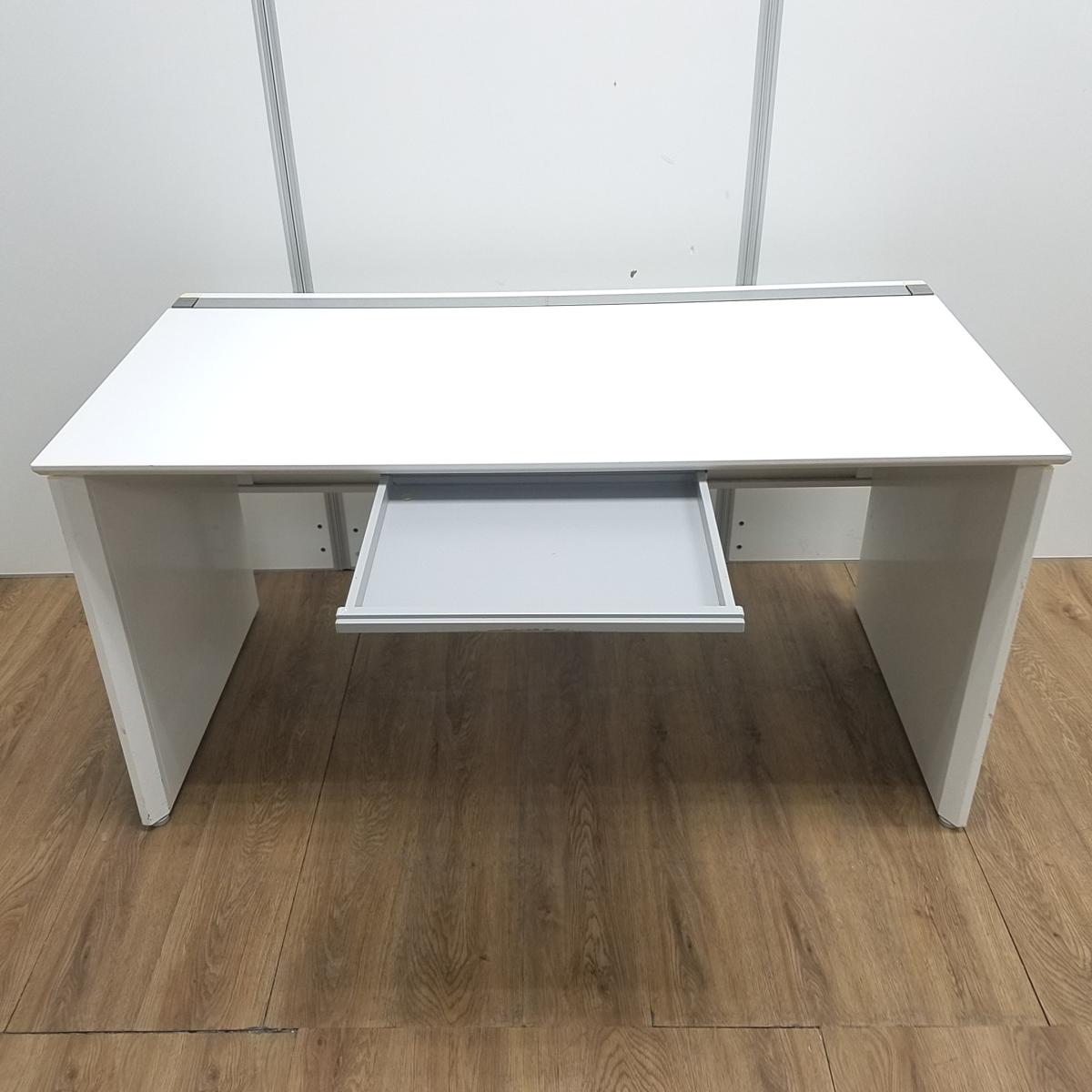 オカムラ製 プロユニット ホワイト 中央引き出し付 W1400×D725×H720サイズ パネル脚 ゆとりのあるワークスペースで作業効率アップ! W1400ワークデスク!!- 京都東寺店