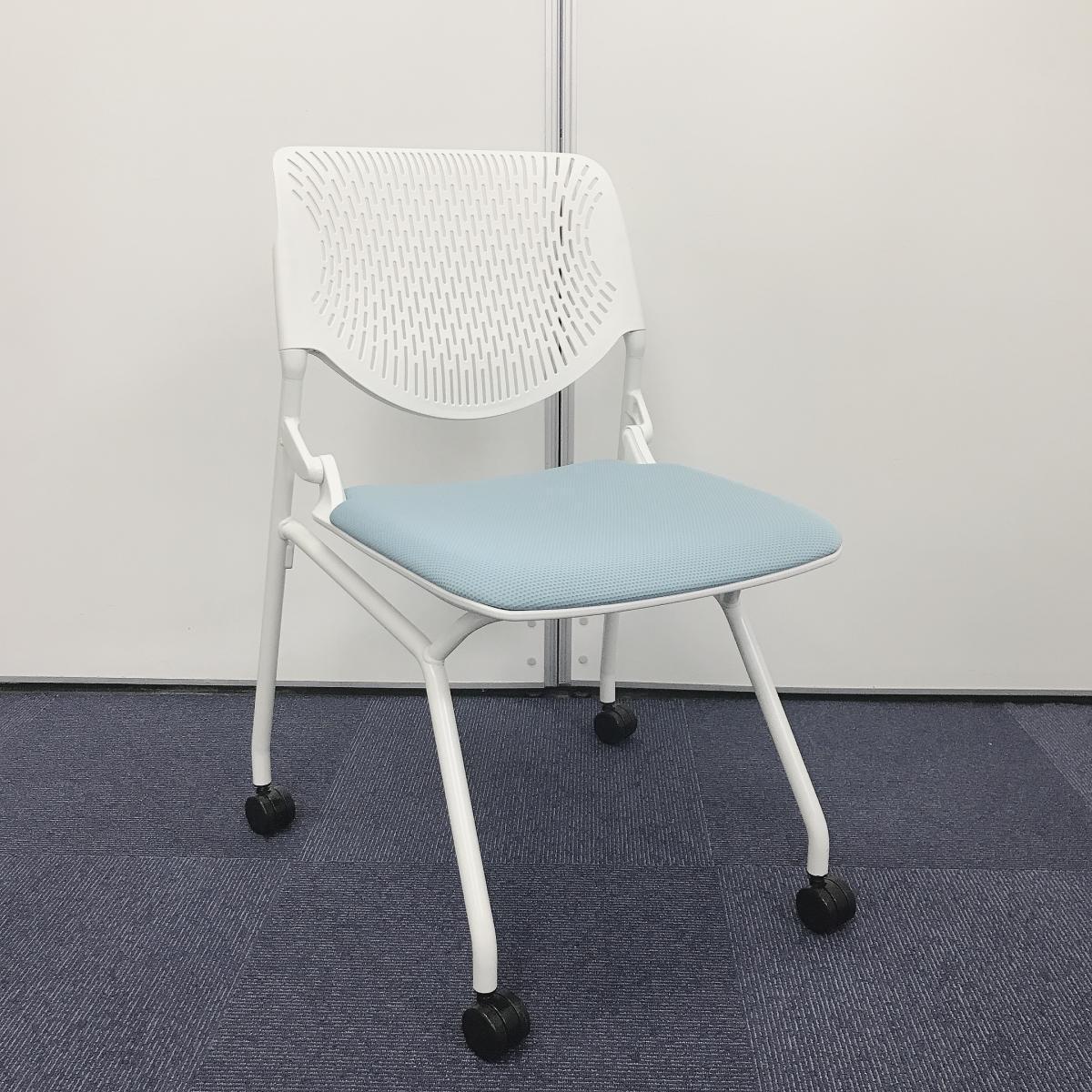 【関東倉庫在庫品】【フレキシブルに使える!使わない時は省スペースで収納可能!】■オカムラ製 ルナ ネスティングチェア ■ライトブルー【弊社使用欄:A01008468】【ECBMC】