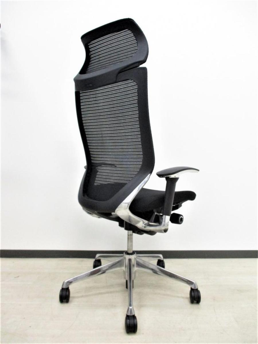 【オフィスの執務室、会議室におすすめ!】■オカムラ(okamura)製 バロン(Baron)チェア 肘付き ハイバック ■背・座面メッシュ ■可動肘 ■ヘッドレスト付き ■ブラック【硬めの座面が大人気!国産メッシュチェアの代表格!】