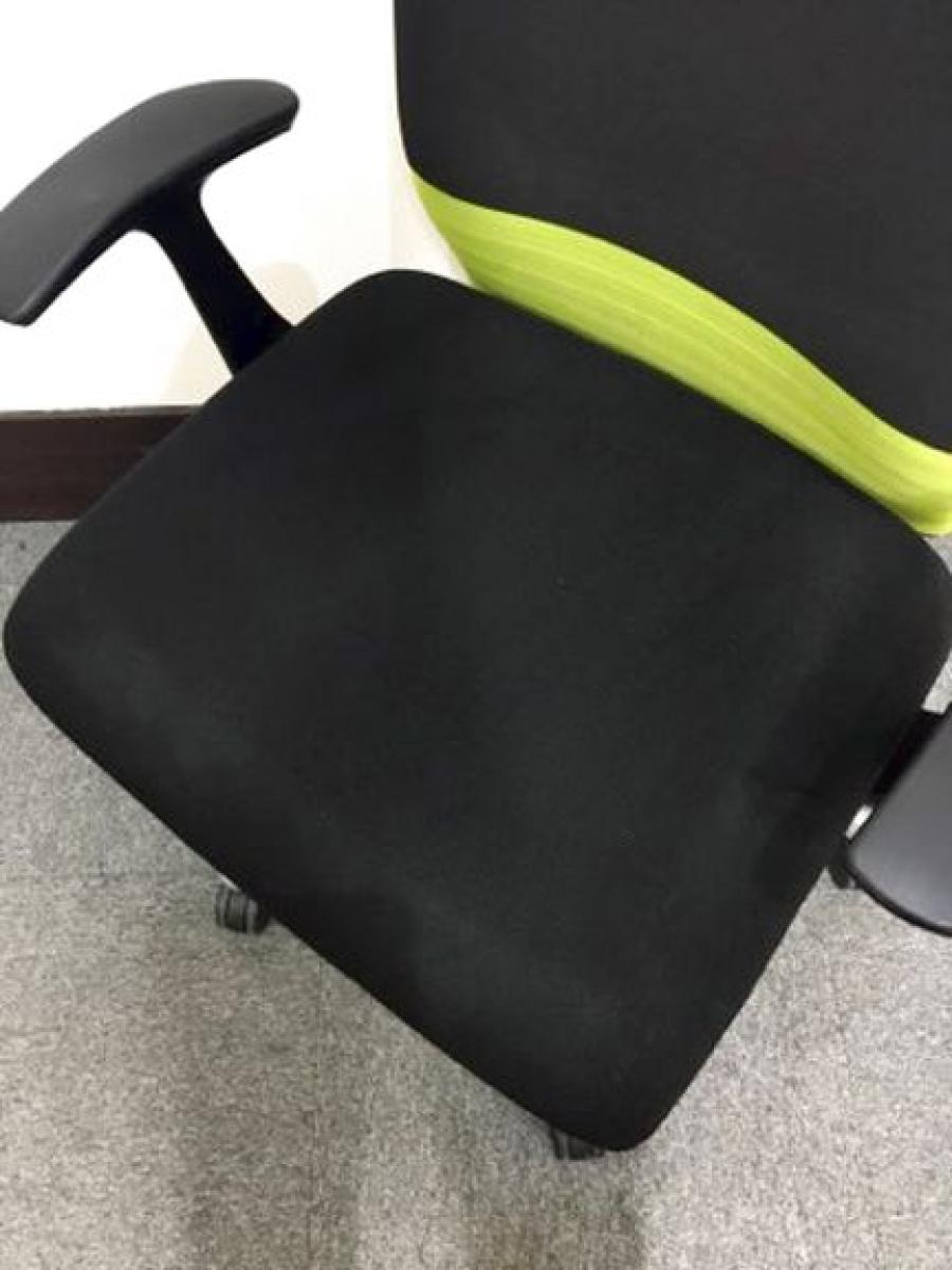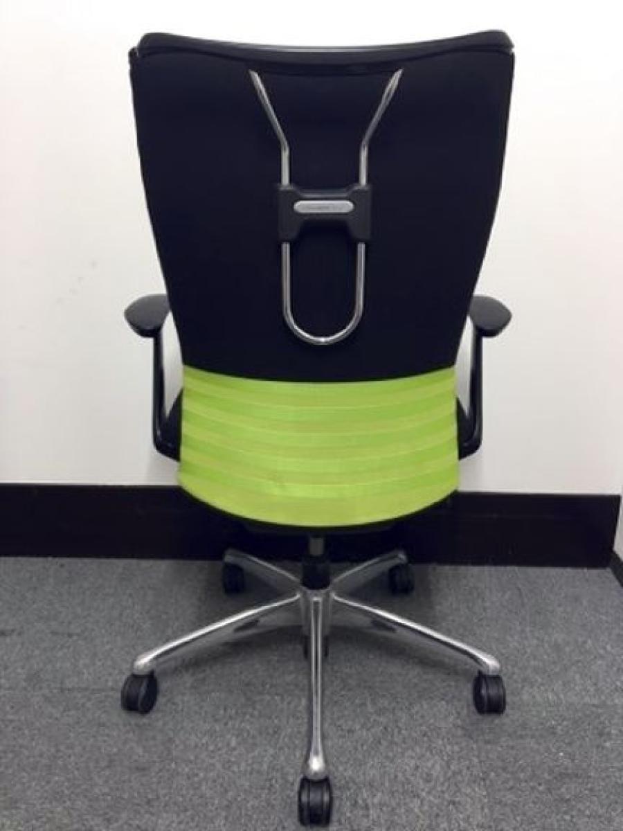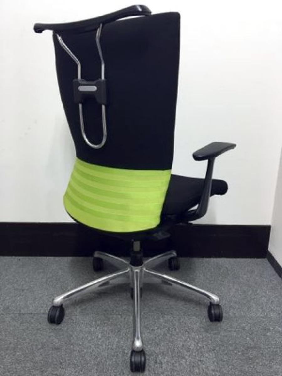 【人間工学に基づいた快適な座り心地! 背あてのしなやかな曲線が背中にフィット!】■オカムラ製 フィーゴチェア (feego) 肘付ハイバック シームレスタイプ ■肘付 ■ブラック×グリーン ■固定肘- つくば店
