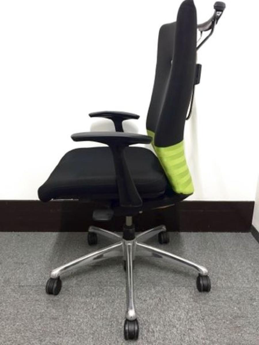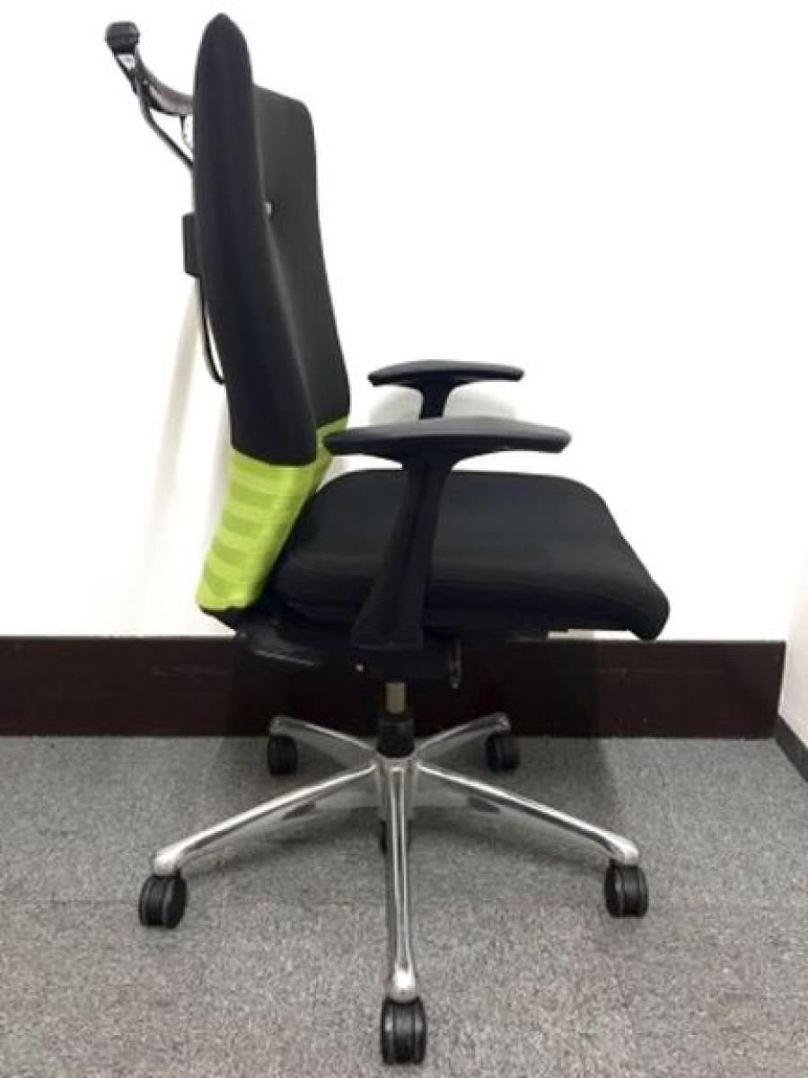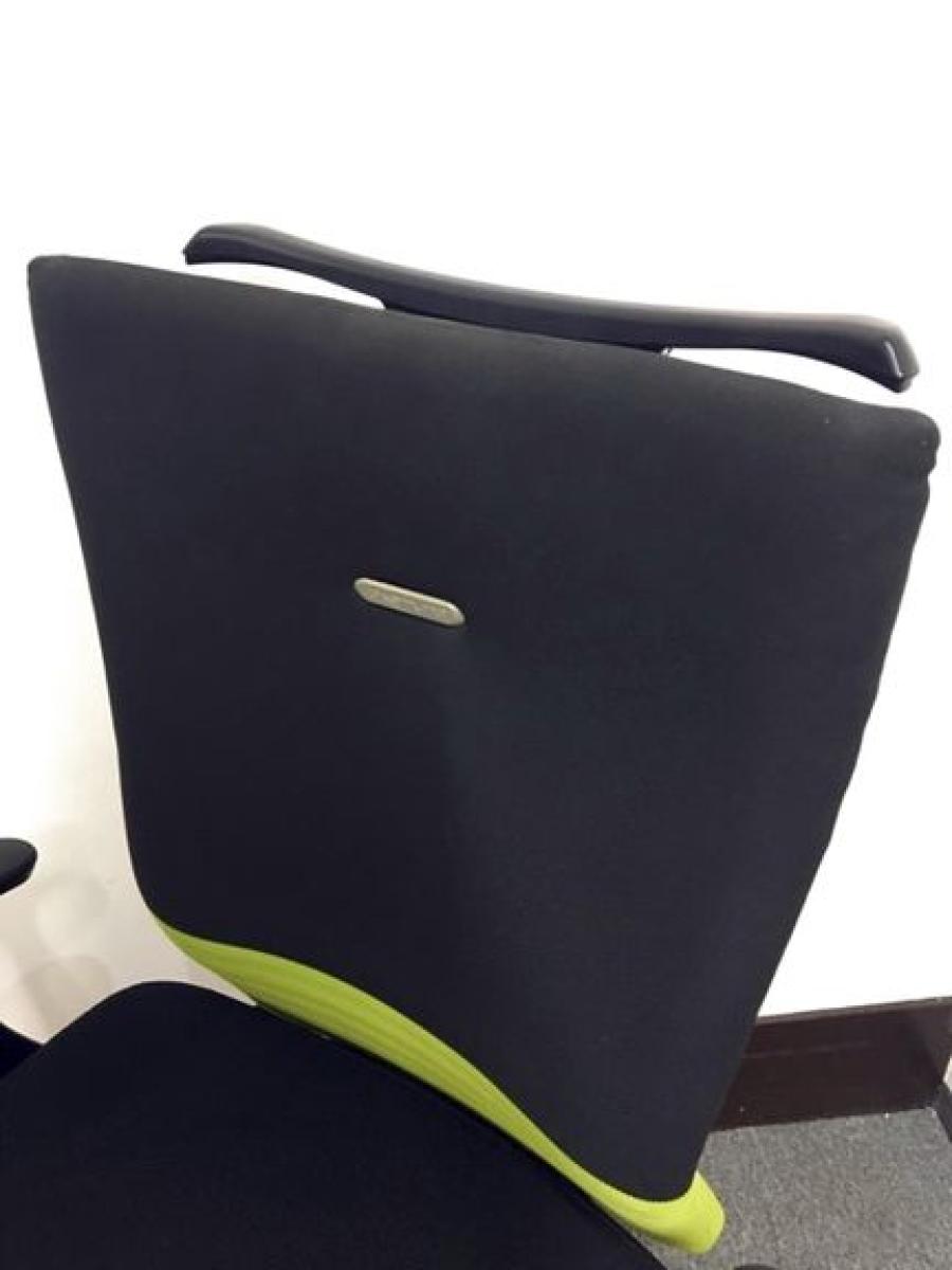 【人間工学に基づいた快適な座り心地! 背あてのしなやかな曲線が背中にフィット!】■オカムラ製 フィーゴチェア (feego) 肘付ハイバック シームレスタイプ ■肘付 ■ブラック×グリーン ■固定肘- つくば店