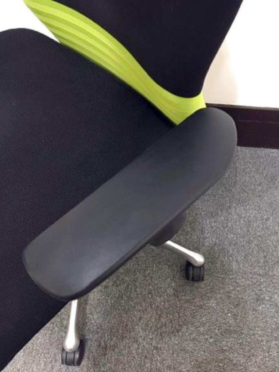 【快適な座り心地で作業効率アップ!】■オカムラ フィーゴチェア 可動肘付 シームレスタイプ ライムグリーン ハンガー付 ※肘に擦れ・削れ・欠けありのためお安く!
