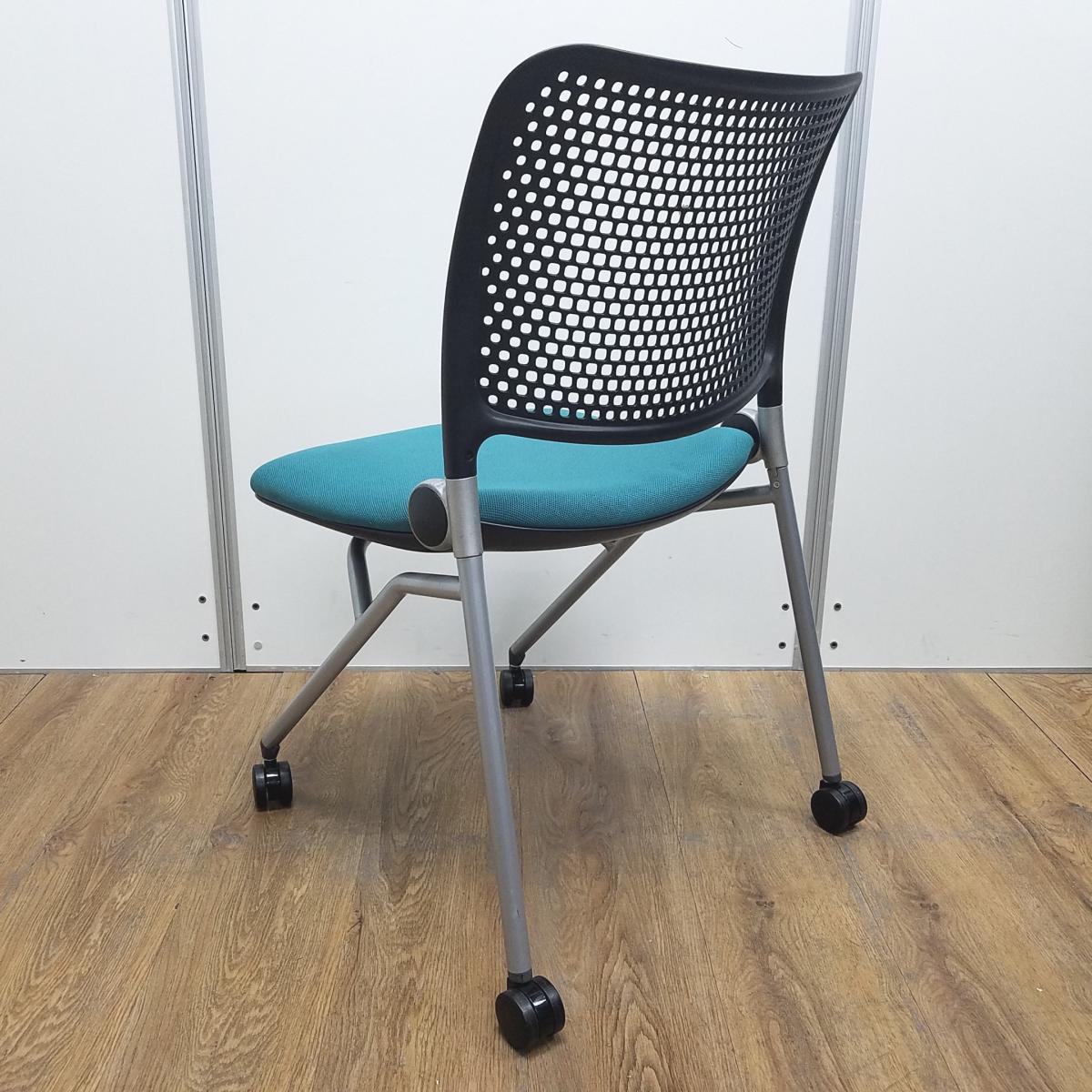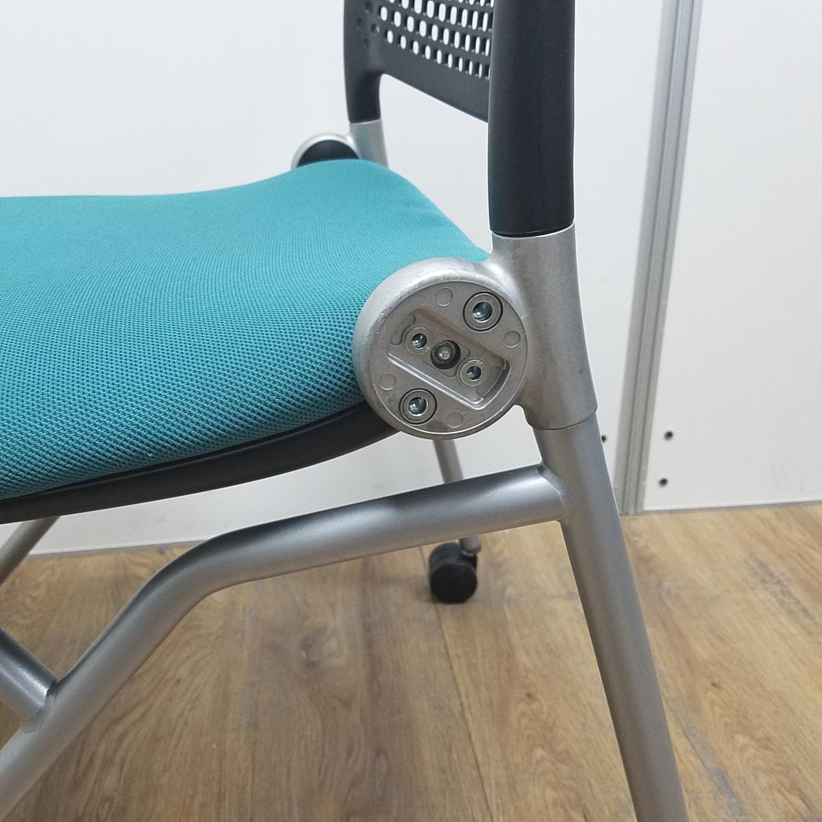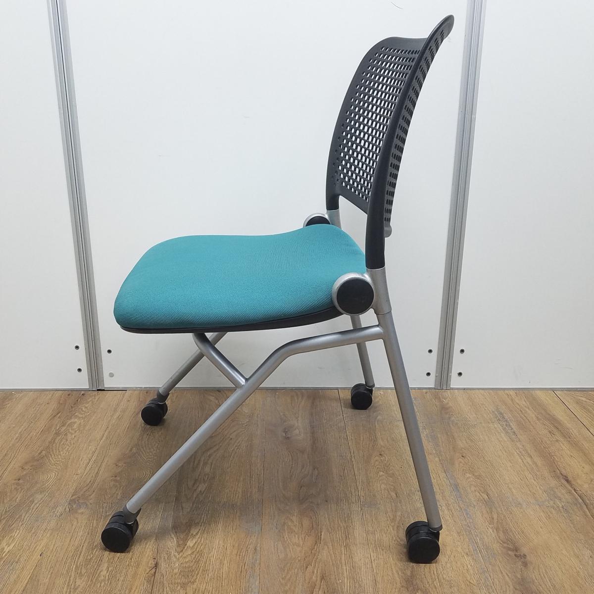 【4脚セット!!】ウチダ製 ブルーメ ティールグリーン キャスター付 平衡に収納 ネスティングチェア!!