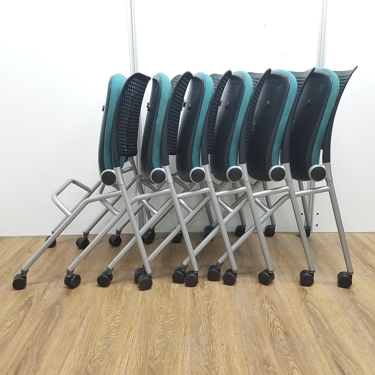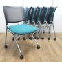 【6脚セット!!】ウチダ製 ブルーメ ティールグリーン キャスター付 平衡に収納 ネスティングチェア!!- 京都東寺店