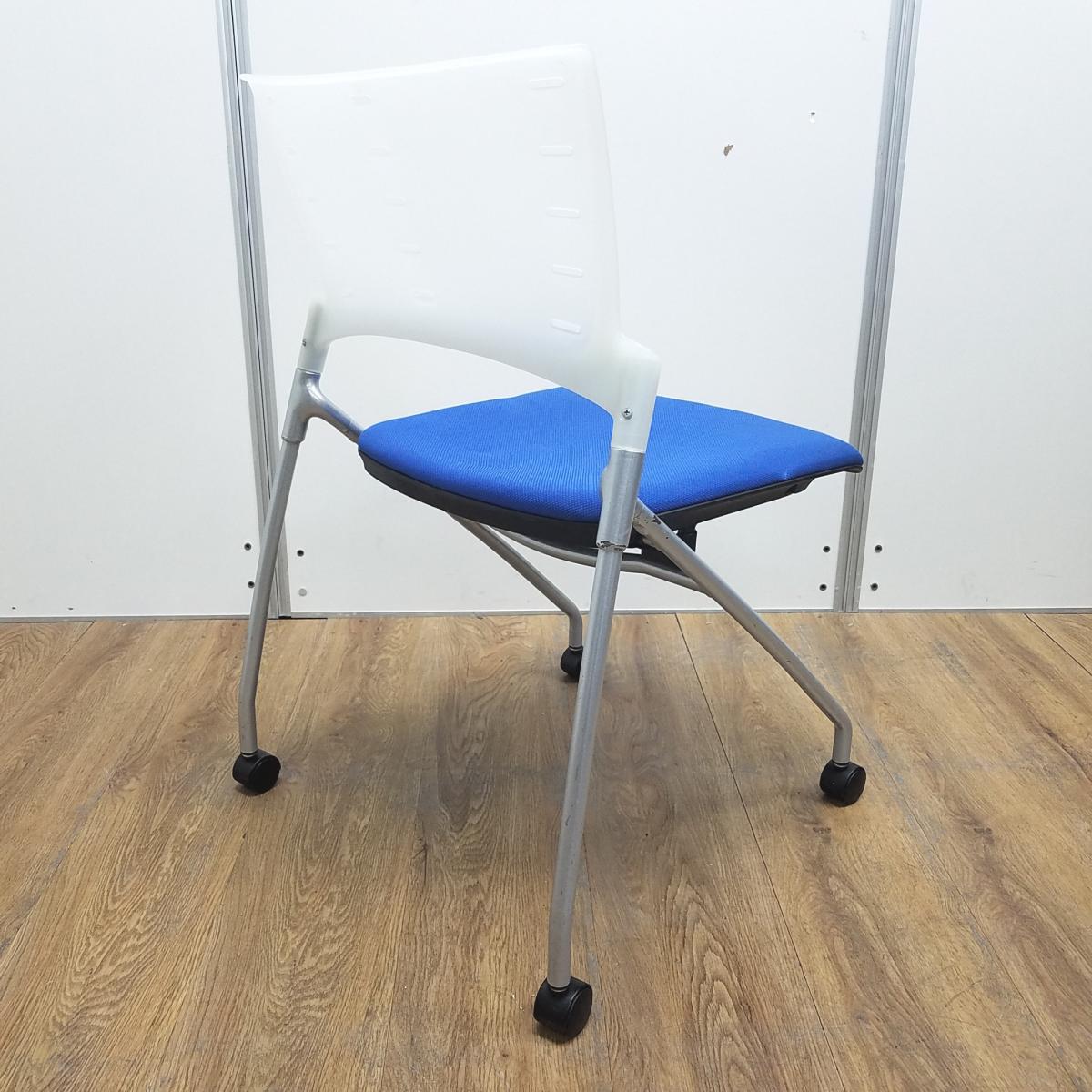 【関東倉庫在庫品】【フレキシブルに使える!平行ネスティングで省スペース化!】■イトーキ(ITOKI)製 マノス(MANOSS) ネスティングチェア ミーティングチェア ■背パッド付 ■キャスター付 ■ブルー【弊社使用欄:A01014525】【ECBMC】
