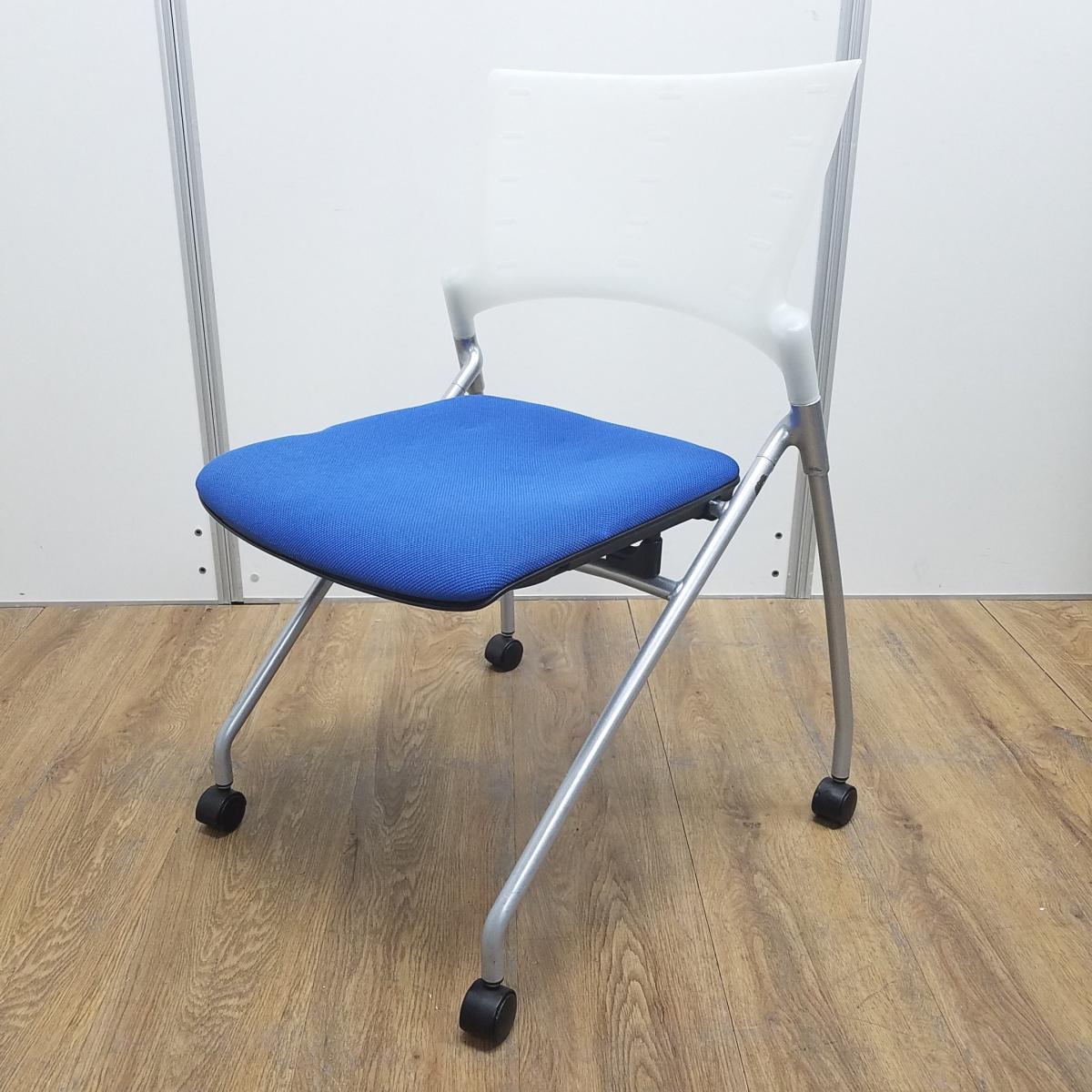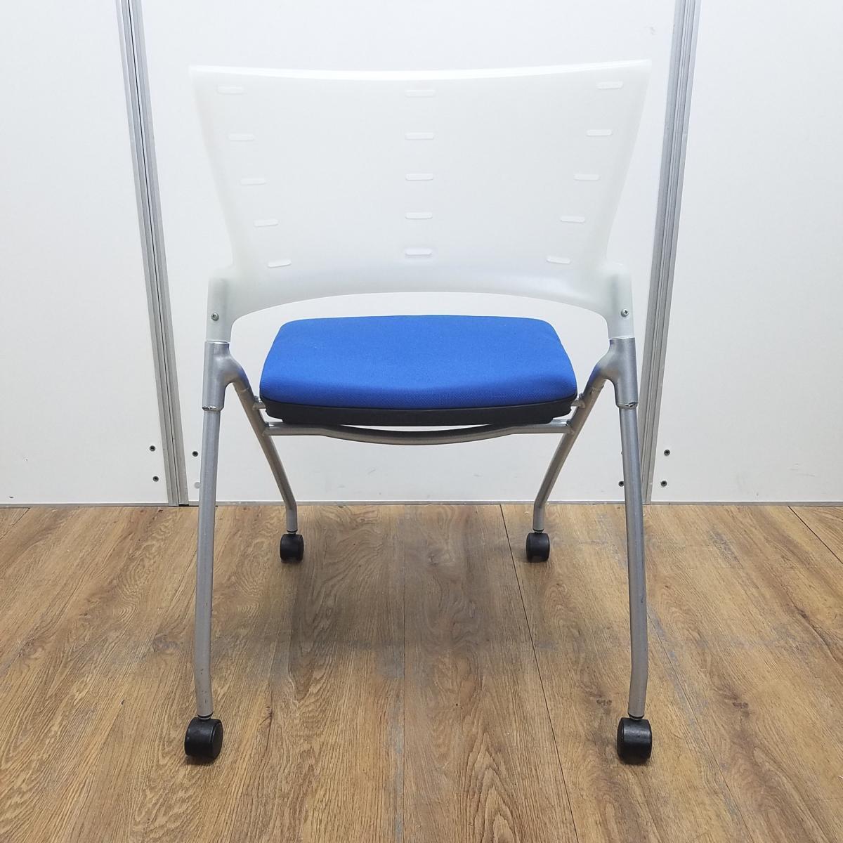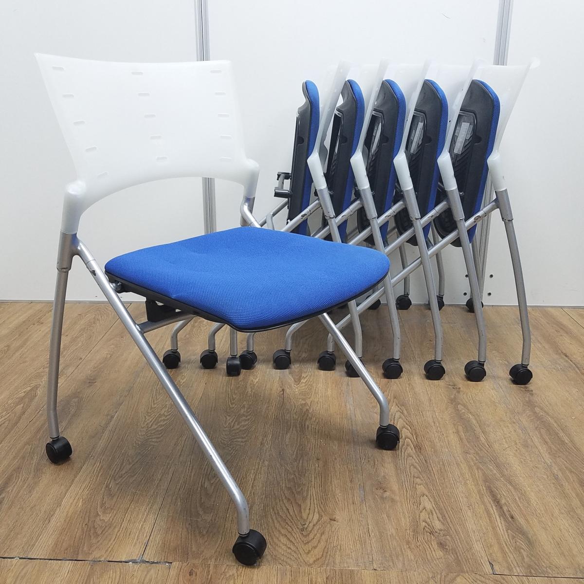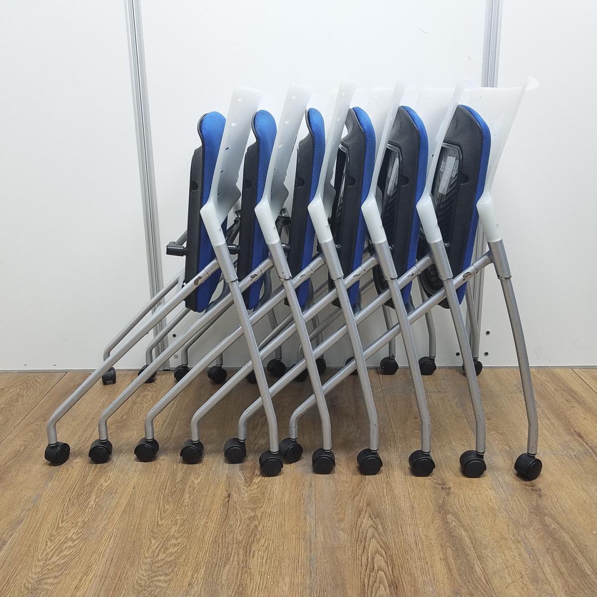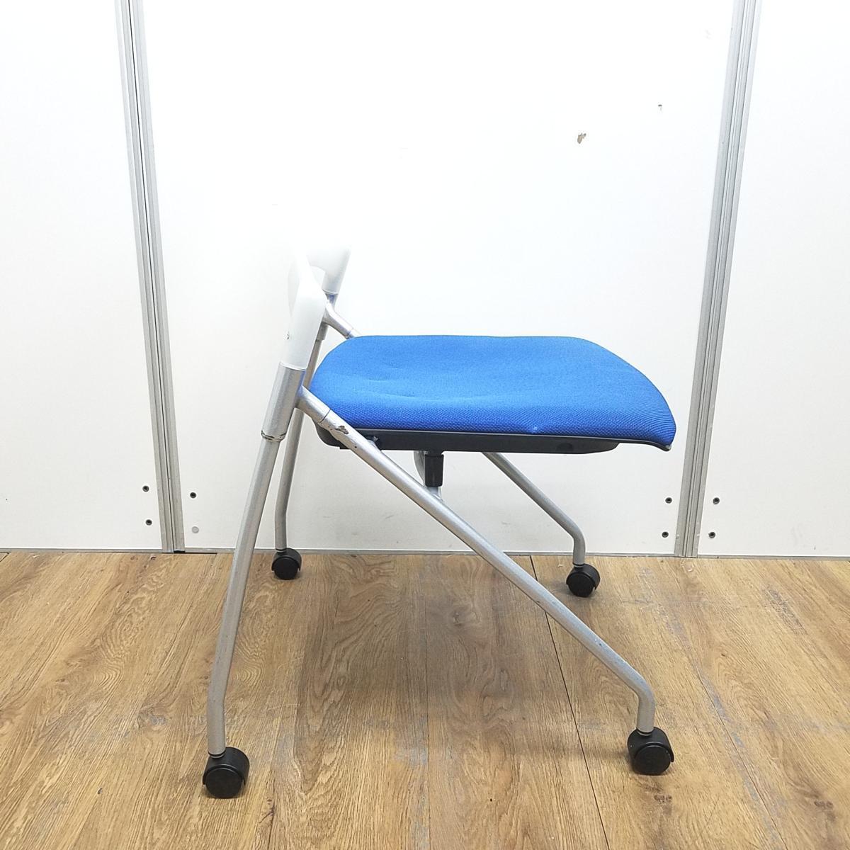 【6脚セット!!】イトーキ製 マノスシリーズ ブルー 背パッドなし キャスター付 セミナーや会議用にオススメチェア 平行ネスティングで省スペース化! ネスティングチェア!!- 京都東寺店