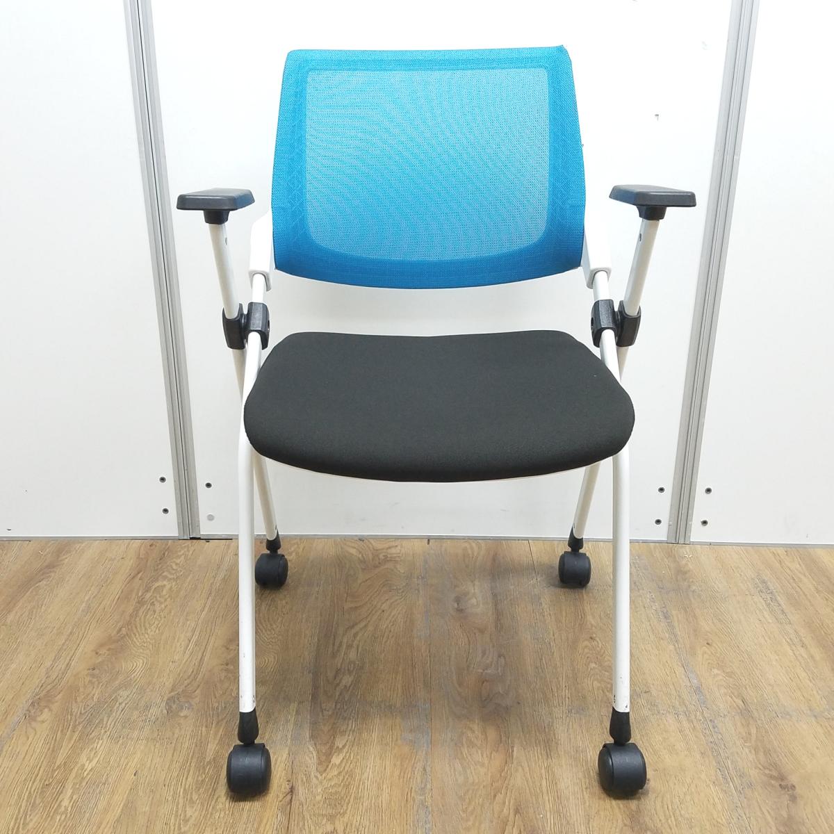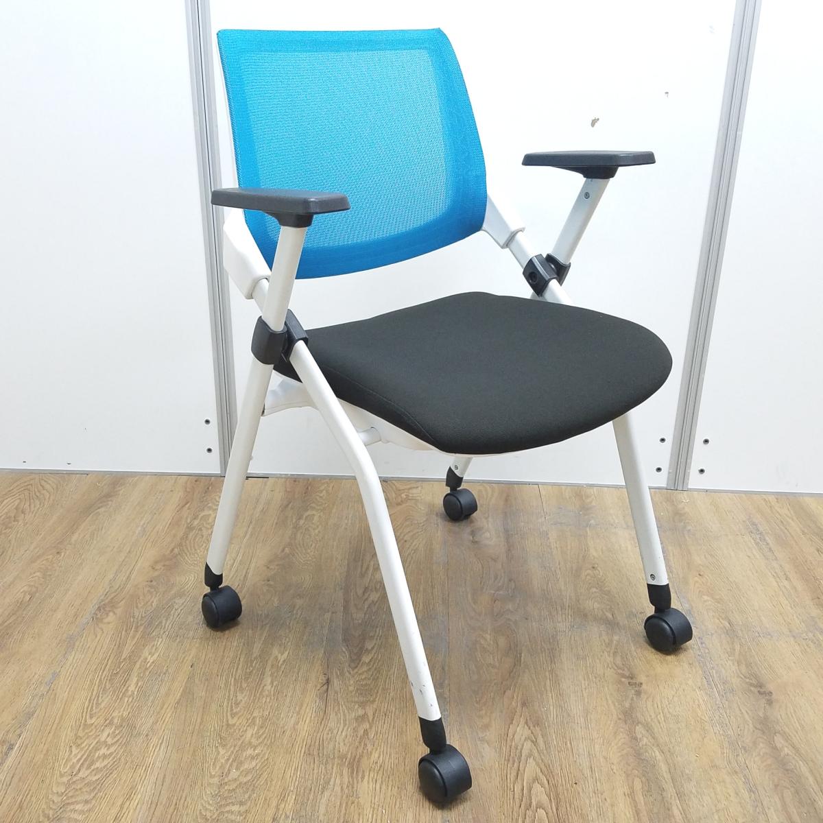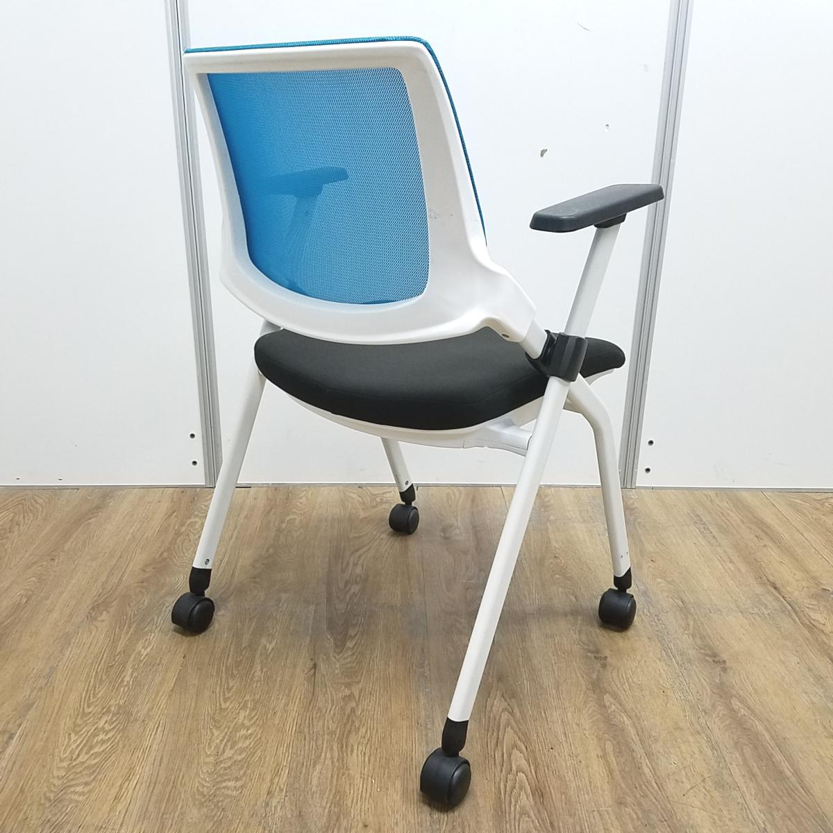 【訳あり品:背もたれホツレあり】ニトリ ブルー コスパ 背もたれメッシュ キャスター付 セミナーや会議用にオススメチェア 平行ネスティングで省スペース化! ネスティングチェア!!※保障対象外品になります。- 京都東寺店