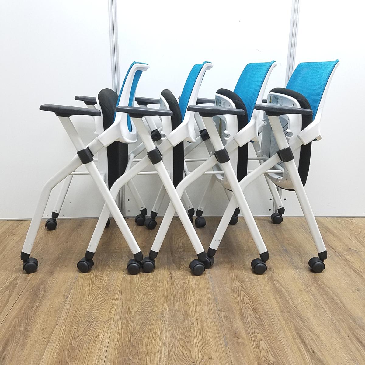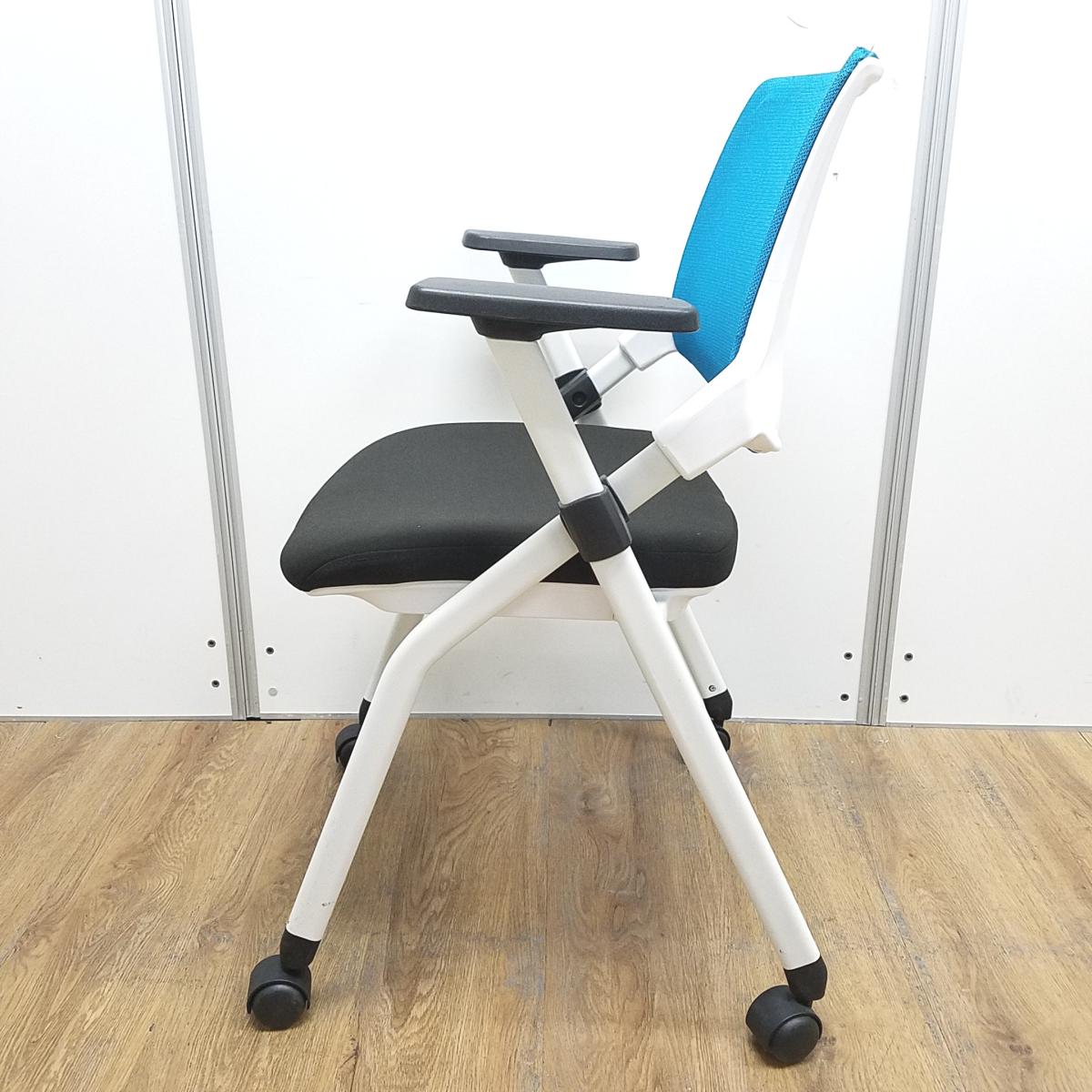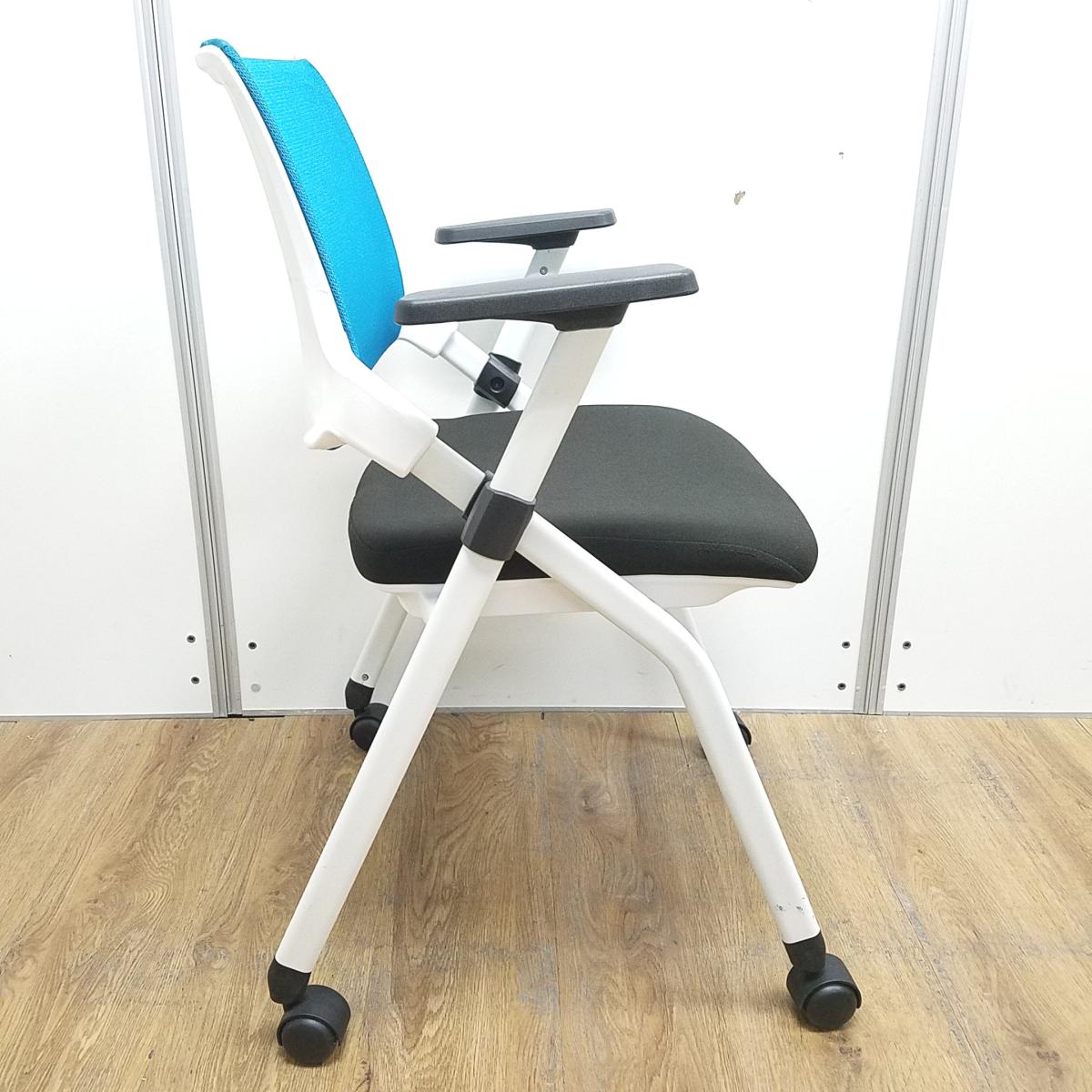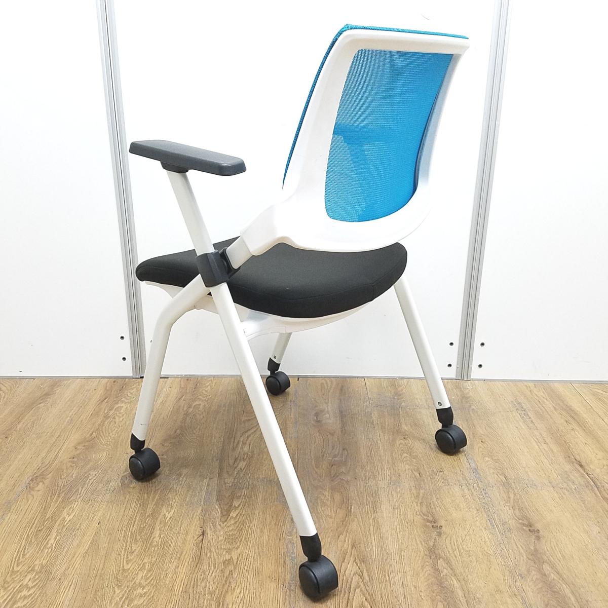 【訳あり品:背もたれホツレあり】ニトリ ブルー コスパ 背もたれメッシュ キャスター付 セミナーや会議用にオススメチェア 平行ネスティングで省スペース化! ネスティングチェア!!※保障対象外品になります。- 京都東寺店